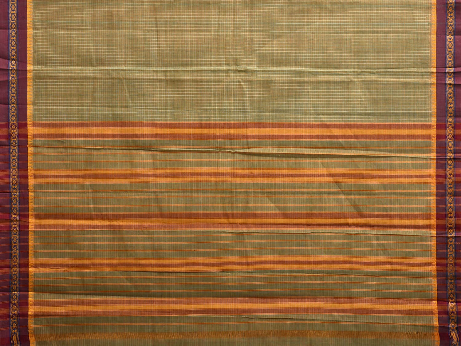 Light Olive and Purple Narayanpet Cotton Handloom Saree with Checks Design No Blouse.