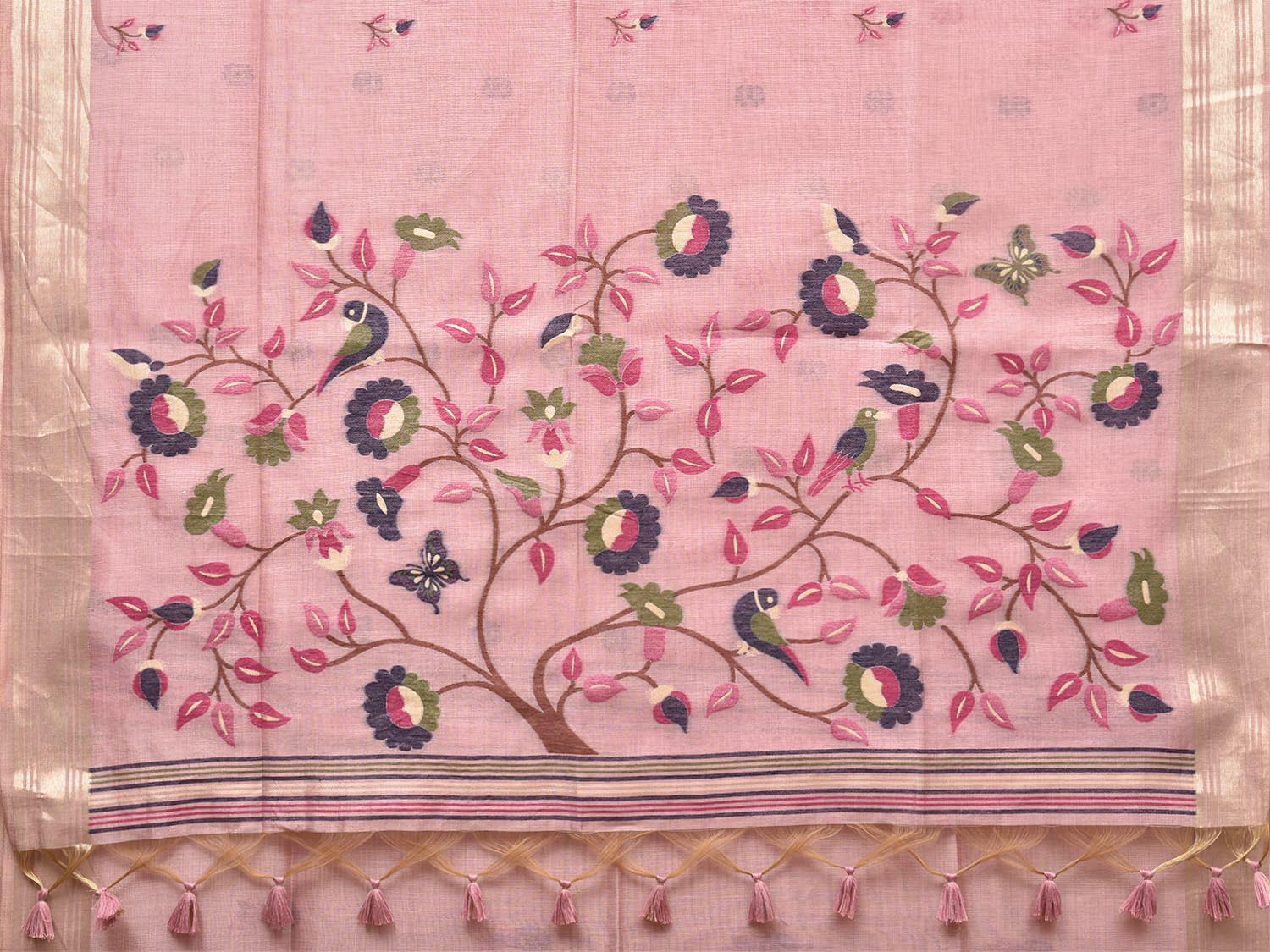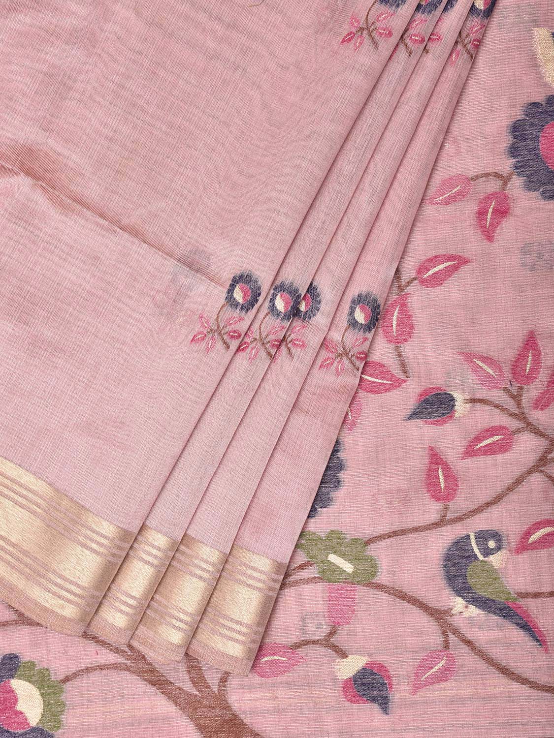 Light Pink Dhakai Jamdani Cotton Viscose Saree with Birds and Floral Pallu Design dj0429