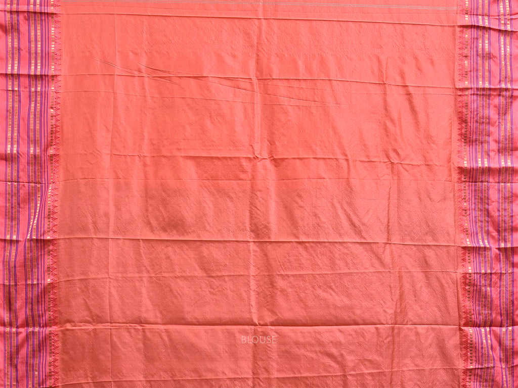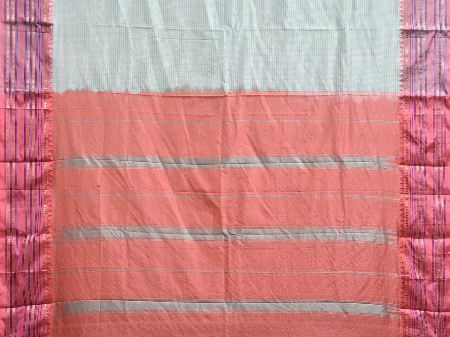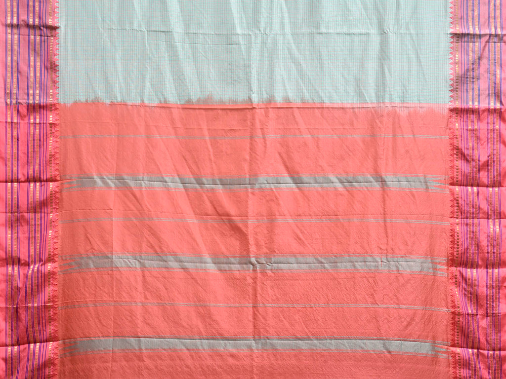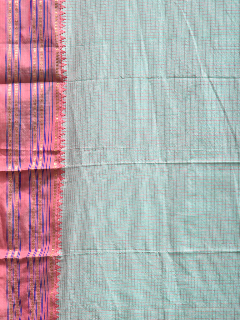 Light Turquoise and Peach Narayanpet Silk Saree with Checks and Contrast Pallu Design