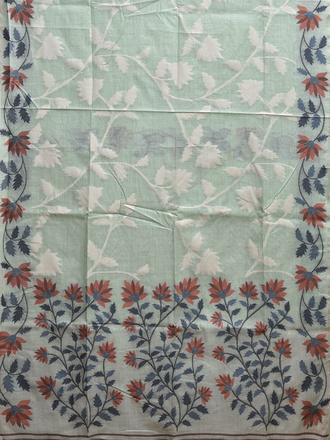 Light Turquoise Dhakai Jamdani Cotton Viscose Saree with Border and Pallu Floral Design. These are some of the traditional Dhakai Jamdani designs, these sarees have geometric designs and sometimes floral or combination of both. We advice gentle handwash separately for fabric care.