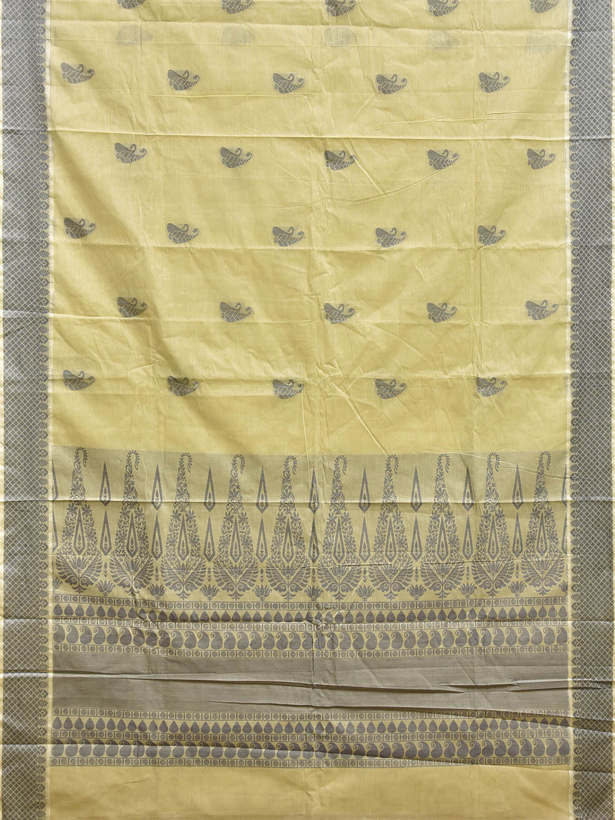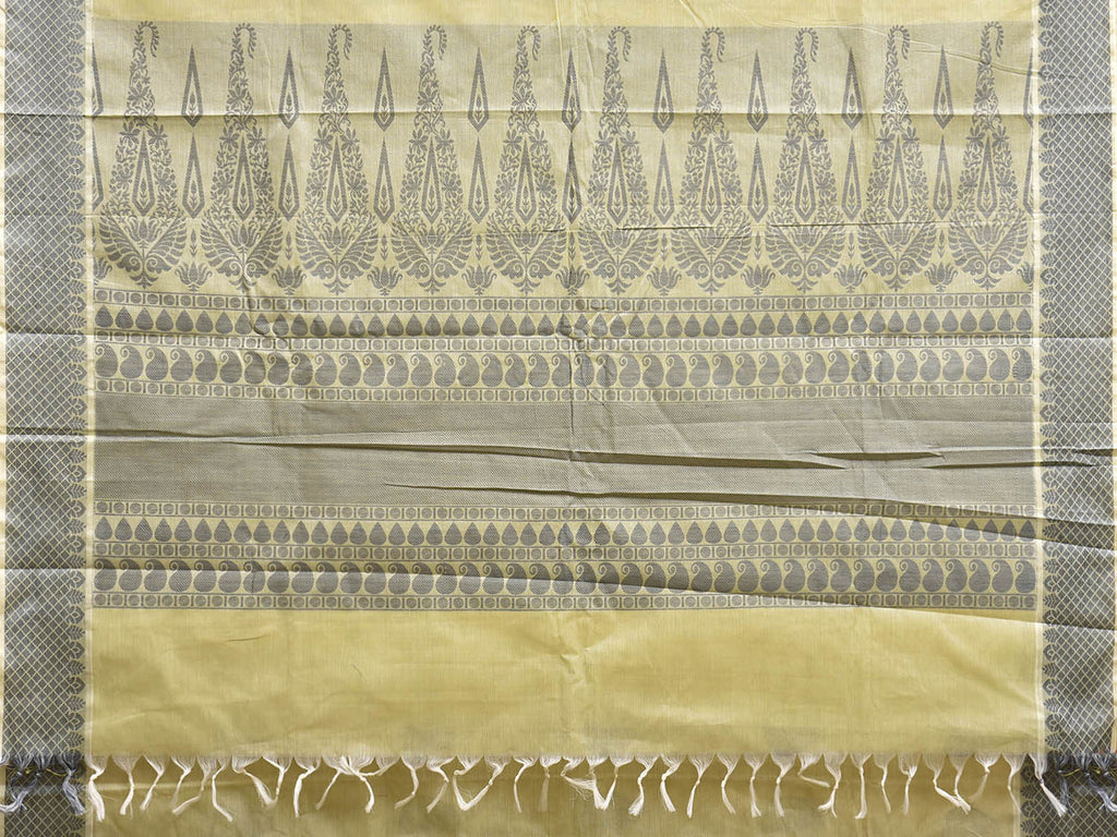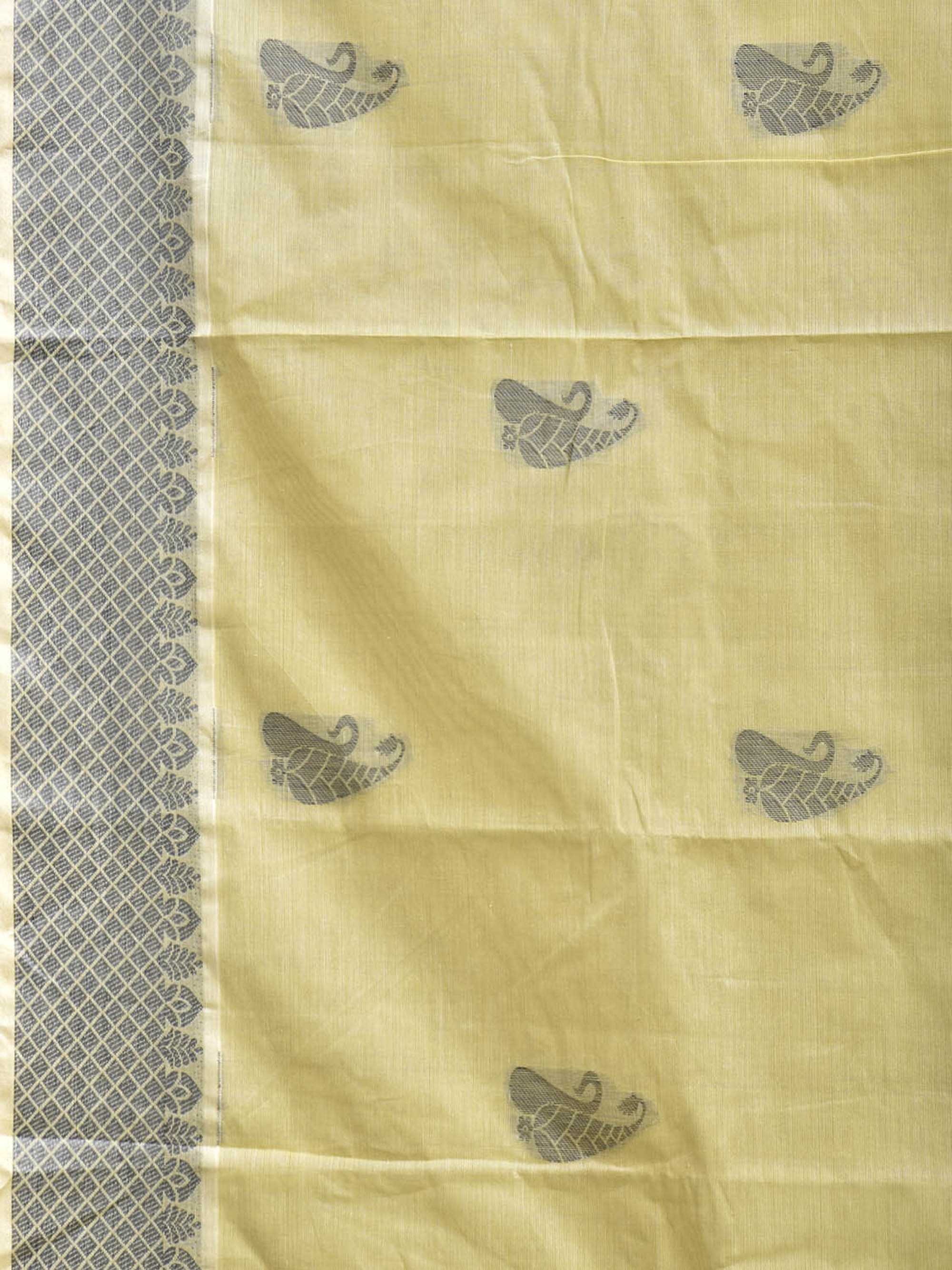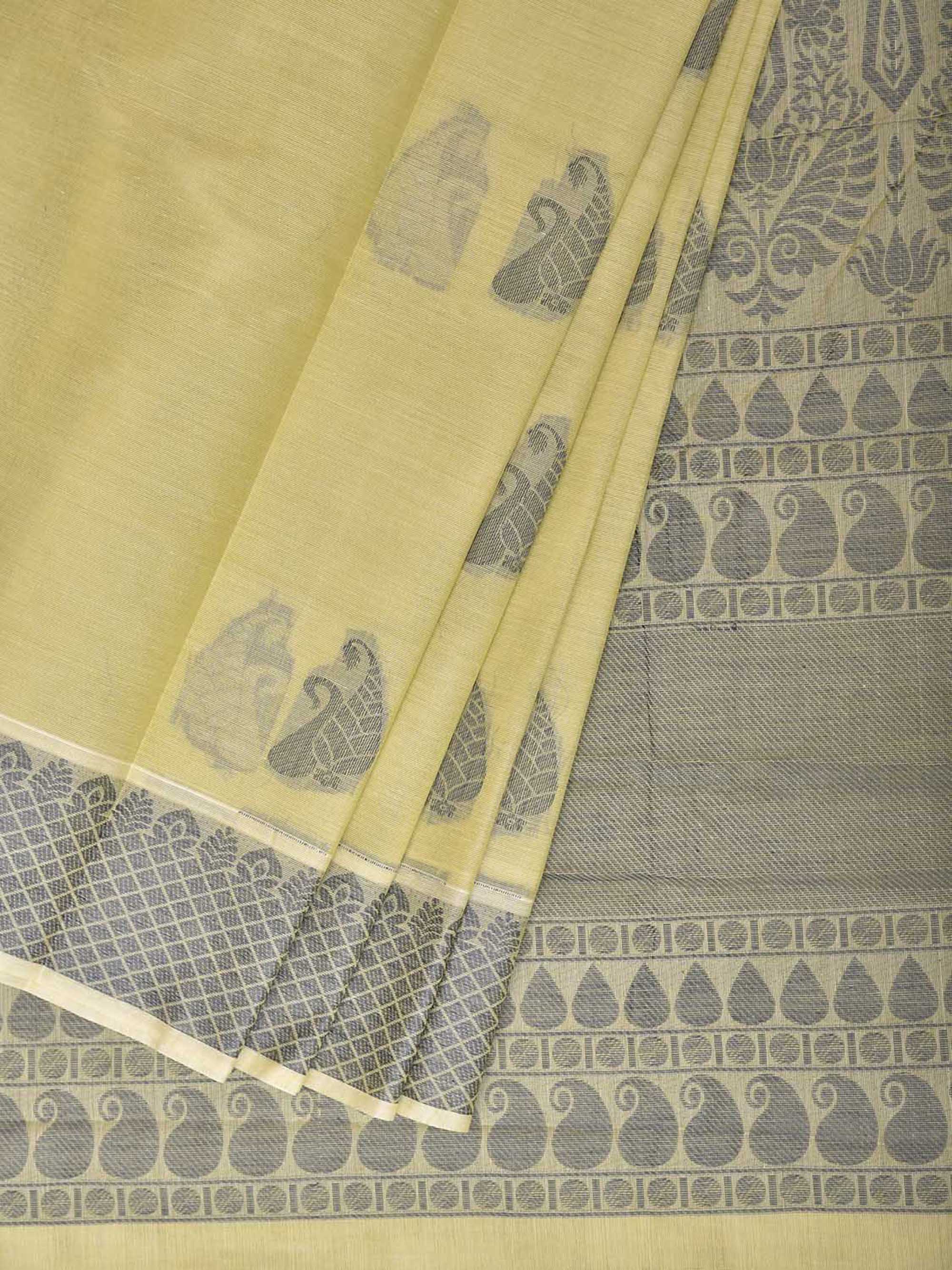 Light Yellow and Grey Venkatagiri Cotton Saree with Buta and Pallu Design. Venkatagiri sarees are known for very fine cotton hand woven cotton saree. They are light weight and are traditional saree made in Andhra Pradesh. For fabric care we advice gentle handwash separately.