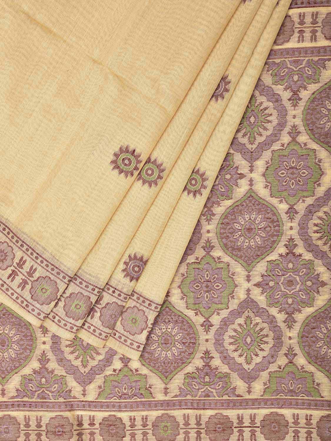 Light Yellow Dhakai Jamdani Cotton Viscose Saree with Pallu and Border Design. These are some of the traditional Dhakai Jamdani designs, these sarees have geometric designs and sometimes floral or combination of both. We advice gentle handwash separately for fabric care.