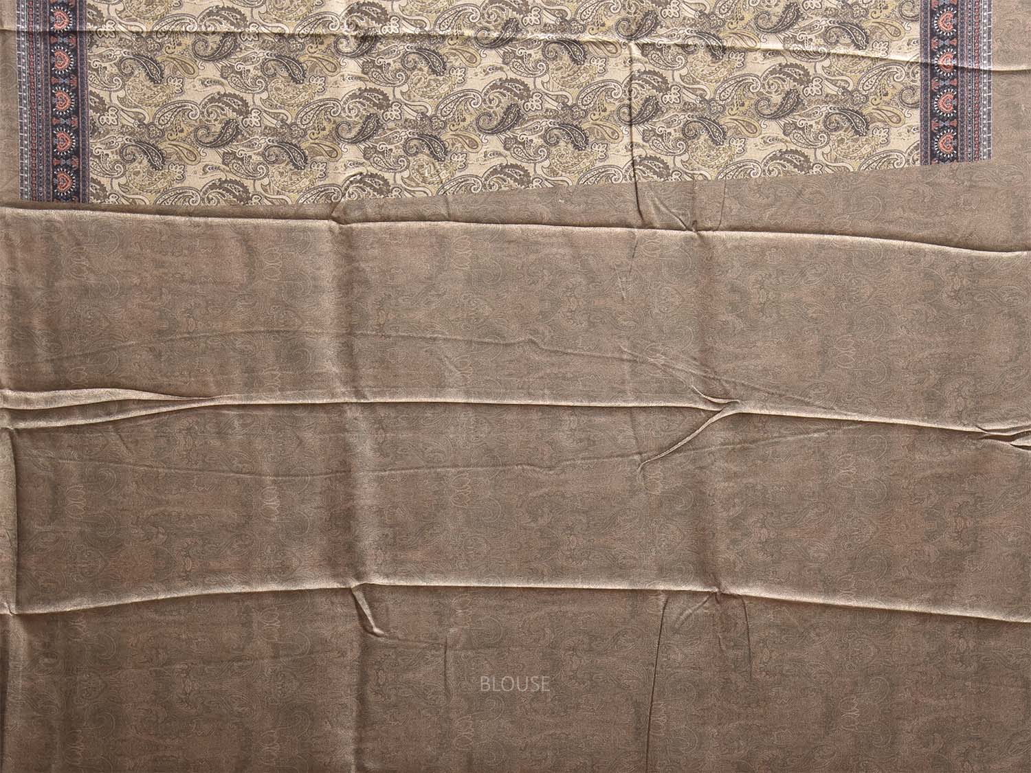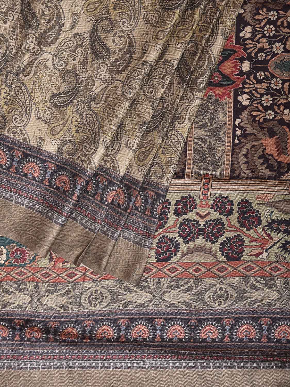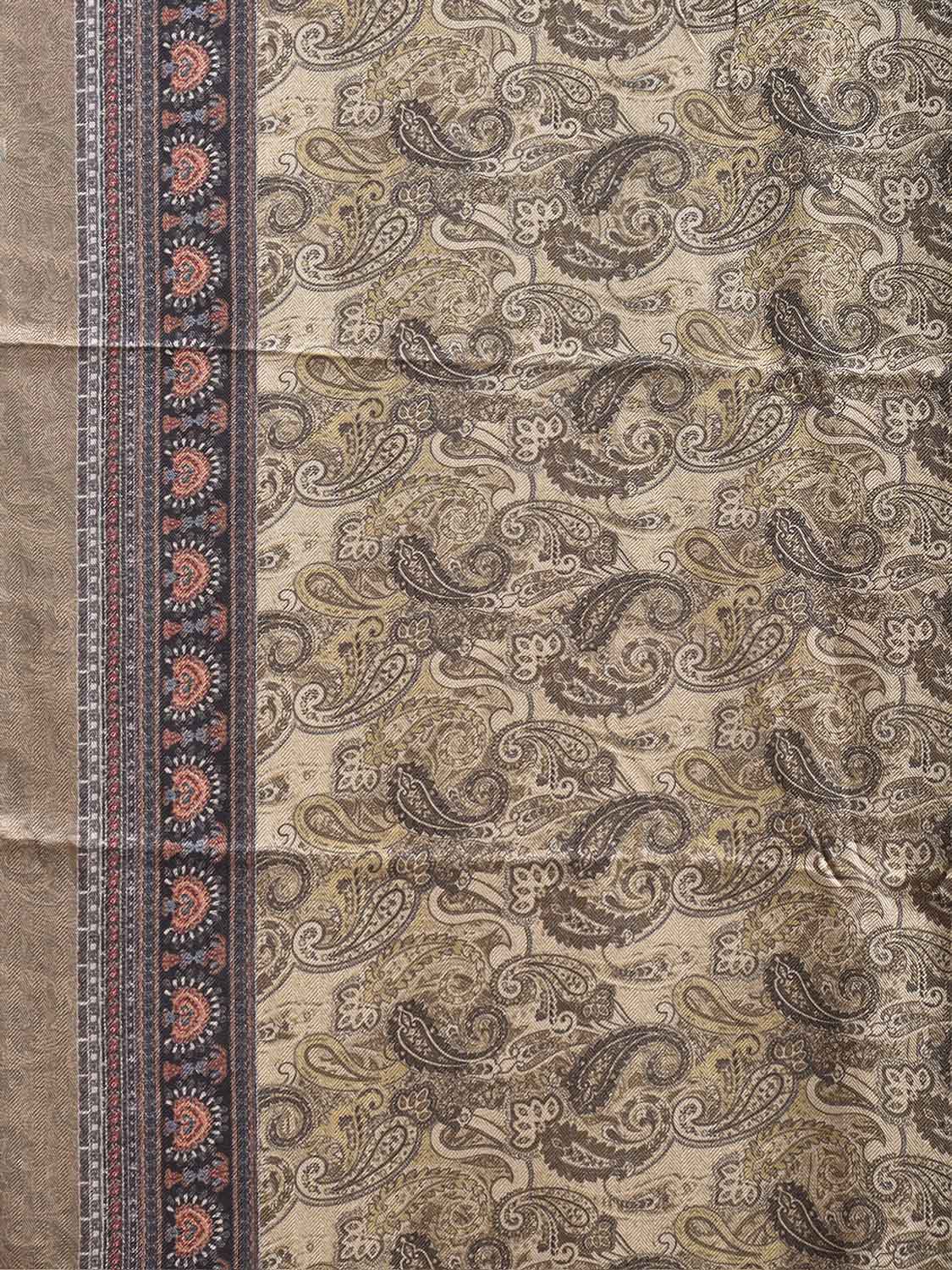 Light Yellow Pashmina Print Viscose Saree with All Over Pasley Body and Pallu Design o0751