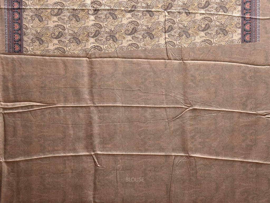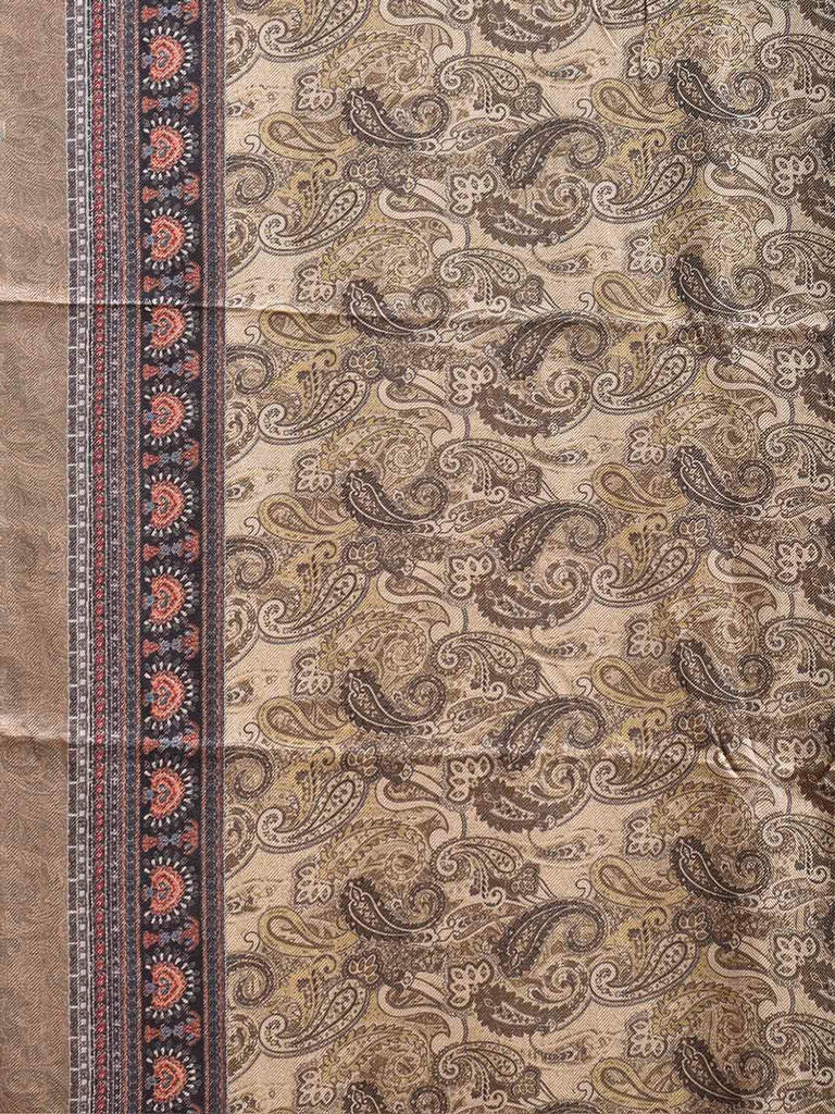 Light Yellow Pashmina Print Viscose Saree with All Over Pasley Body and Pallu Design. For fabric care we advise gentle handwash separately.