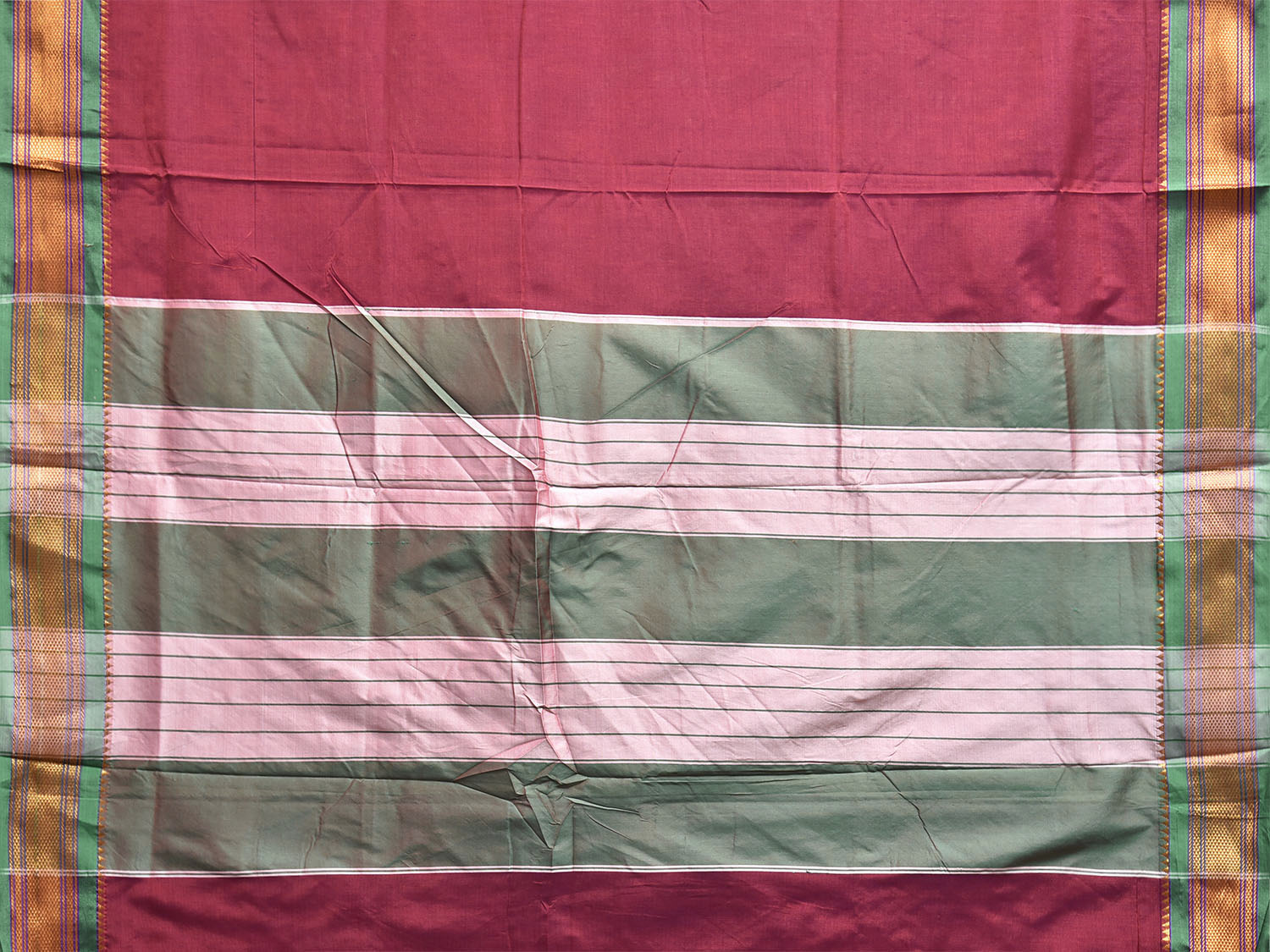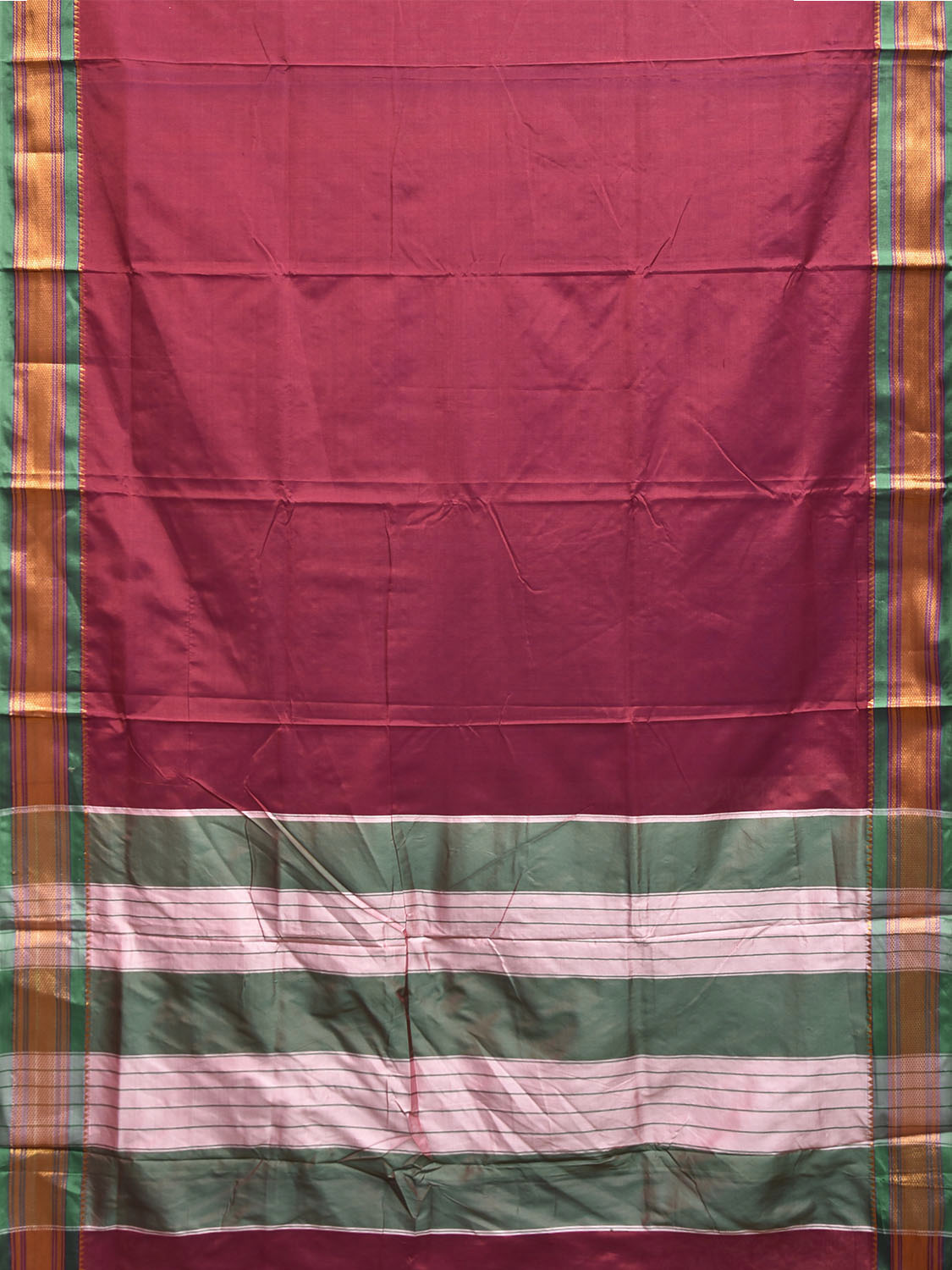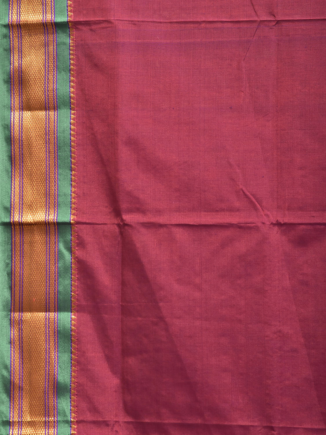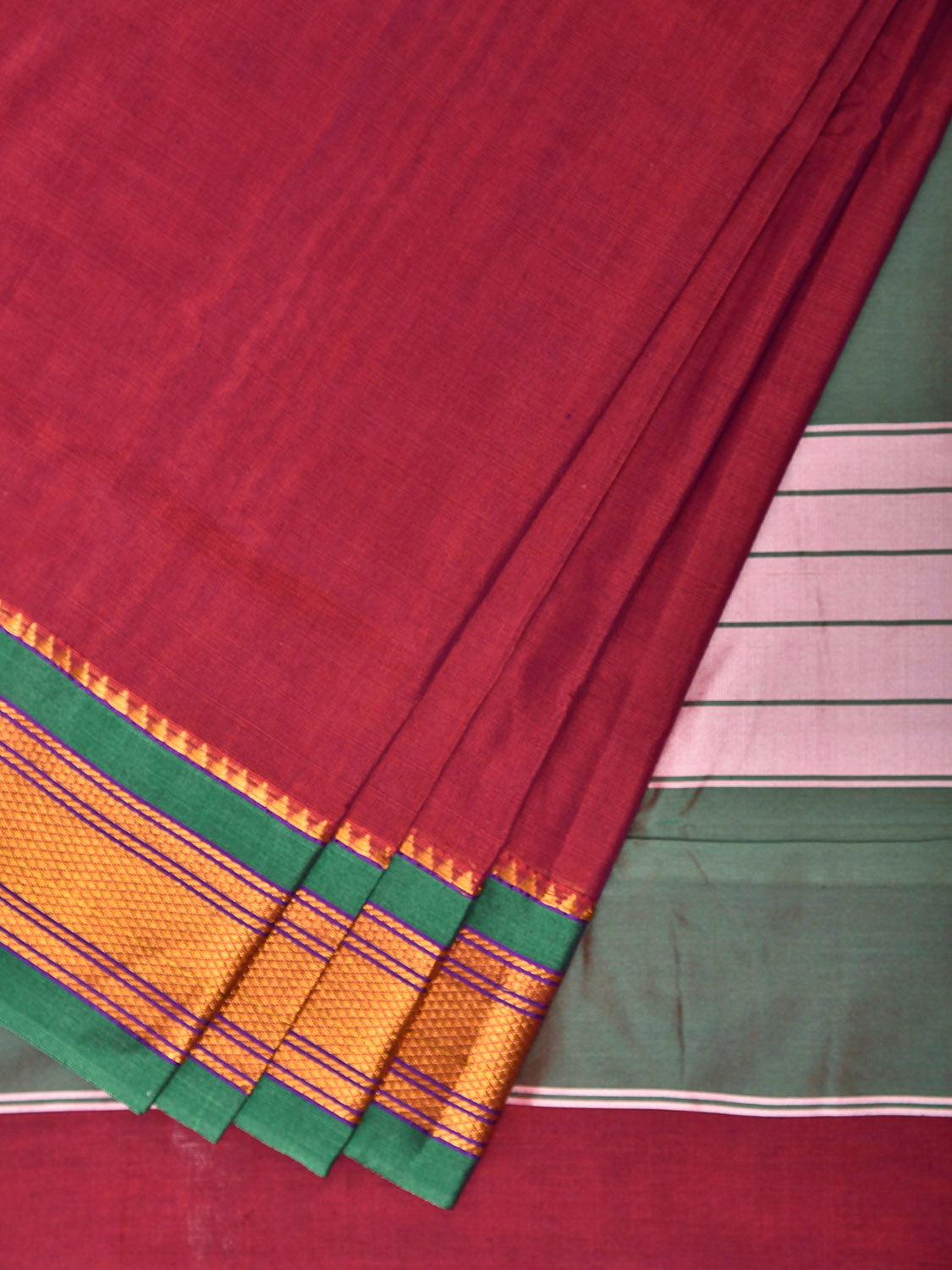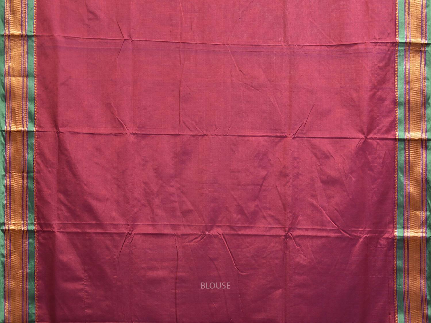 Magenta and Green ilkal Cotton Viscose Plain Saree with Contrast Pallu Design. For fabric care we advise gentle handwash separately.