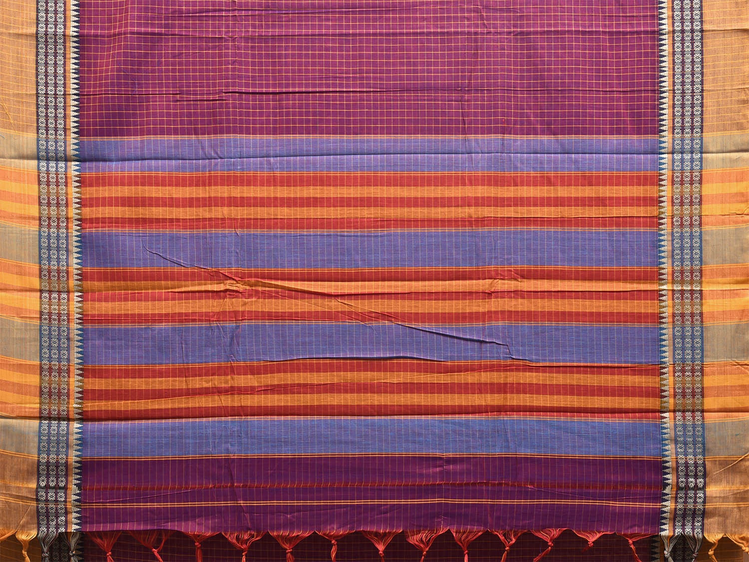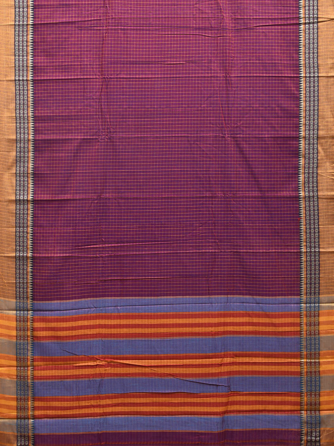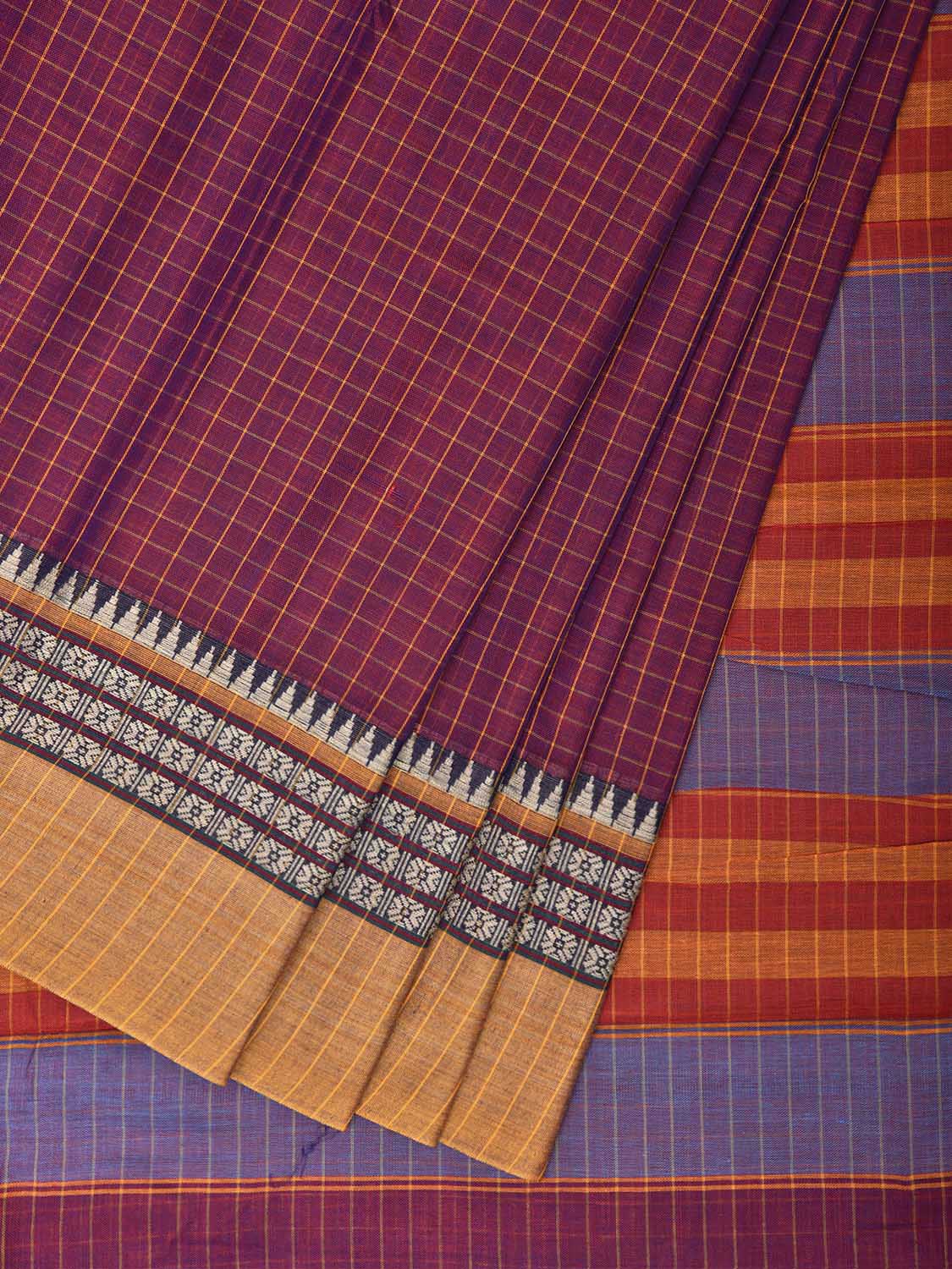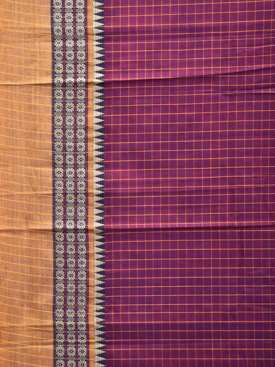 Magenta and Mustard Narayanpet Cotton Saree with Checks Design No Blouse. This saree has no blouse.