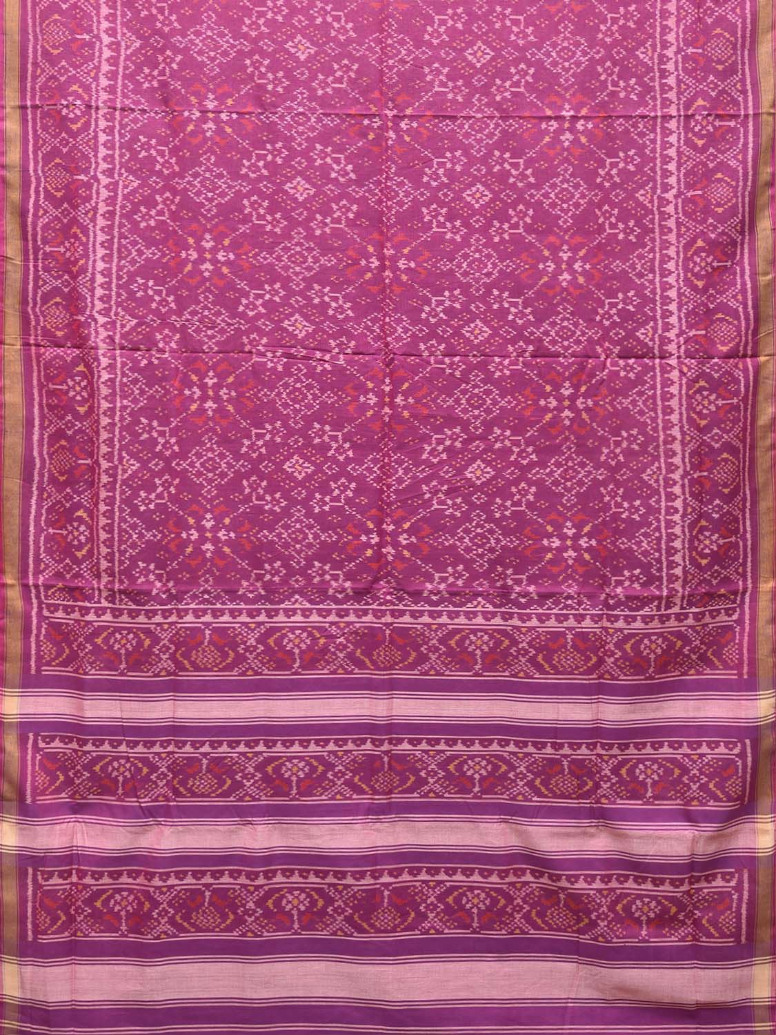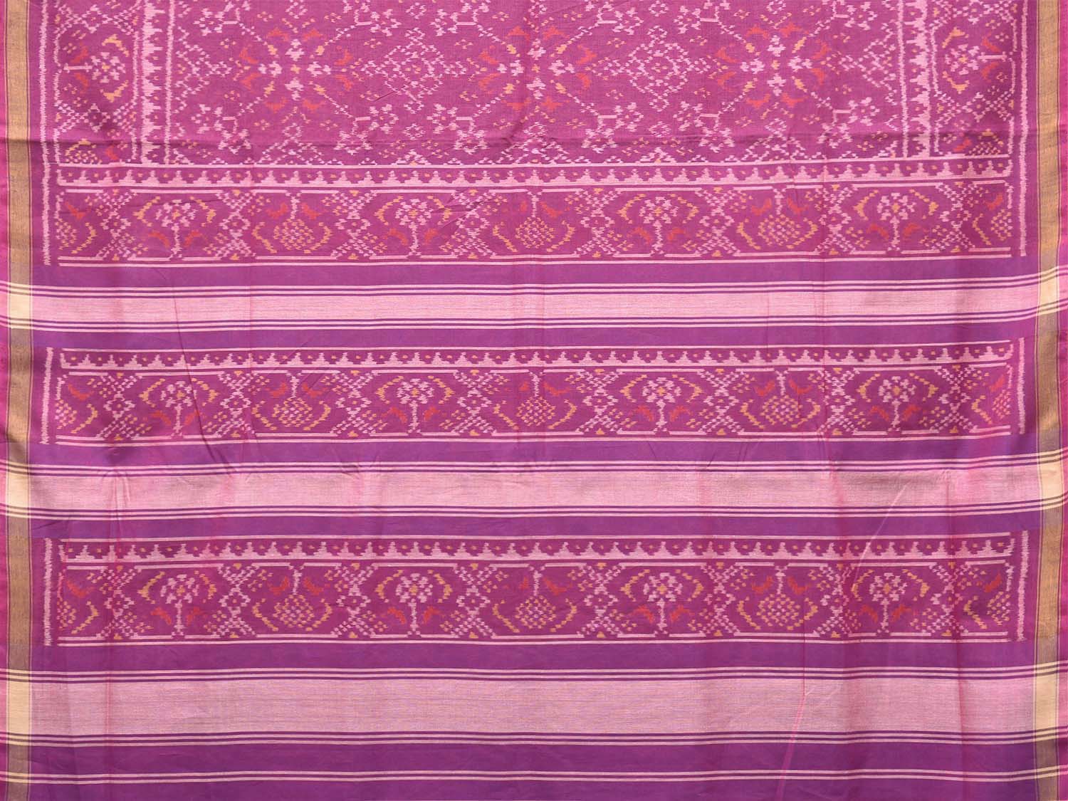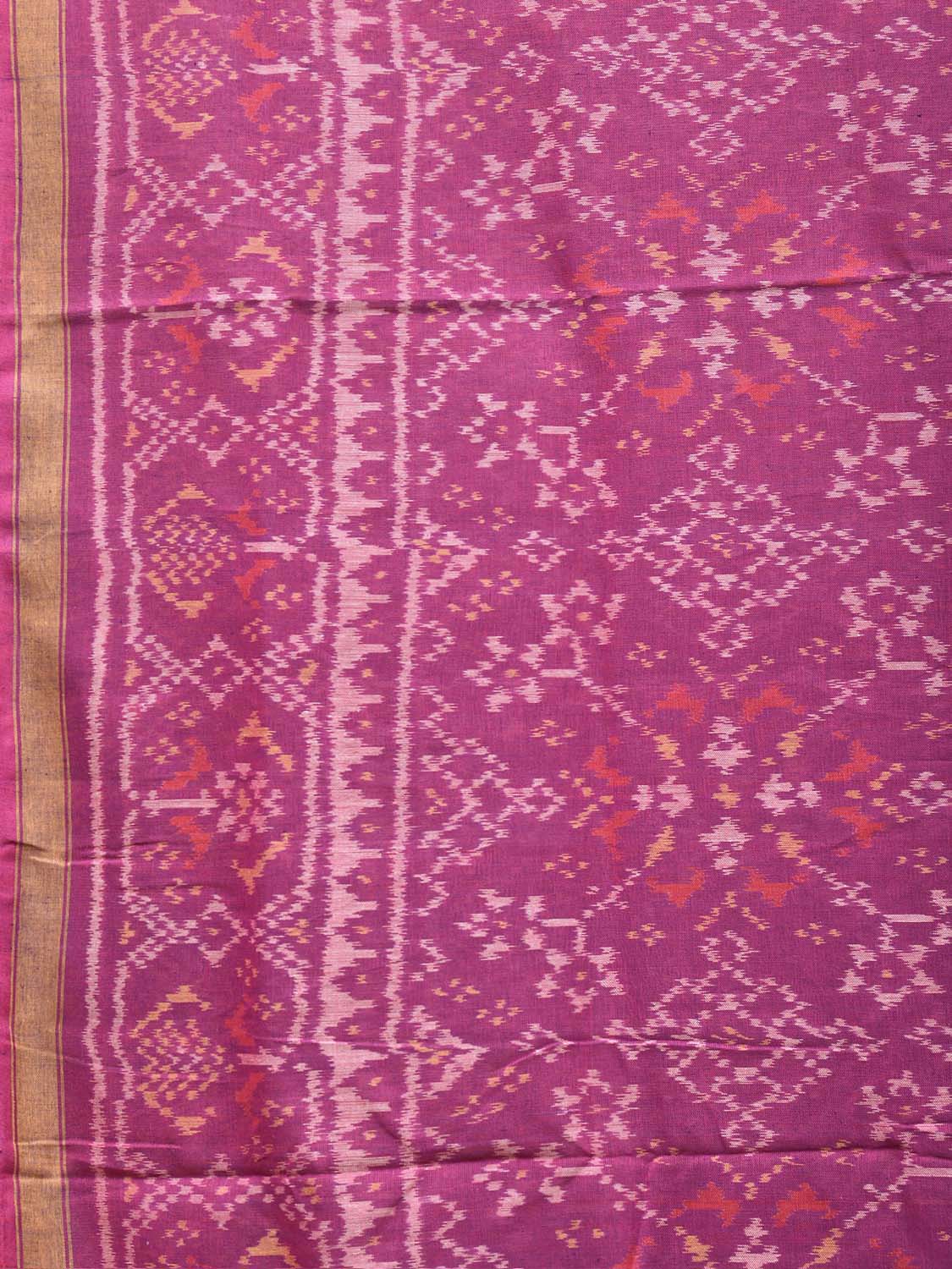 Magenta Ikat Cotton Handloom Saree with All Over Grill Design. This Handloom Saree from Andhra Pradesh has been woven using the resist-dyeing, which produces the unique patterns adorning the fabric. We advise gentle handwash separately for fabric care.
