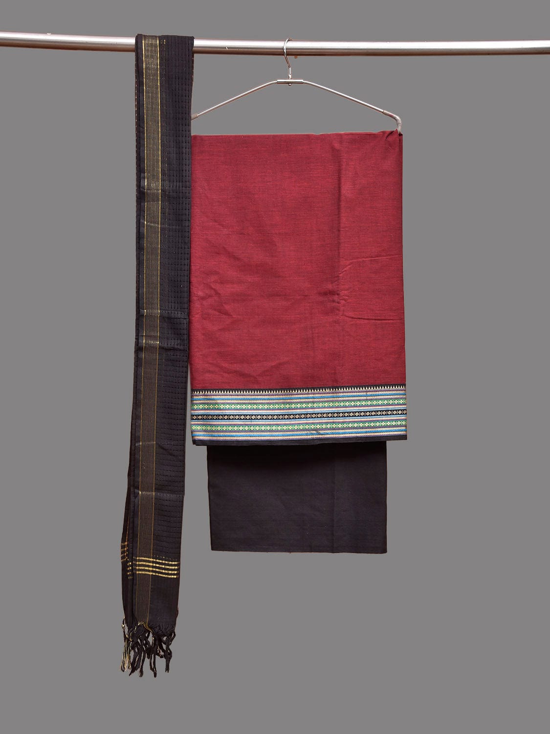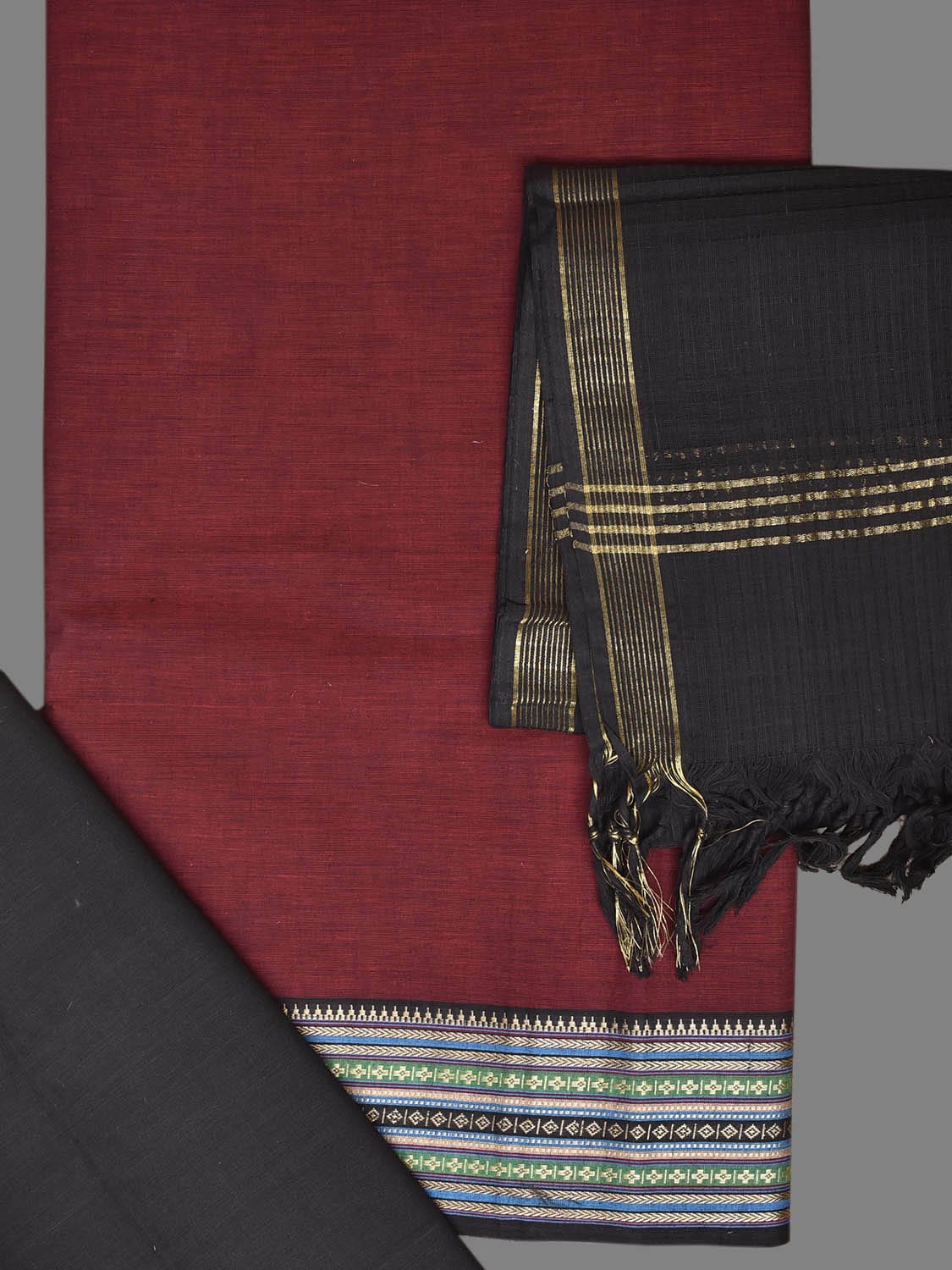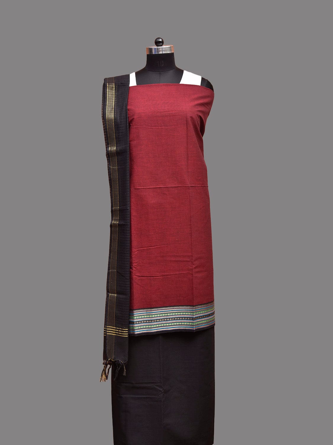 Maroon and Black Kanchipuram Cotton Dress Material with Top Bottom and Dupatta 2.5mt Length dm0088