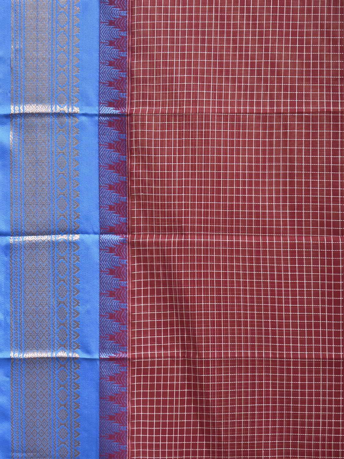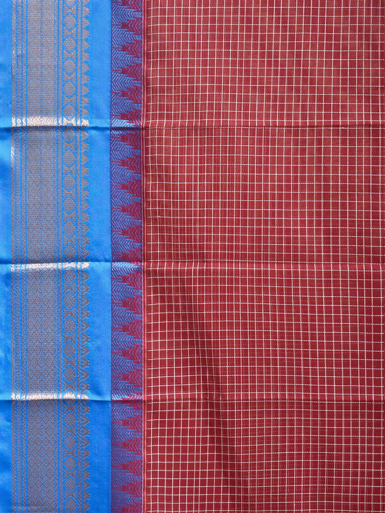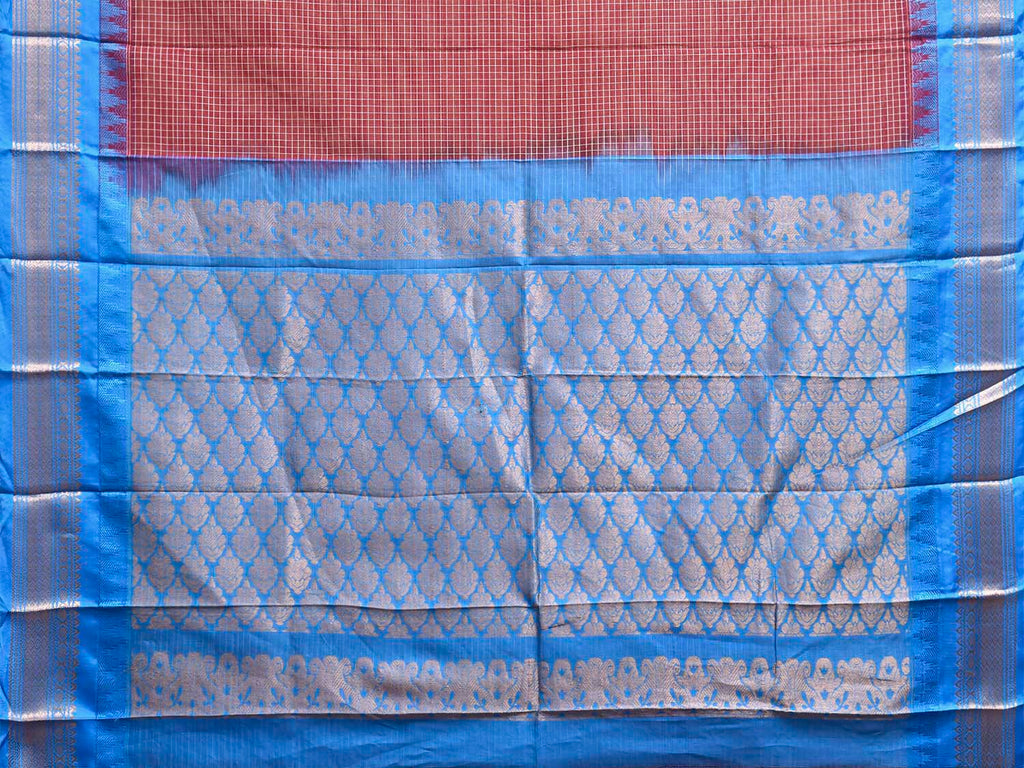 Maroon and Blue Gadwal Cotton Body Viscose Border Saree with Checks Design No Blouse g0625