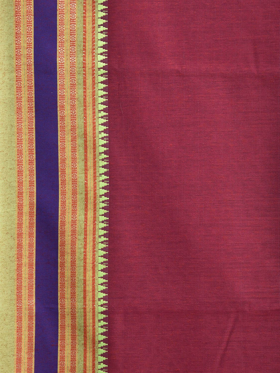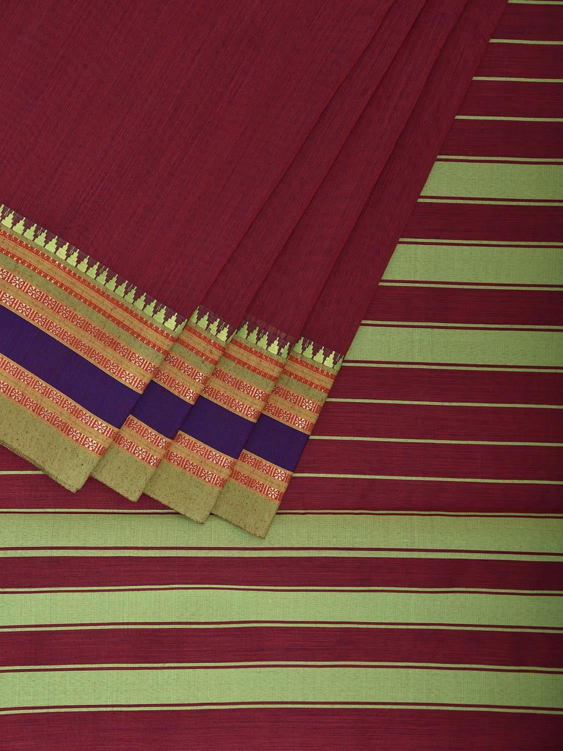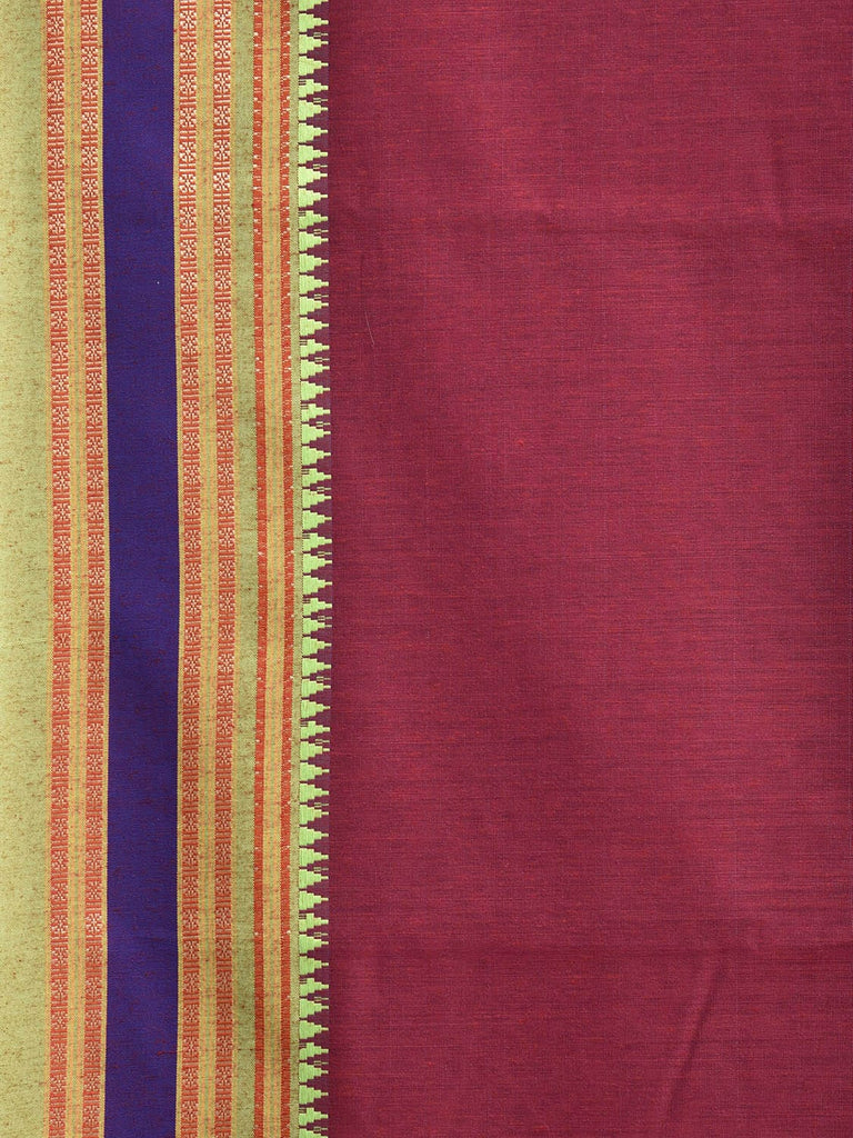 Maroon and Green Bamboo Cotton Plain Saree with Strips Pallu Design No Blouse. This is a blend of bamboo and cotton fibers, they have characteristics of both bamboo and cotton combined into one fabric. We Advise Gentle Handwash for Fabric Care. This Saree has no Blouse.