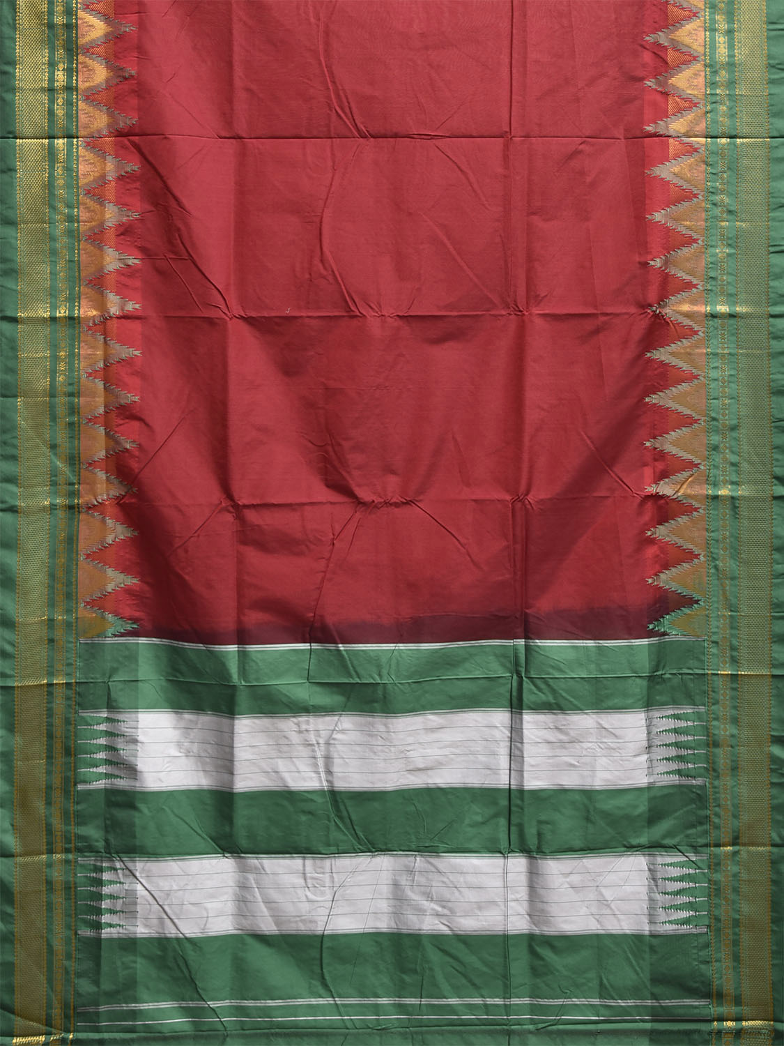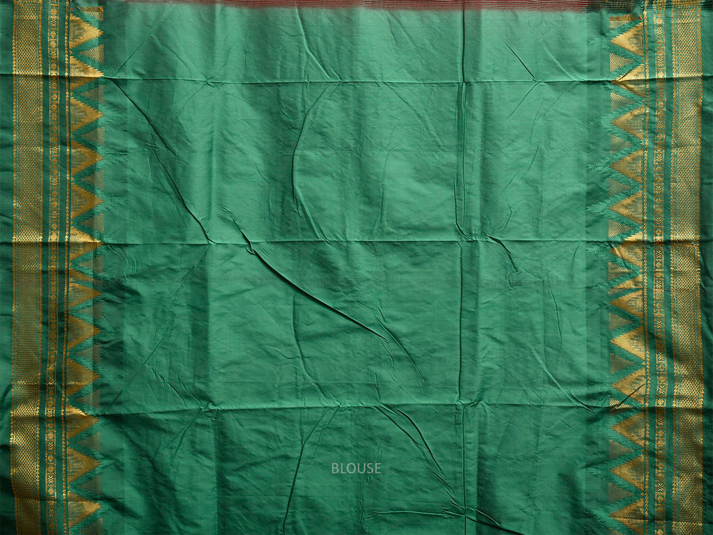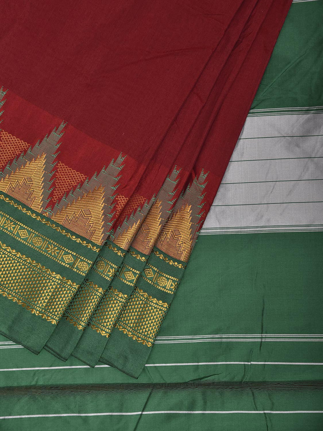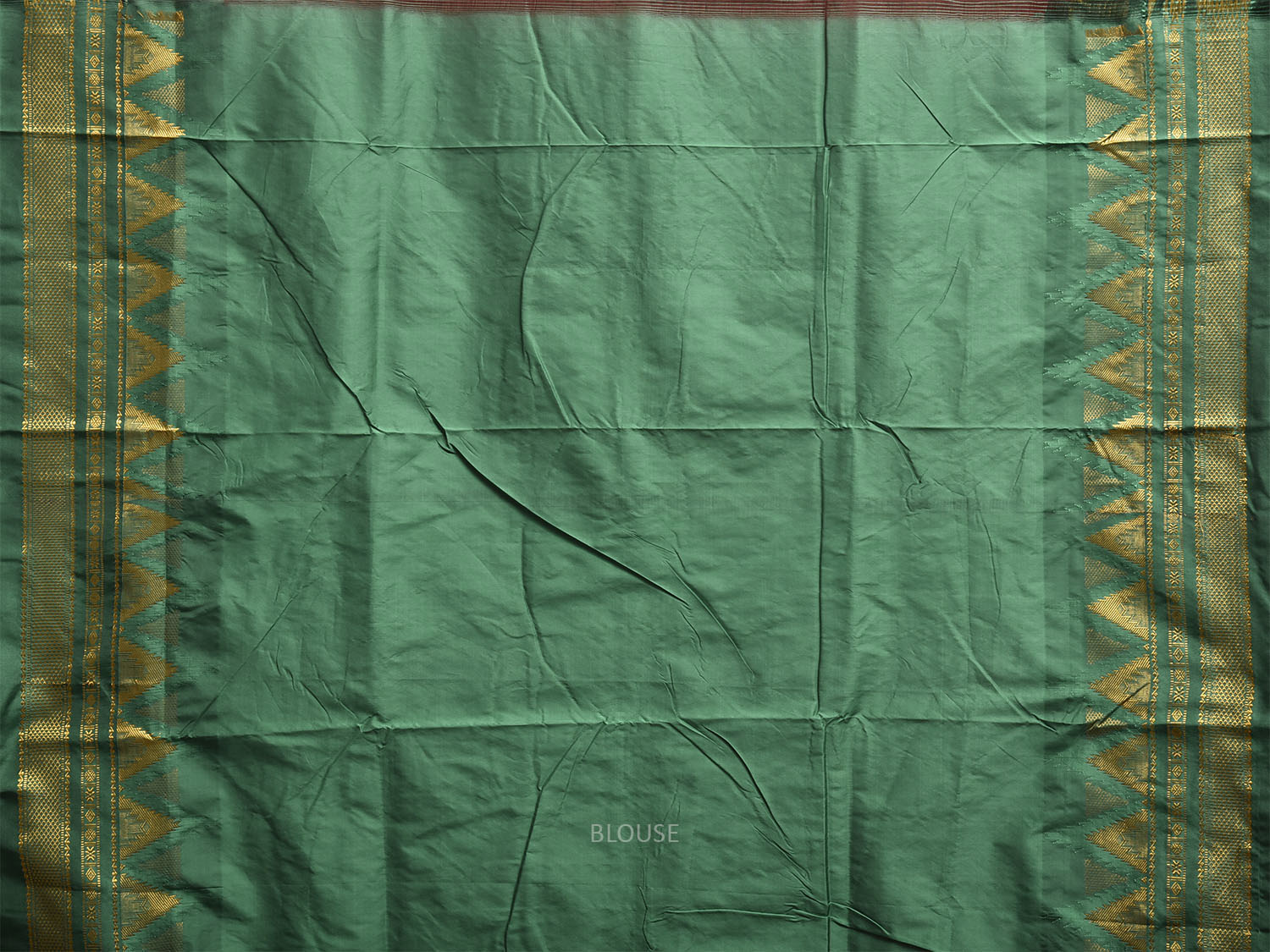 Maroon and Green ilkal Viscose Saree with Big Temple Border and Contrast Pallu Design. For fabric care we advise gentle handwash separately.