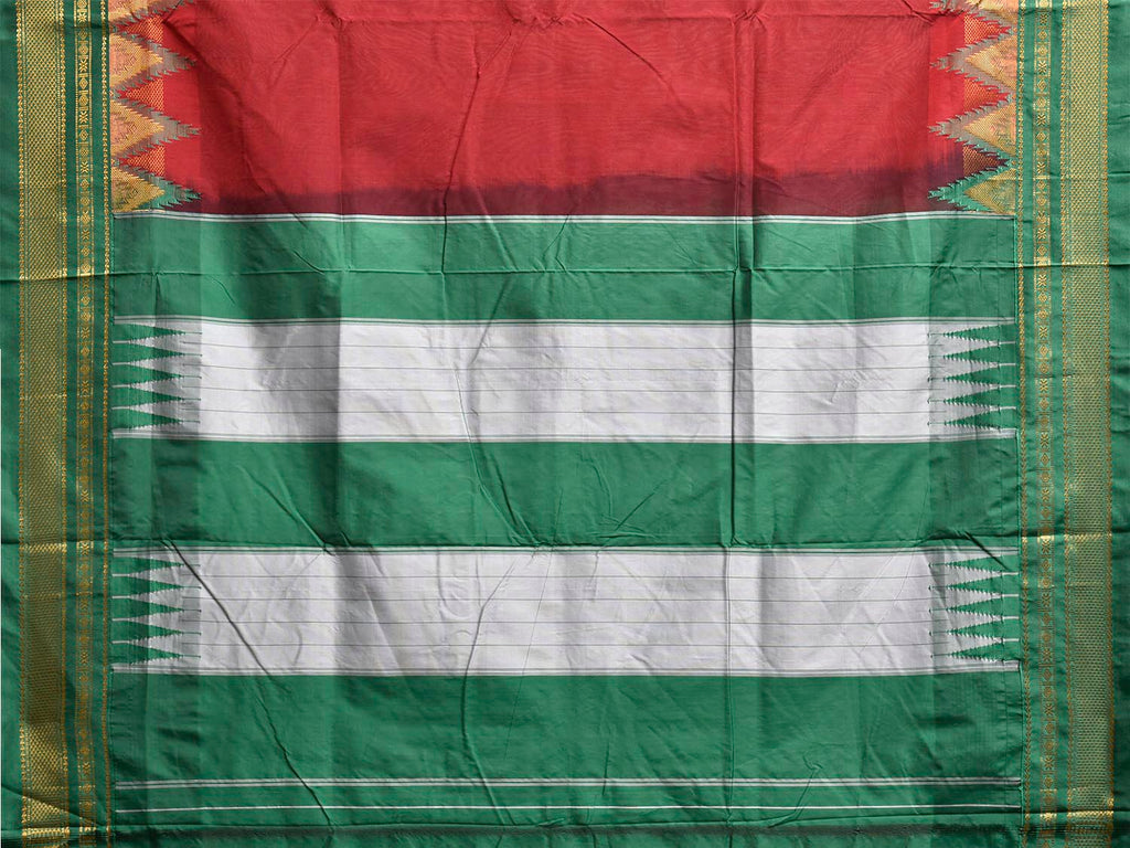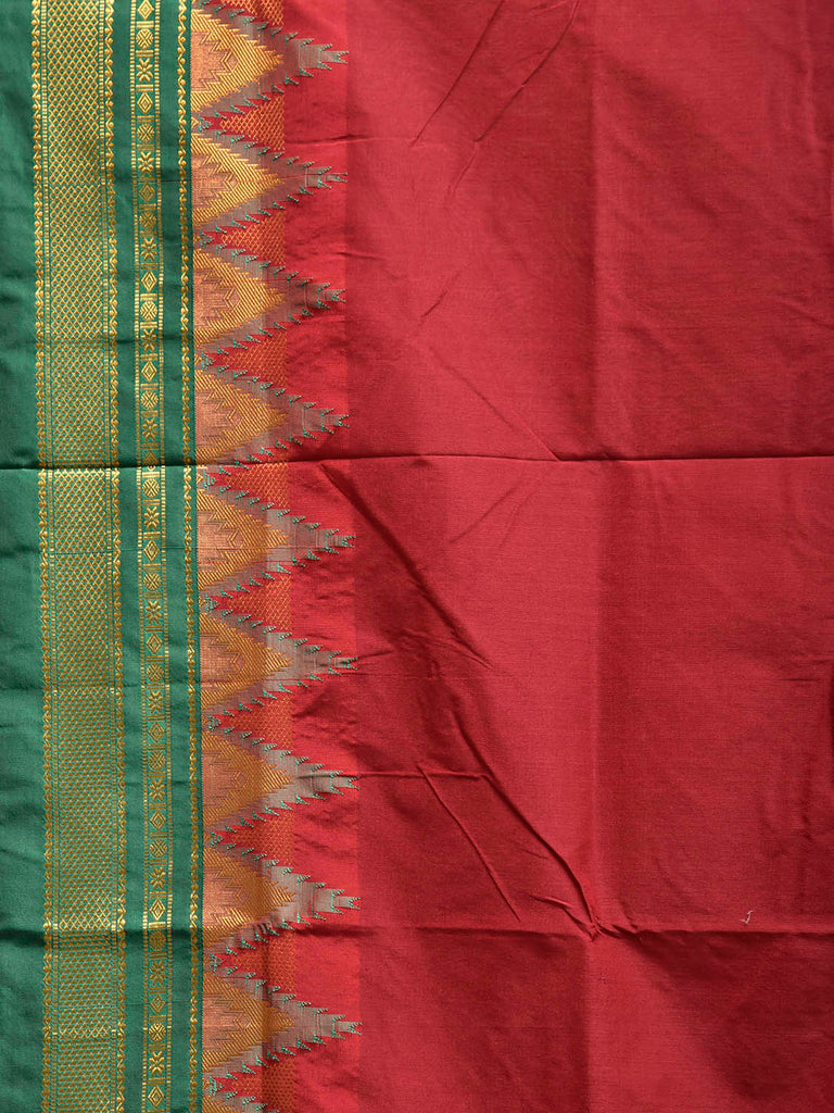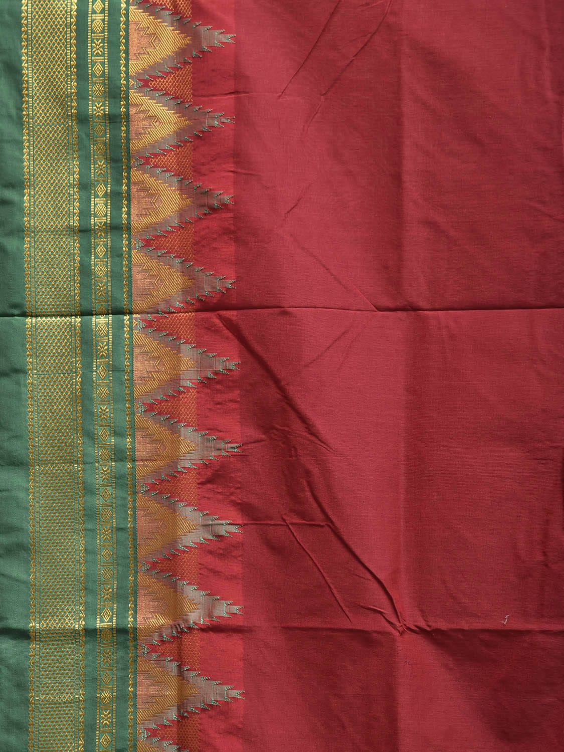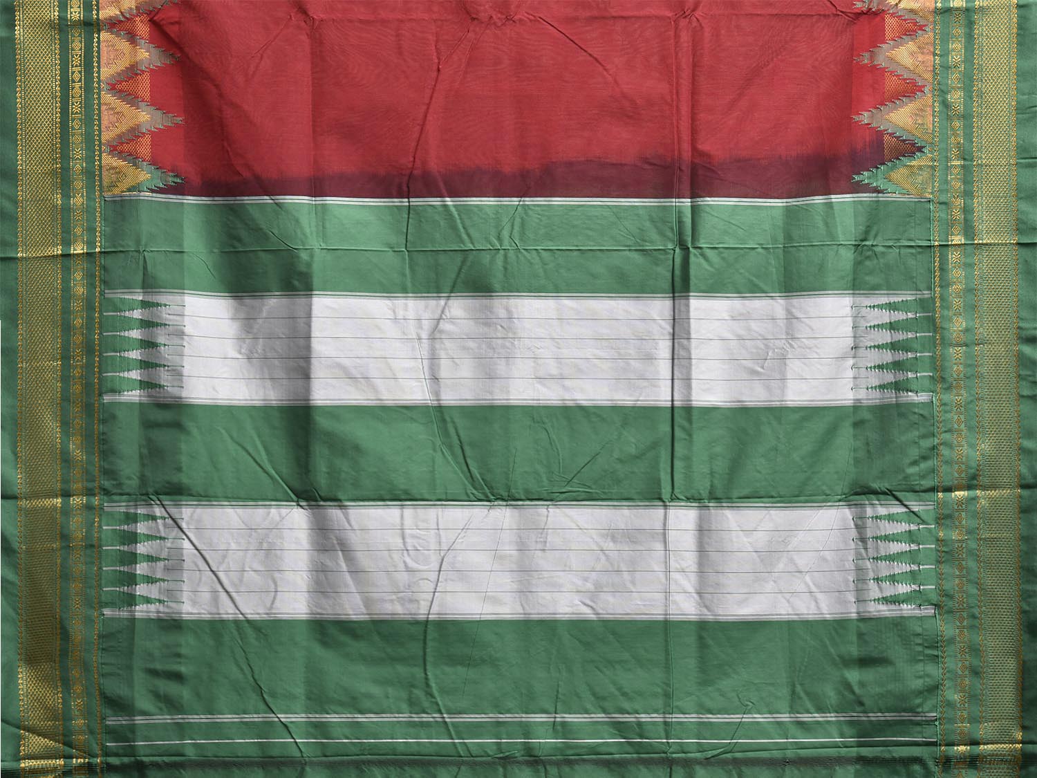 Maroon and Green ilkal Viscose Saree with Big Temple Border and Contrast Pallu Design. For fabric care we advise gentle handwash separately.