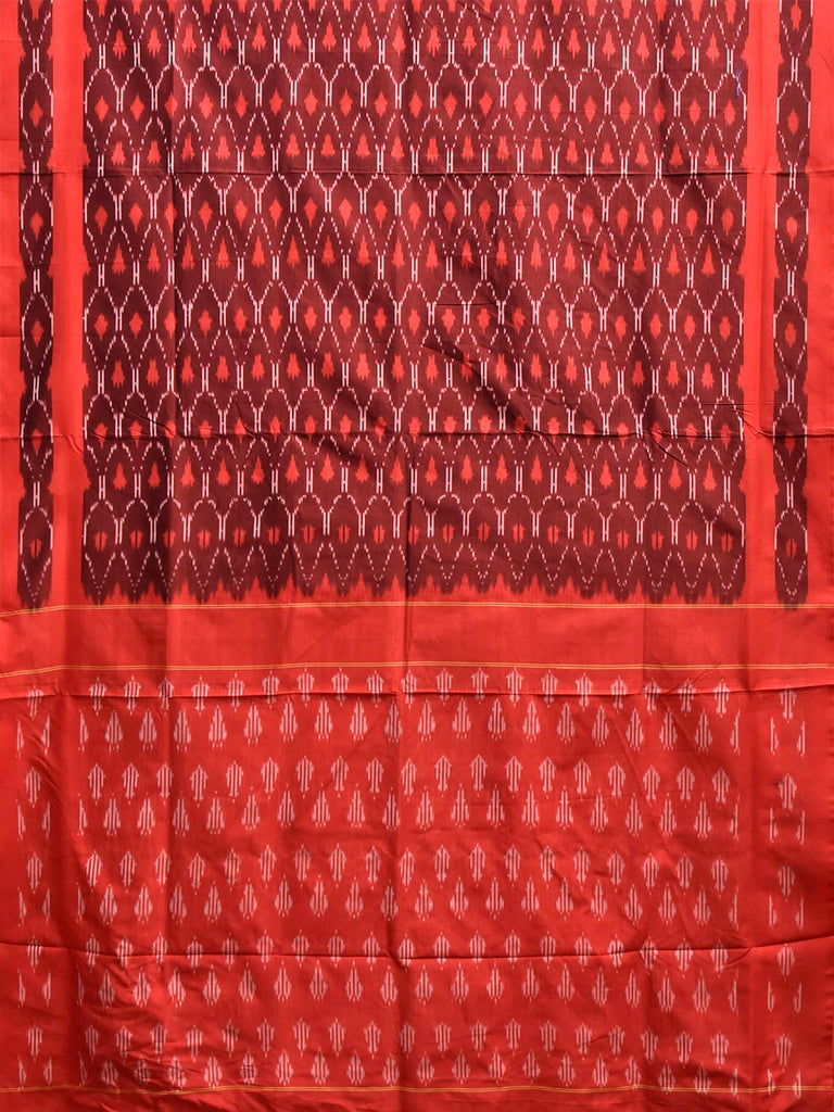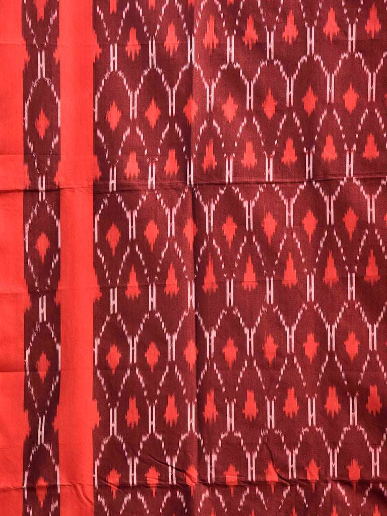 Maroon and Red Pochampally Ikat Cotton Handloom Saree with Grill Design No Blouse i0977