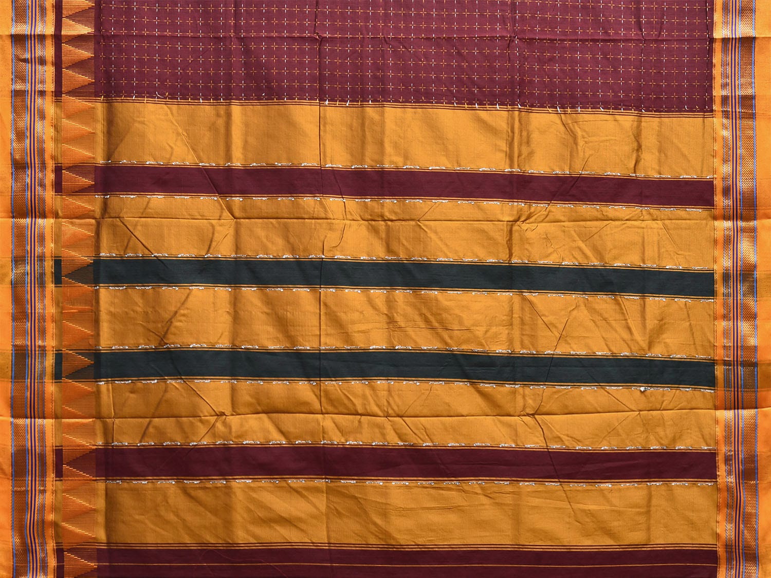 Maroon and Yellow ilkal Viscose Plain Saree with Checks and Temple Border Design No Blouse. For fabric care we advise gentle handwash separately. This saree has no blouse.