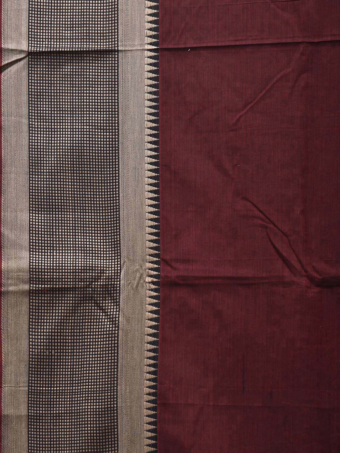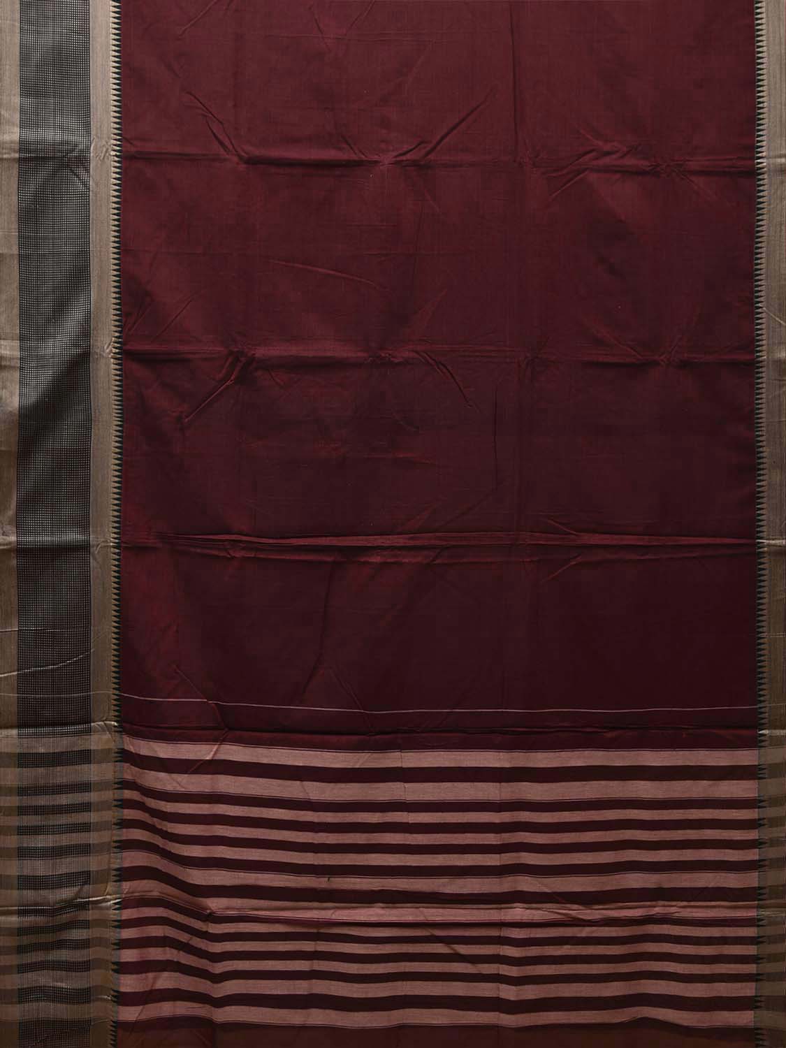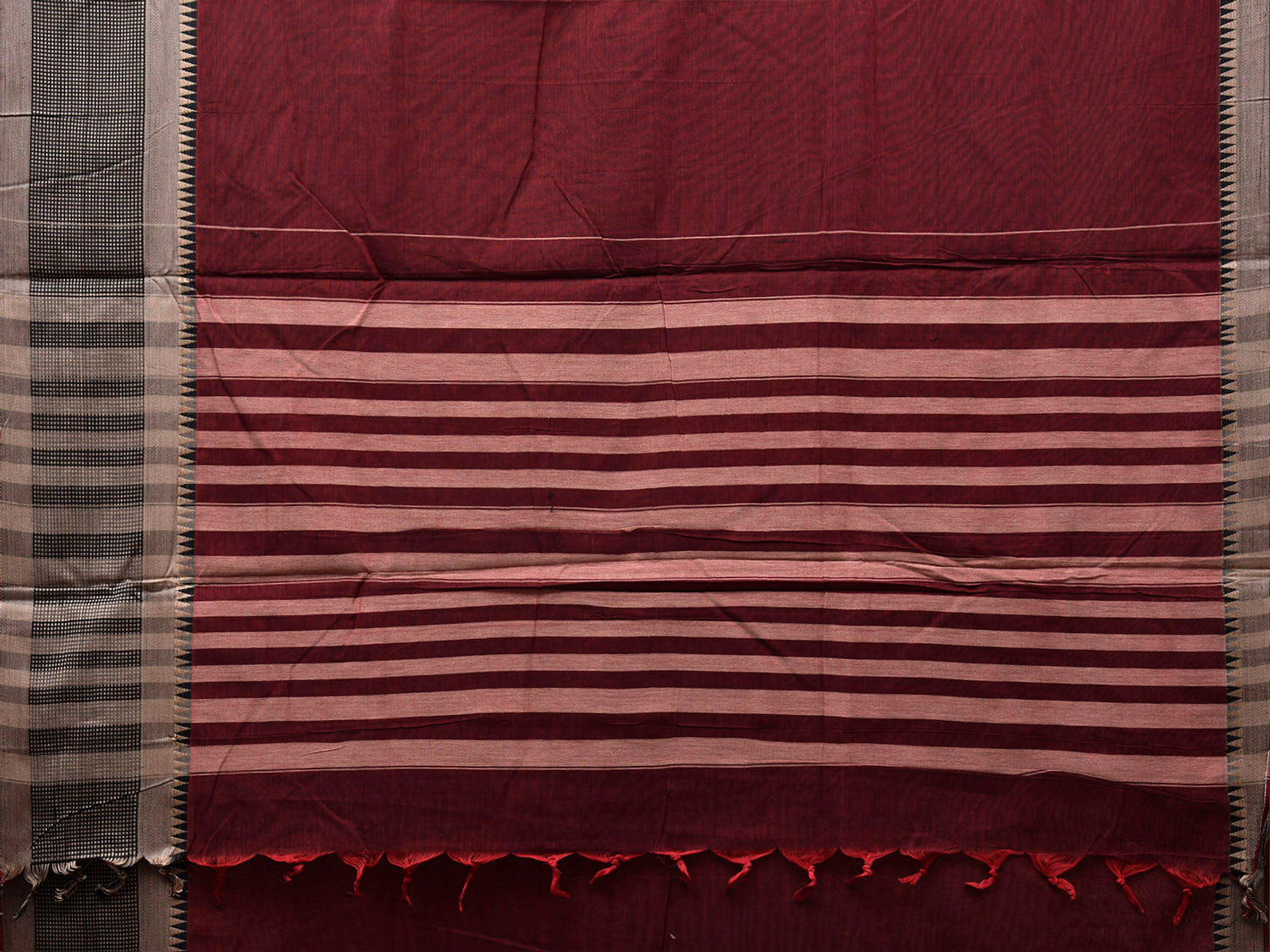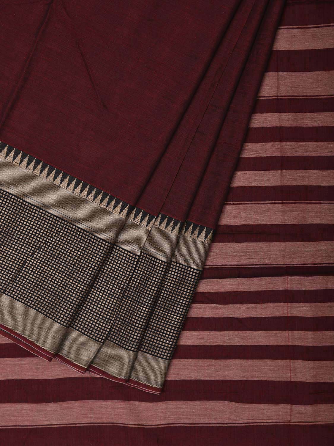 Maroon Kanchipuram Cotton Plain Saree with Strips Pallu and Border Design No Blouse k1155