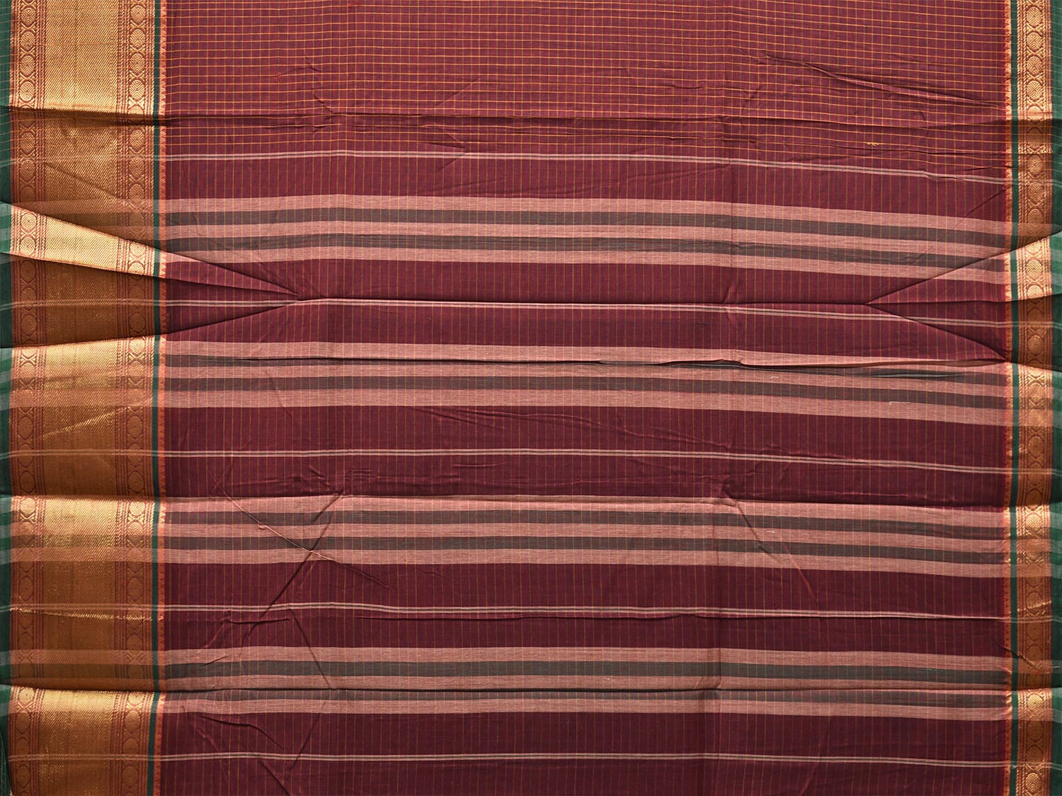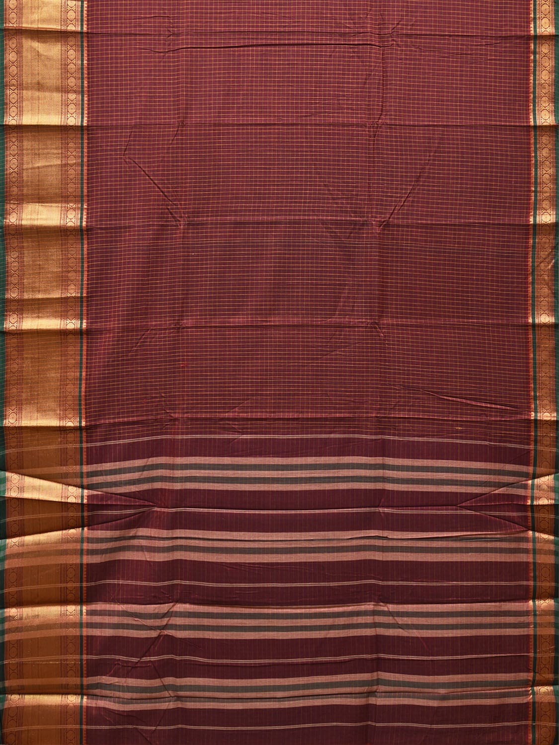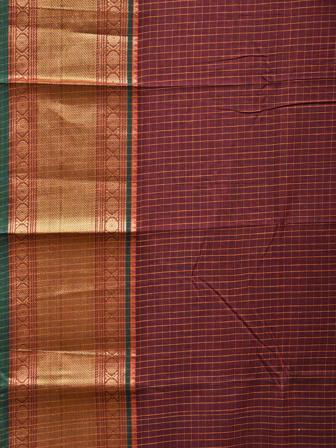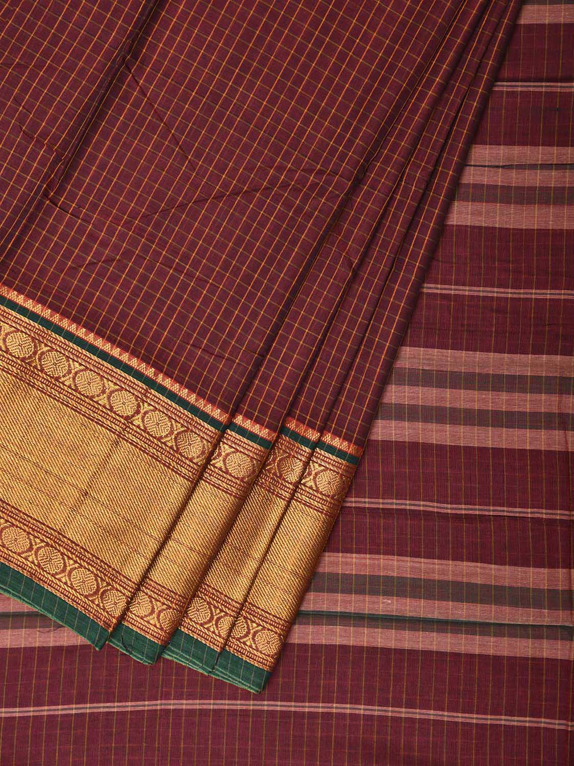 Maroon Kanchipuram Cotton Saree with Checks and Strips Pallu Design No Blouse k1150