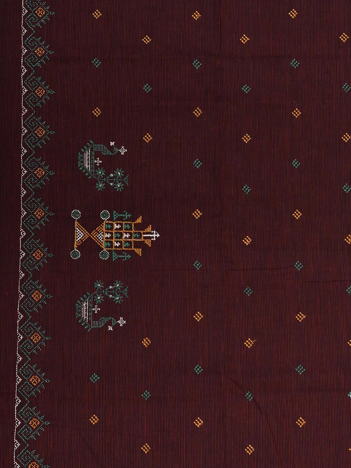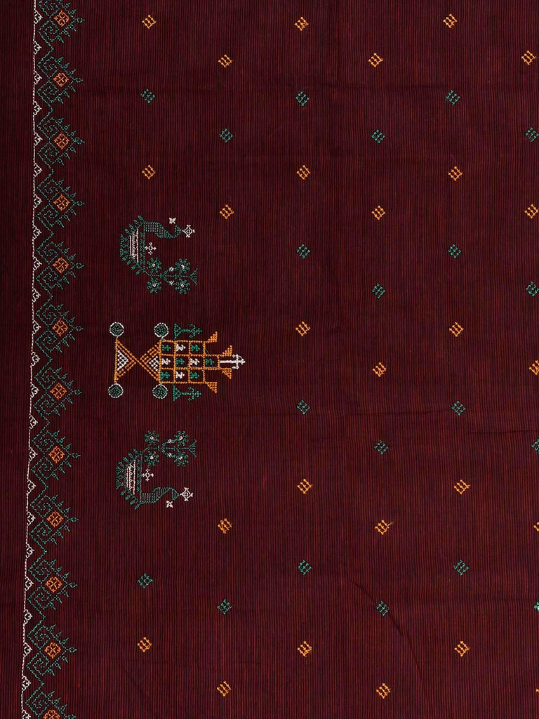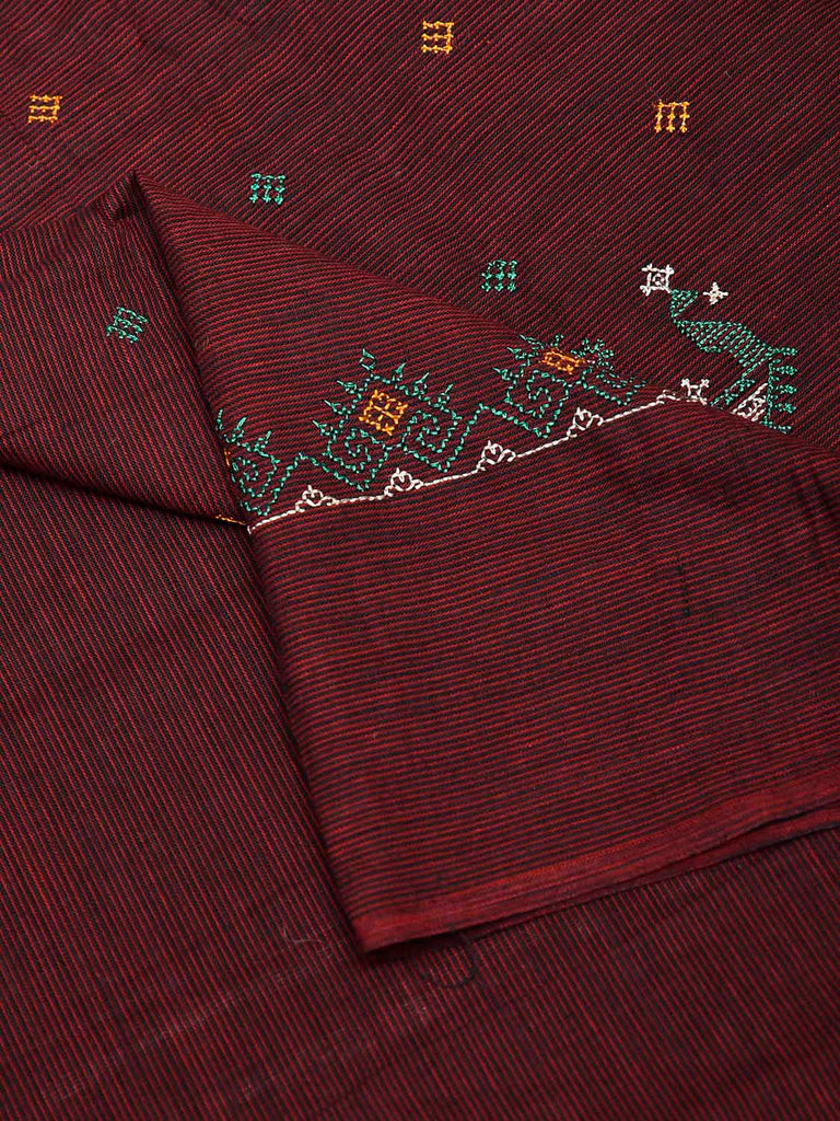 Maroon Kasuti Khadi Cotton Blouse with Peacock Design Length 1mt Width 44 Inches. . Khadi cloth is primarily woven from cotton and may also include silk, or wool. It is a versatile fabric, cool in summer and warm in winter. For fabric care we advise gentle handwash separately.