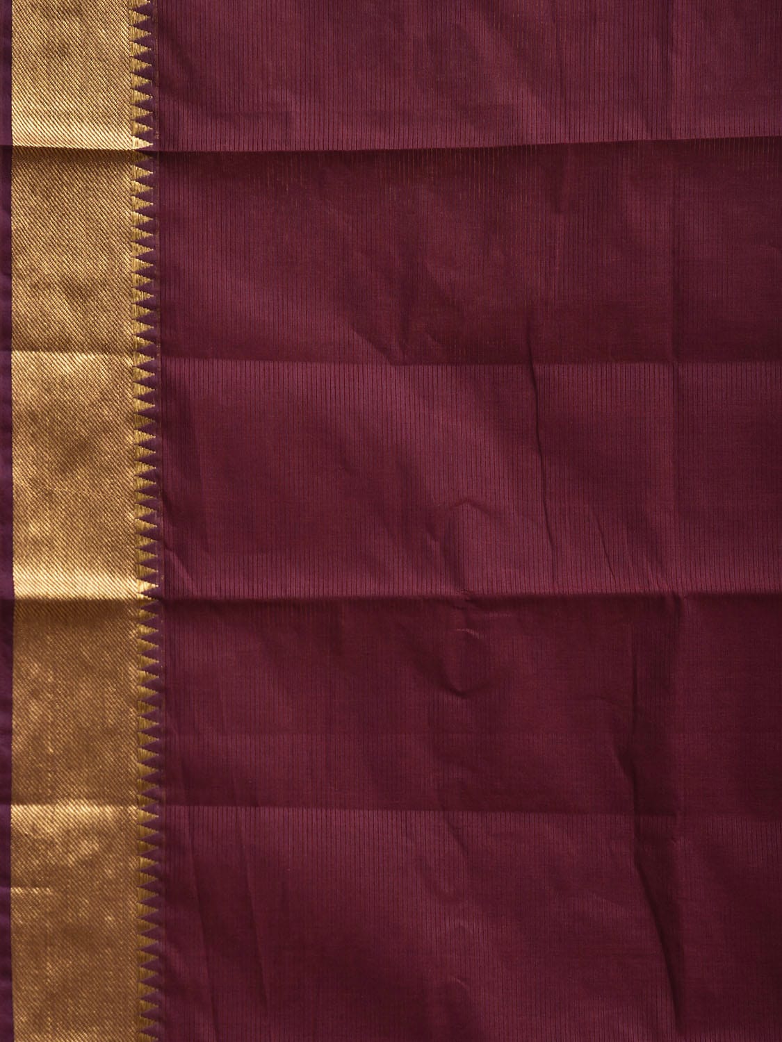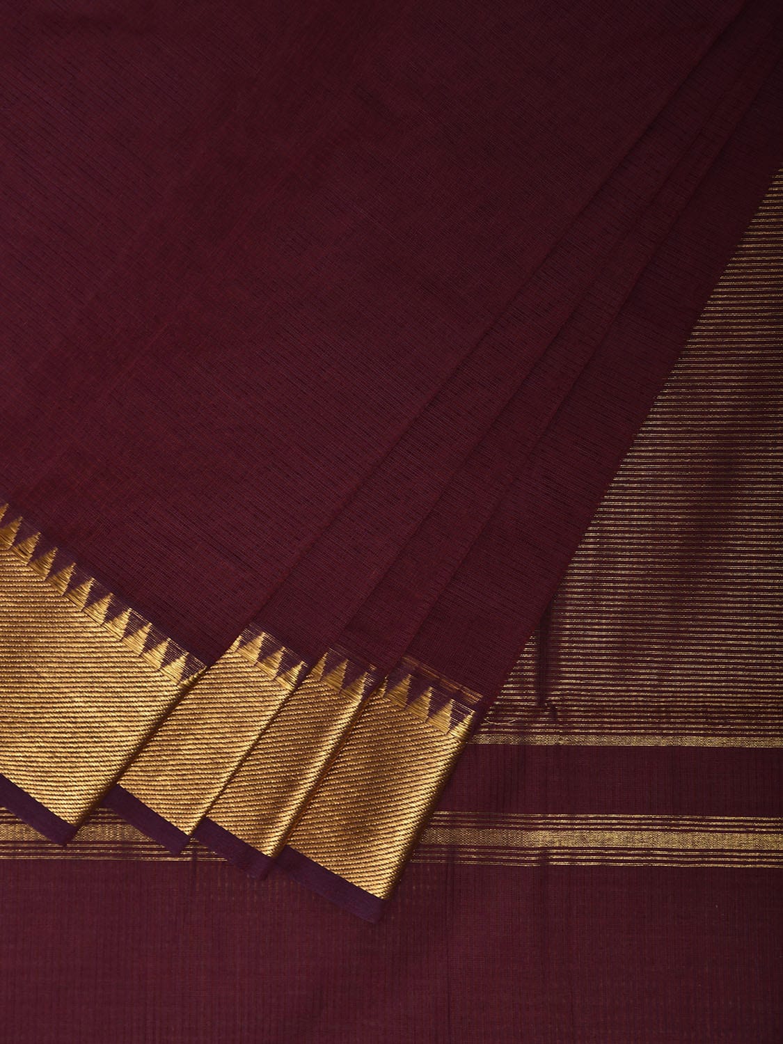Maroon Mangalgiri Cotton Handloom Saree with Strips and Small Temple Border Design No Blouse. These are Simple and Traditional Andhra Pradesh Handloom Dupattas, being soft cotton they are comfortable to wear. For fabric care we advise gentle handwash it separately. This saree has no blouse.