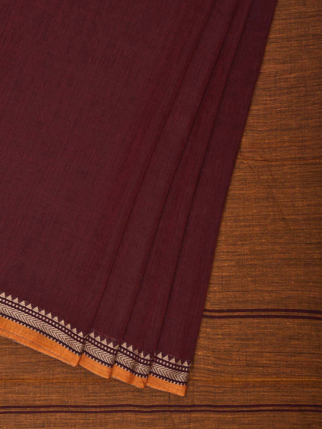 Maroon Narayanpet Cotton Handloom Plain Saree with Contrast Pallu Design No Blouse np1433