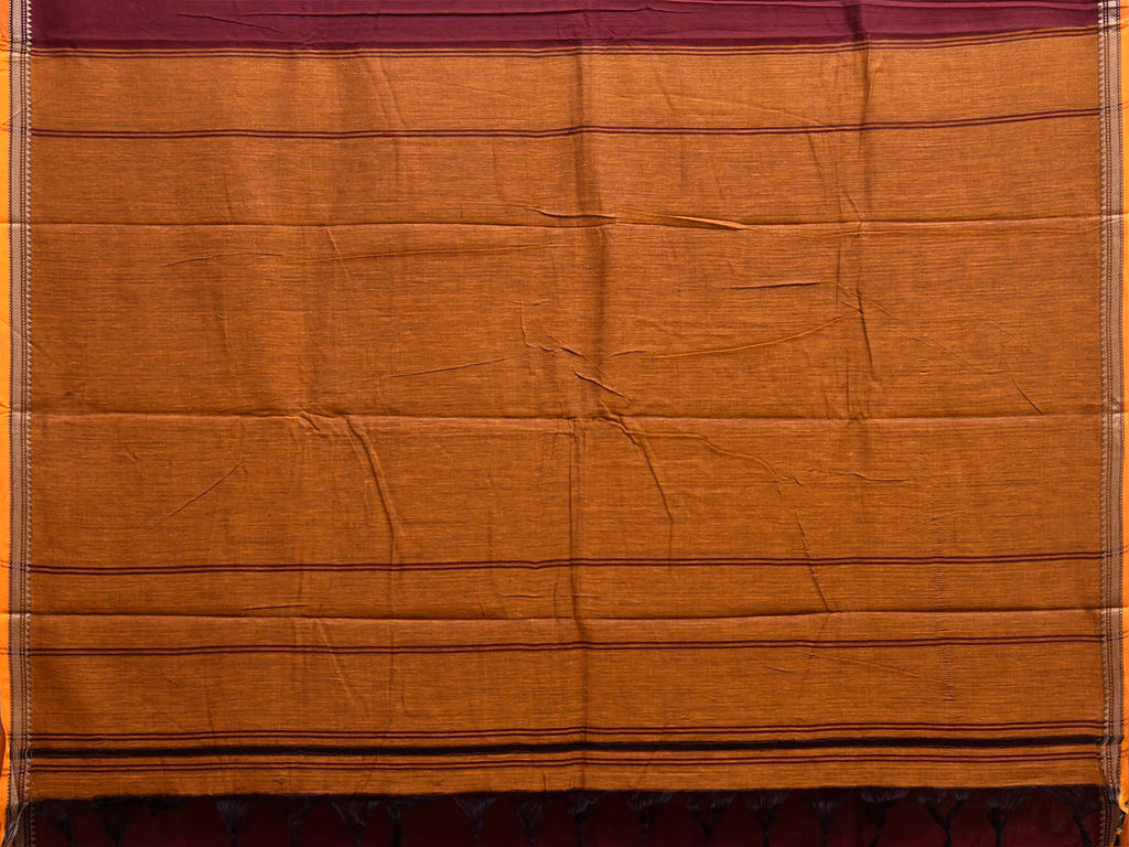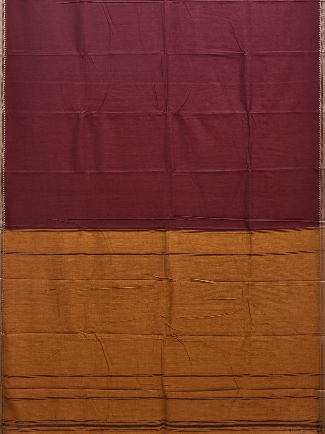 Maroon Narayanpet Cotton Handloom Plain Saree with Contrast Pallu Design No Blouse. This saree has no blouse.