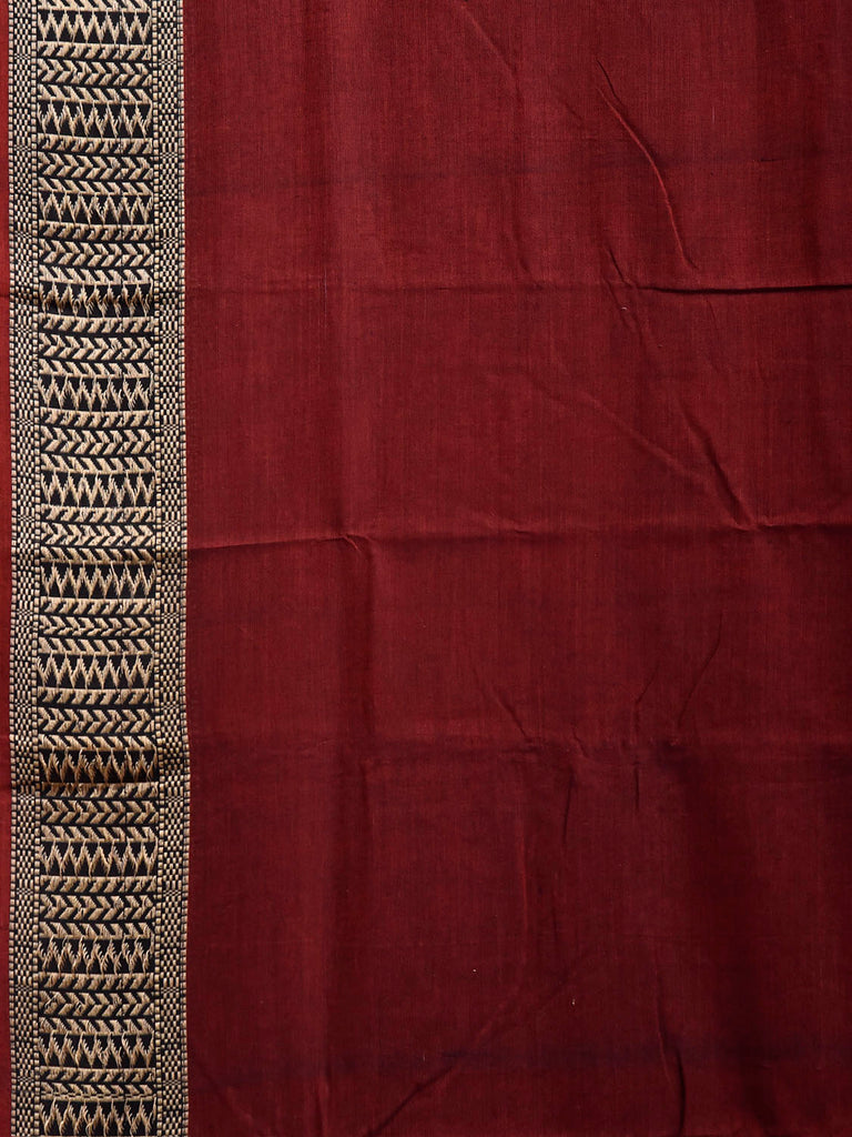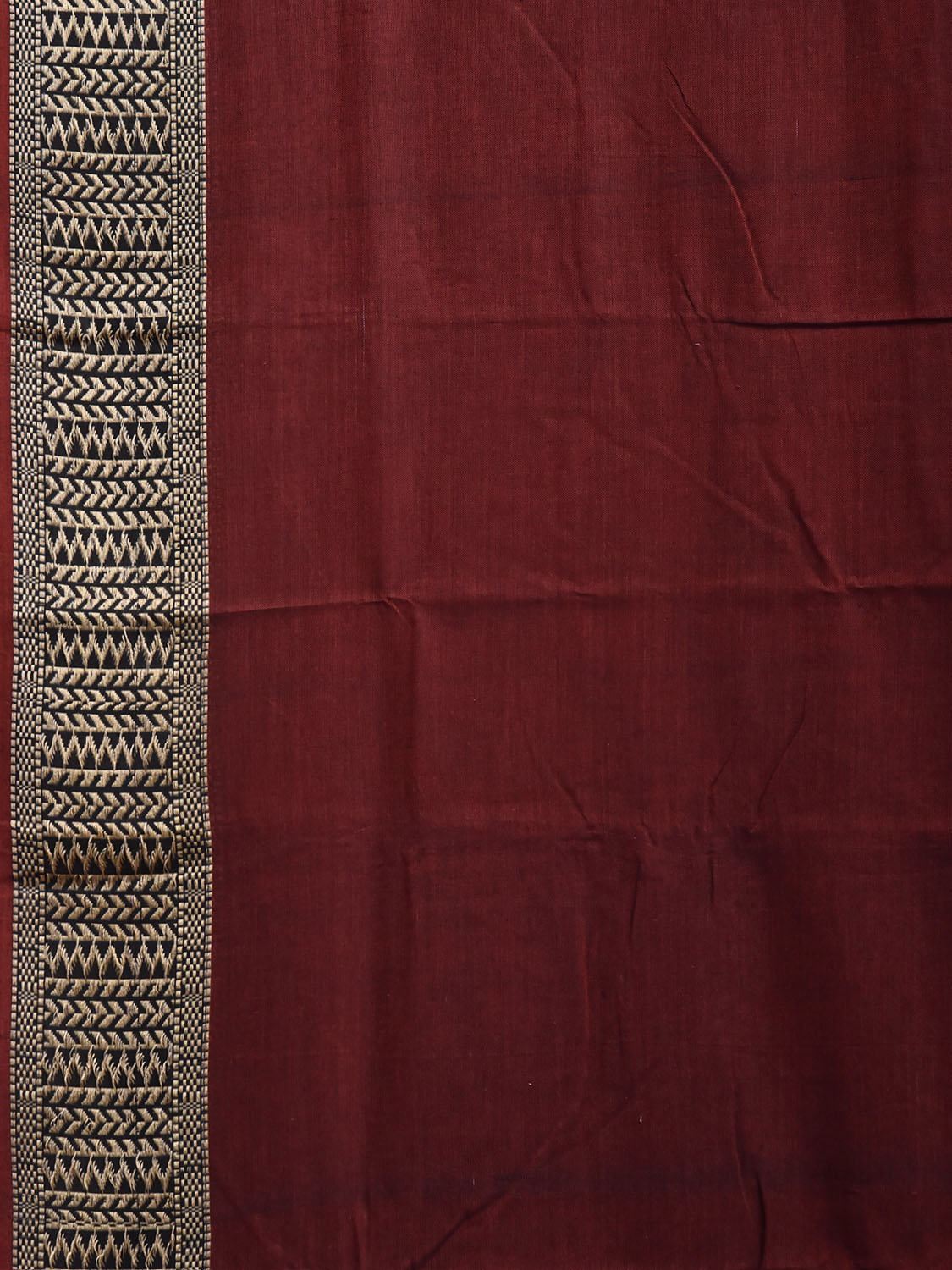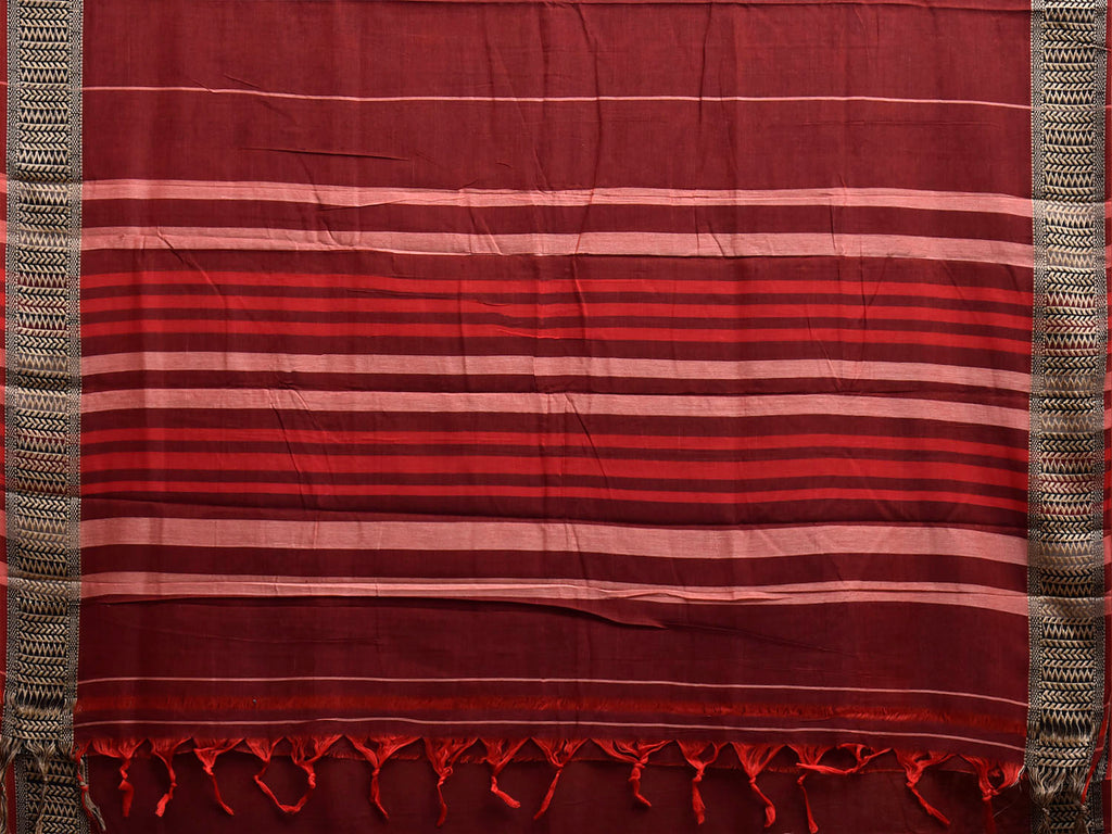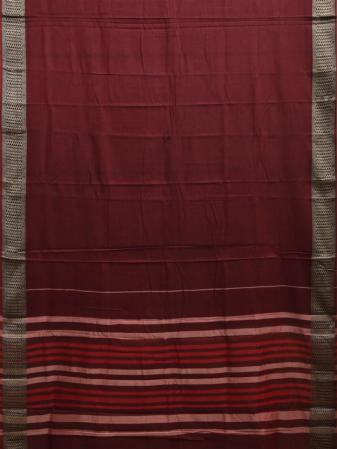 Maroon Narayanpet Cotton Plain Saree with Strips Pallu and Border Design No Blouse. This saree has no blouse.