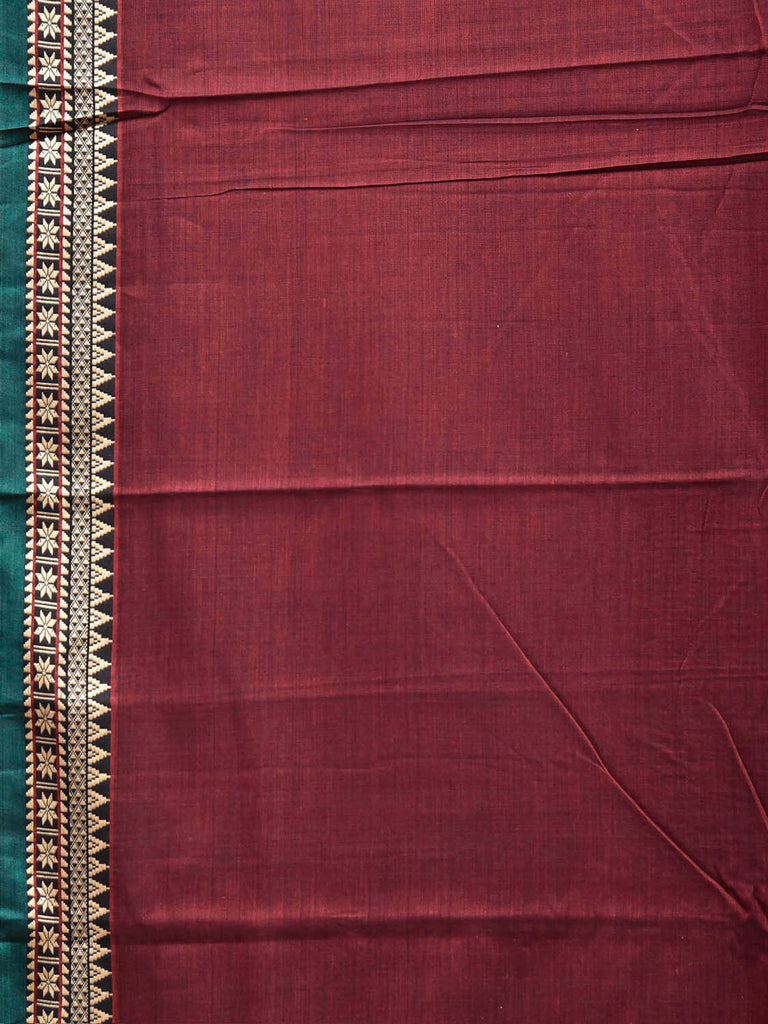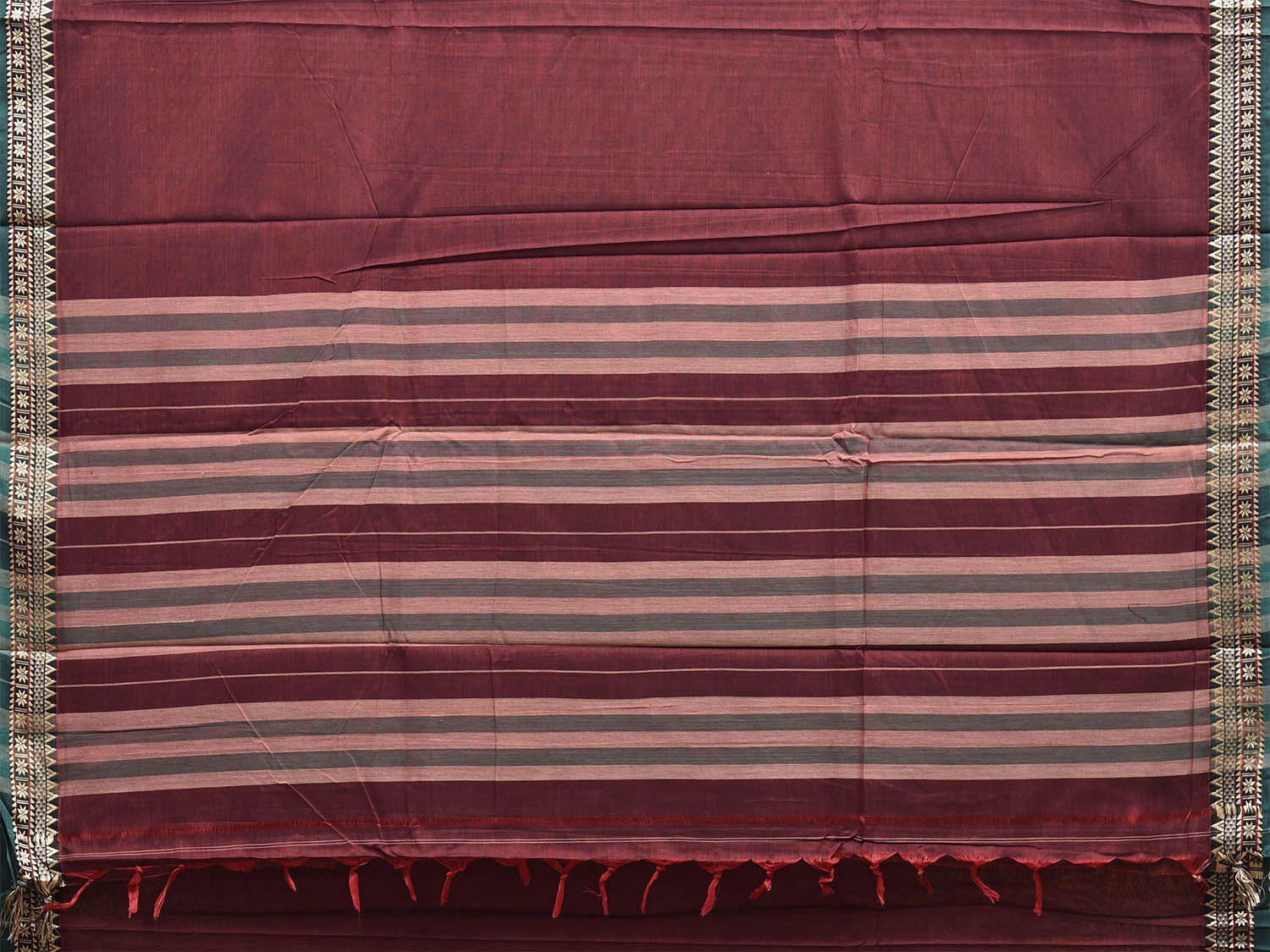 Maroon Narayanpet Cotton Plain Saree with Strips Pallu and Border Design No Blouse. This saree has no blouse.