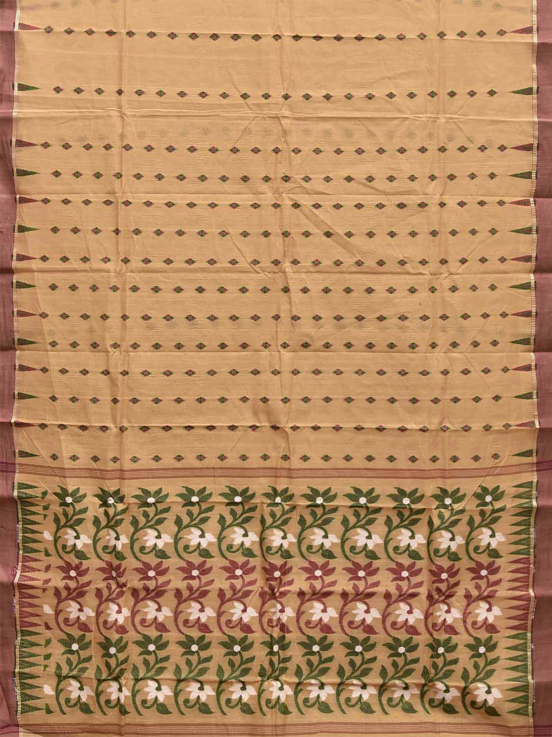 Multicolor Dhakai Jamdani Cotton Saree with Buta and Floral Pallu Design. These are some of the traditional Dhakai Jamdani designs, these sarees have geometric designs and sometimes floral or combination of both. We advice gentle handwash separately for fabric care. This saree has no blouse.