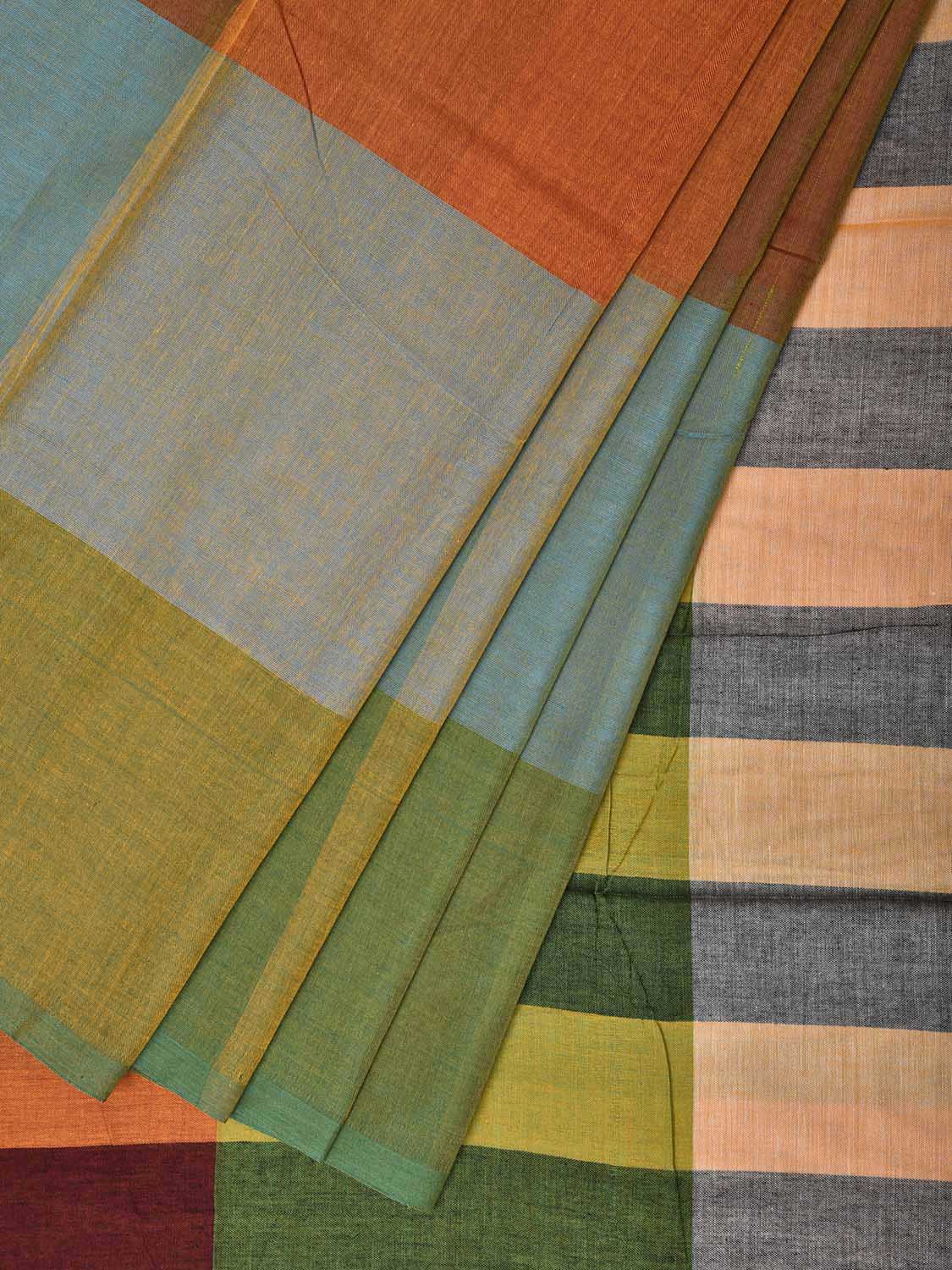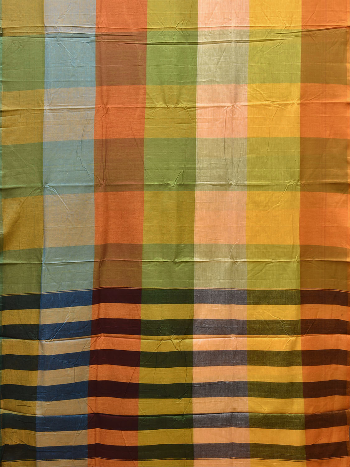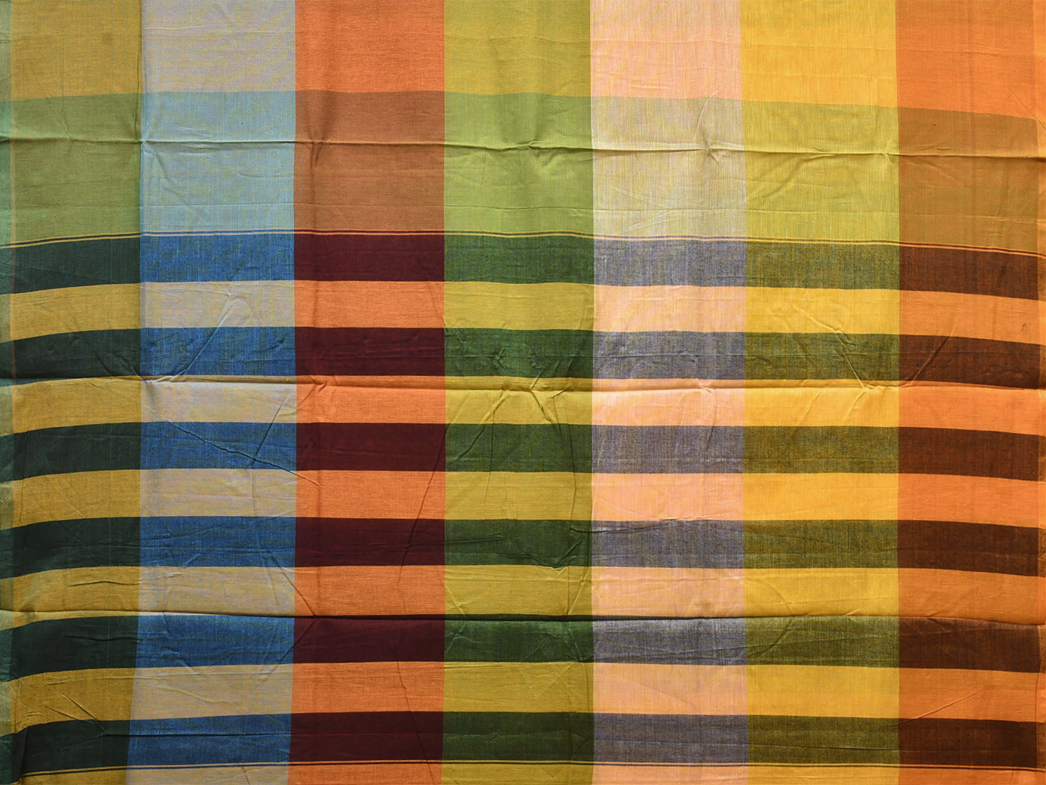Multicolor Kanchipuram Cotton Saree with Big Checks and Strips Pallu Design No Blouse. Traditional Simple South Indian Attire Saree for any Casual Occasions. As it’s a cotton saree we advice gentle handwash separately for fabric care. This saree has no blouse.