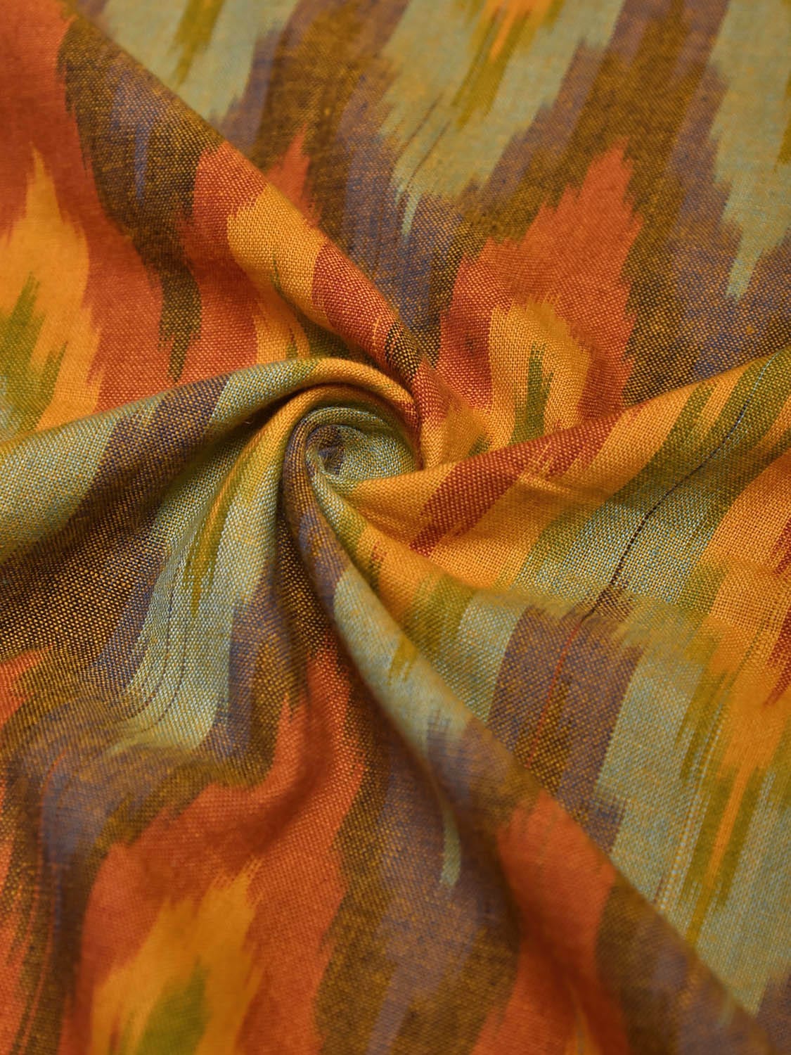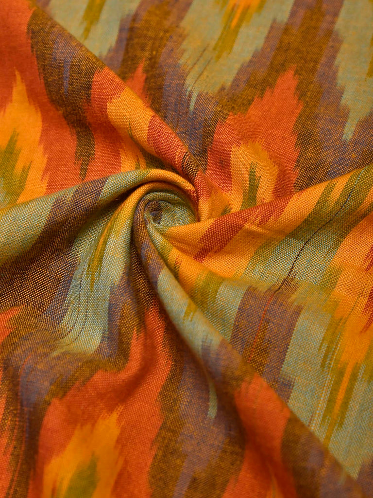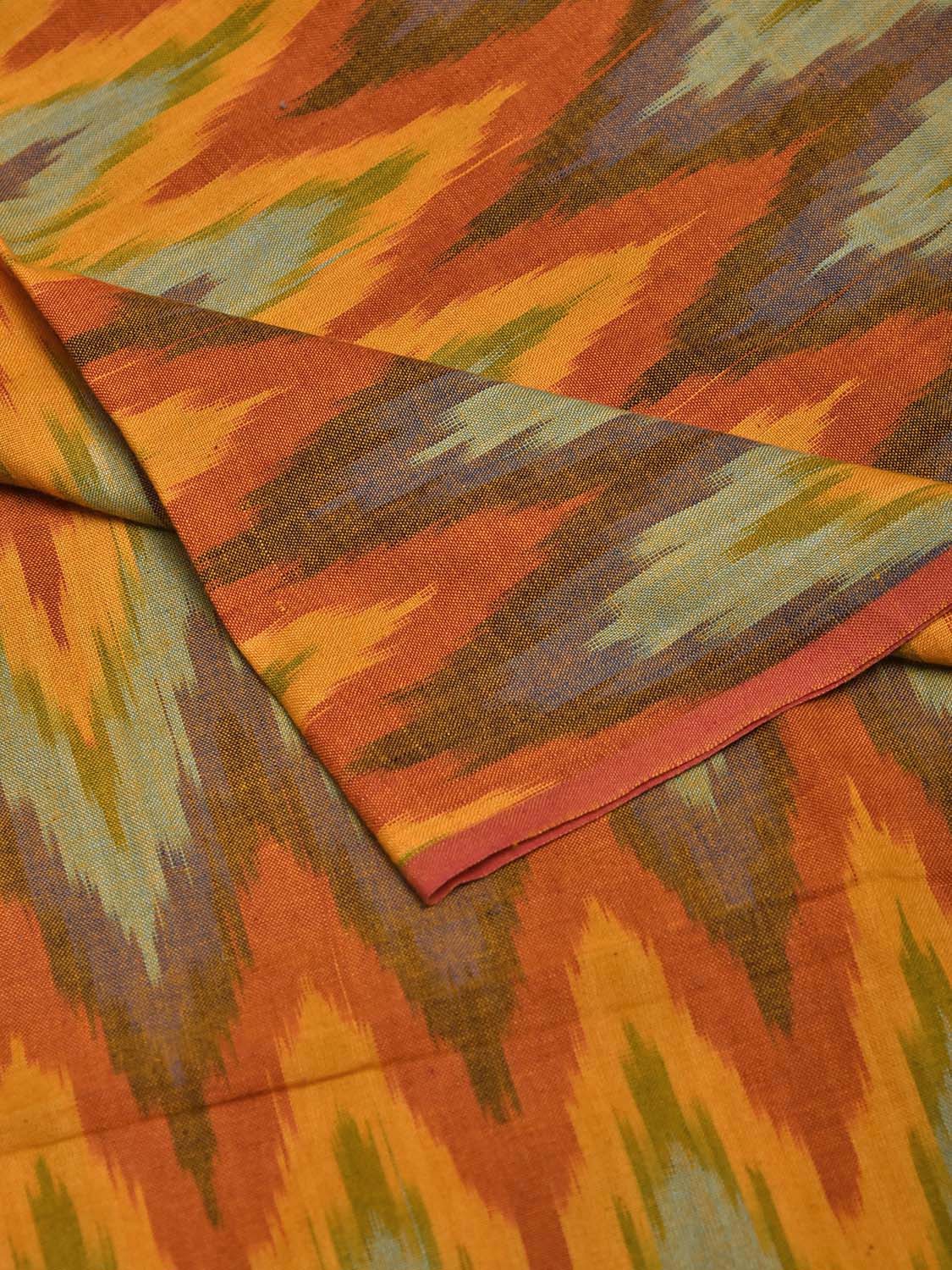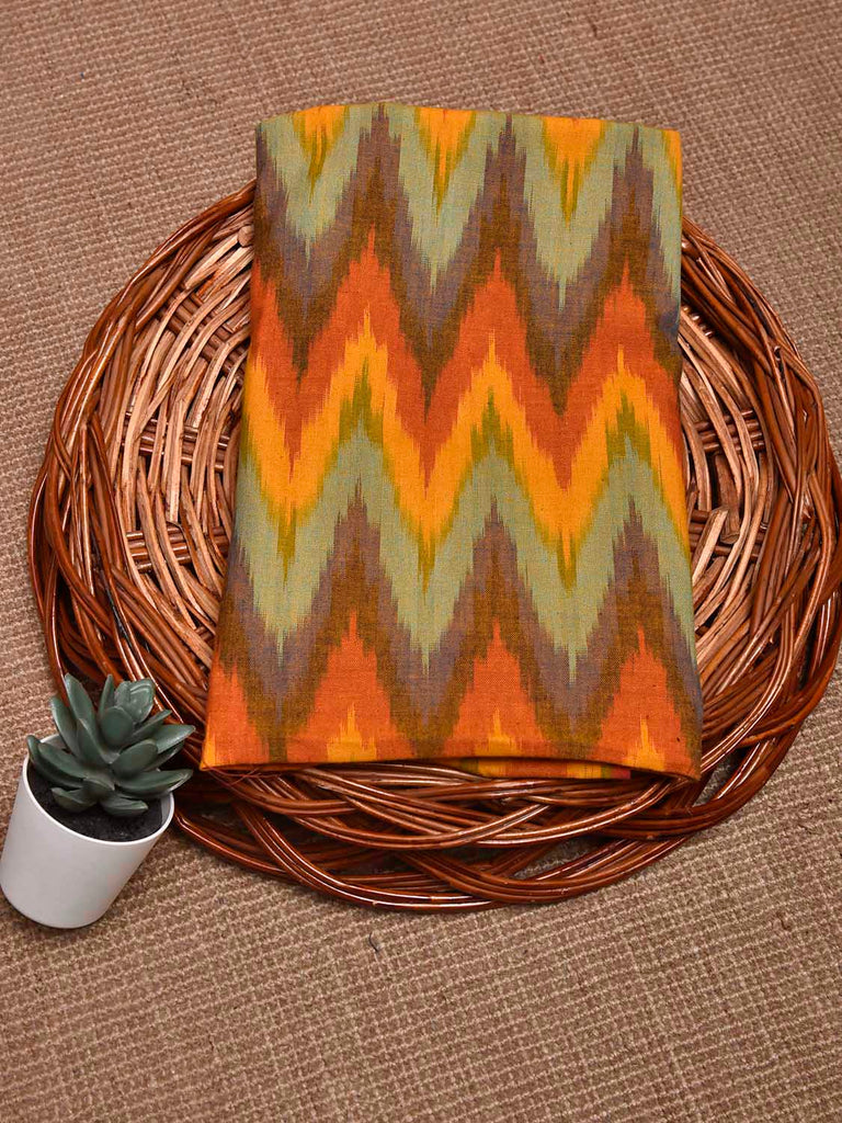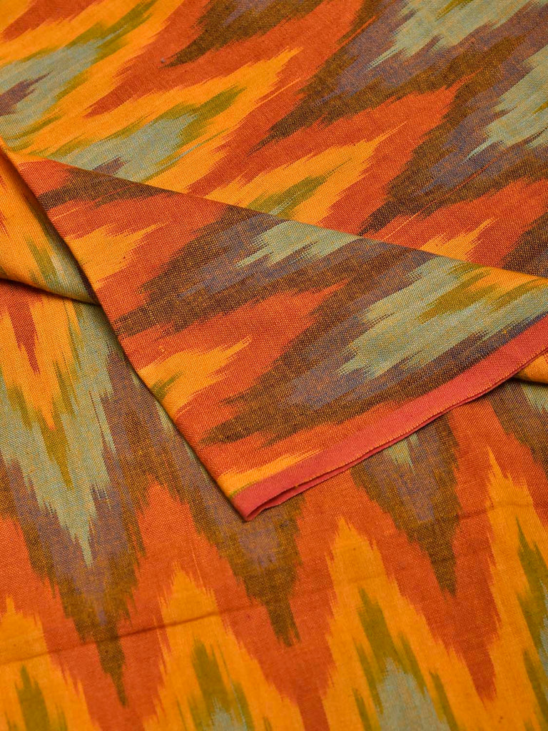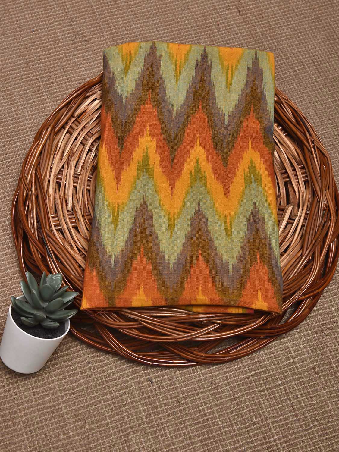 Multicolor Pochampally Ikat Cotton Handloom Blouse with Zig-Zag Design Length 1mt Width 44 Inches. This fabric is from Andhra Pradesh has been woven using the resist-dyeing, which produces the unique patterns adorning the fabric. We advise gentle handwash separately for fabric care.
