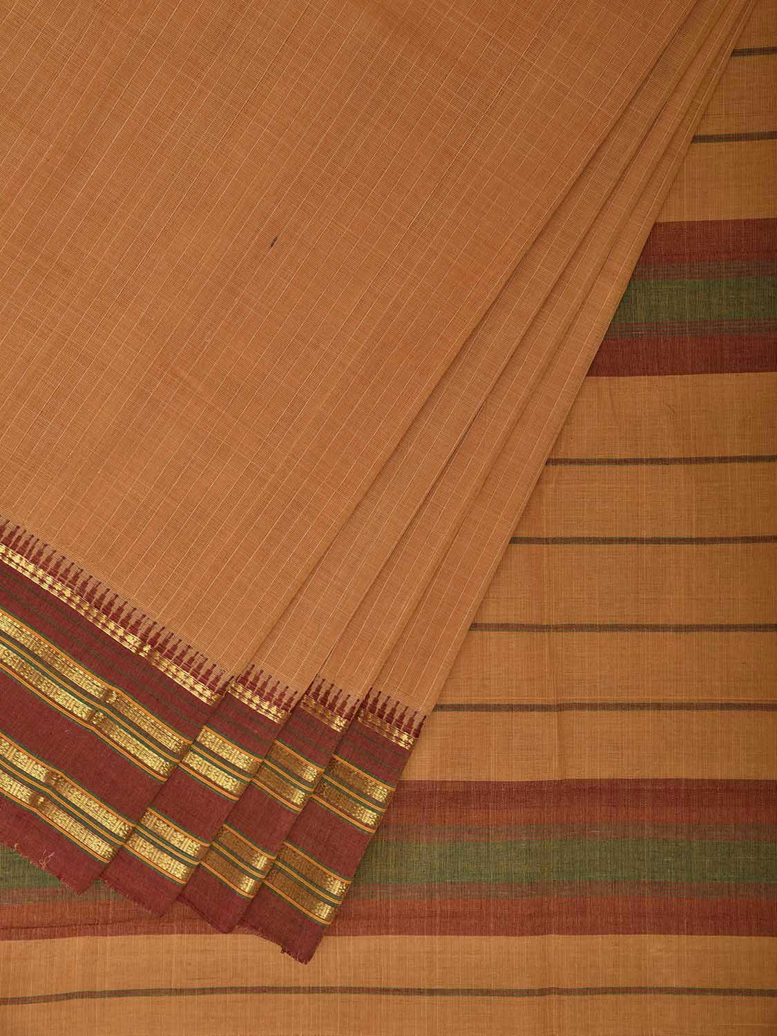Mustard Narayanpet Cotton Handloom Saree with Checks Design No Blouse.