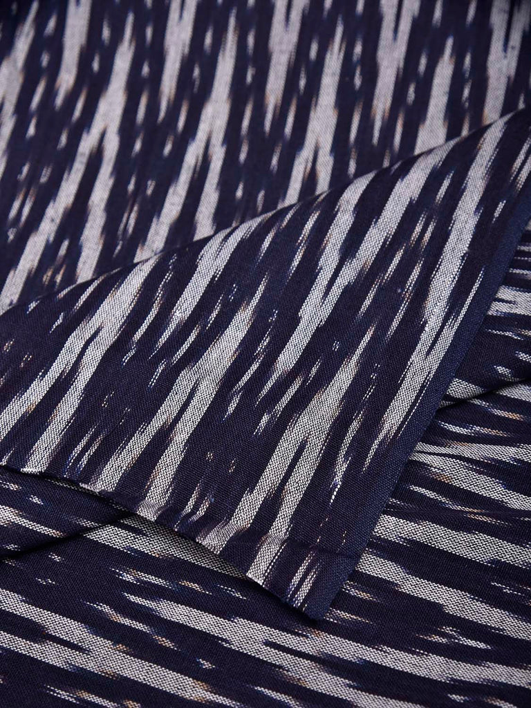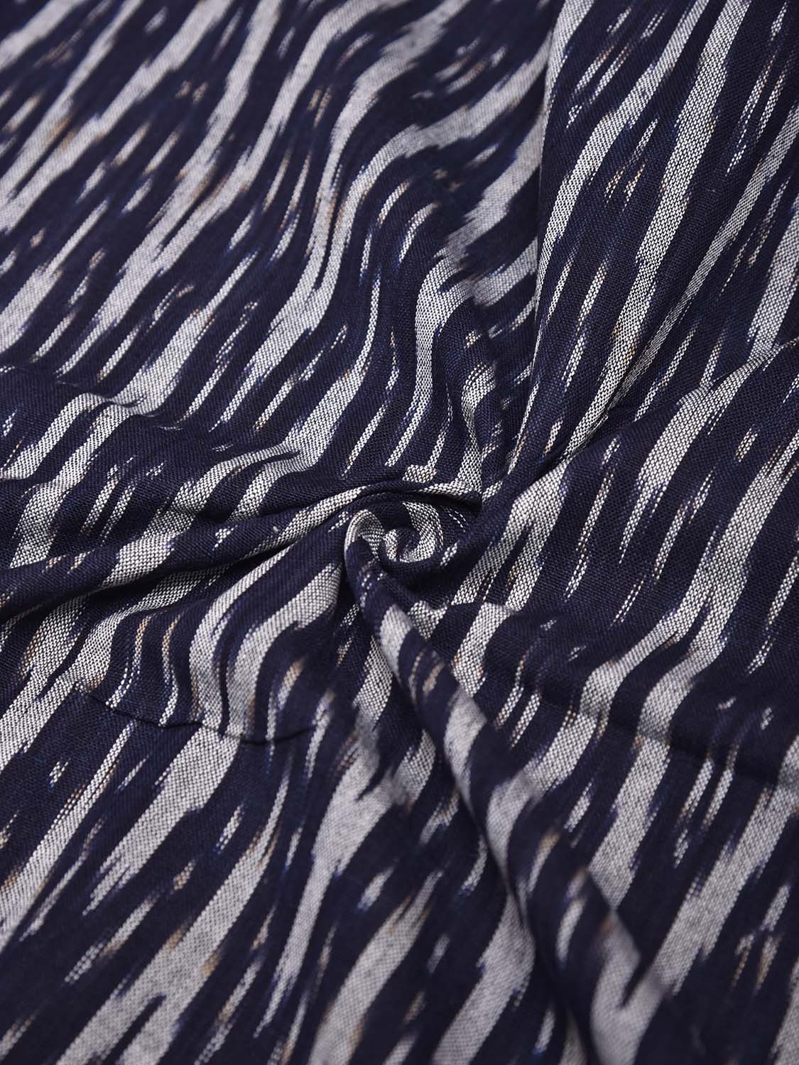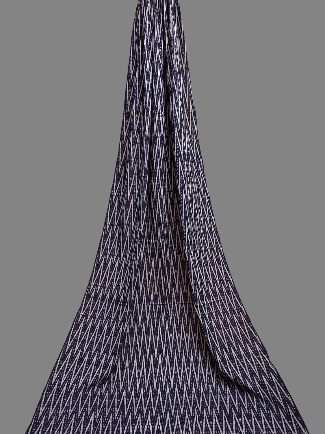Navy and Grey Pochampally Ikat Cotton 3mts Fabric with Zig-Zag Design. This Handloom Cotton Fabric from Andhra Pradesh has been woven using the resist-dyeing, which produces the unique patterns adorning the fabric. Fabric is 44 inches in width. The price mentioned is for Quantity 1 = 3 meters. For fabric care we advise gentle handwash separately.