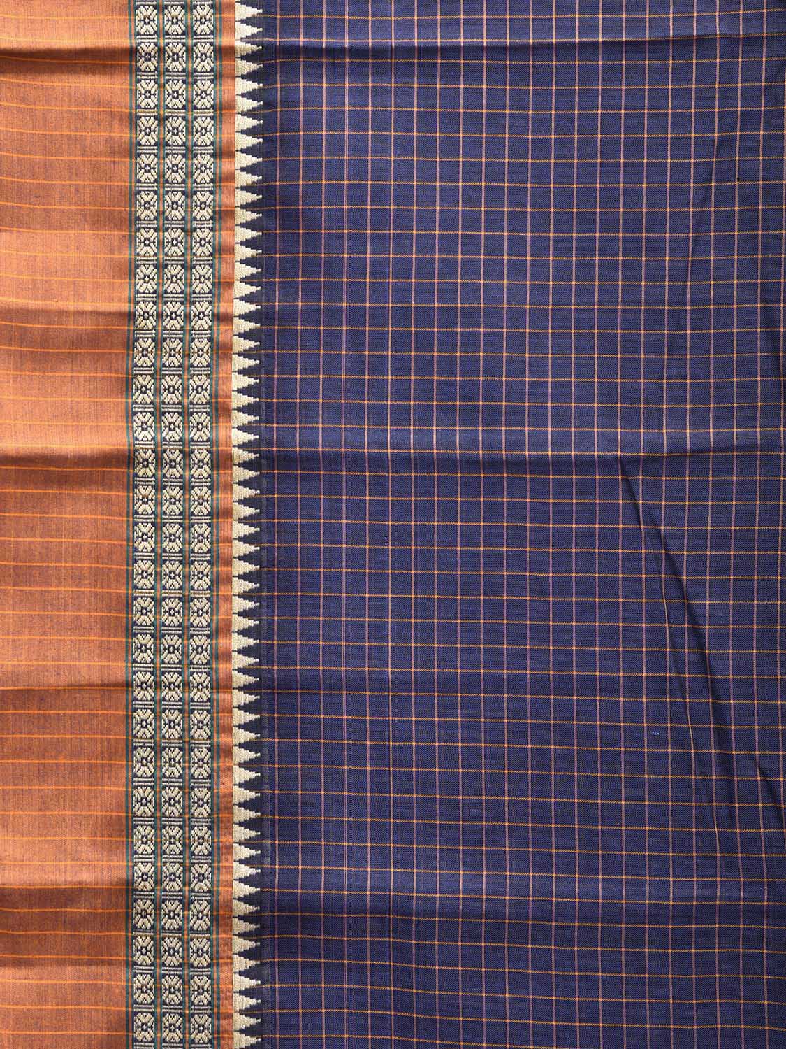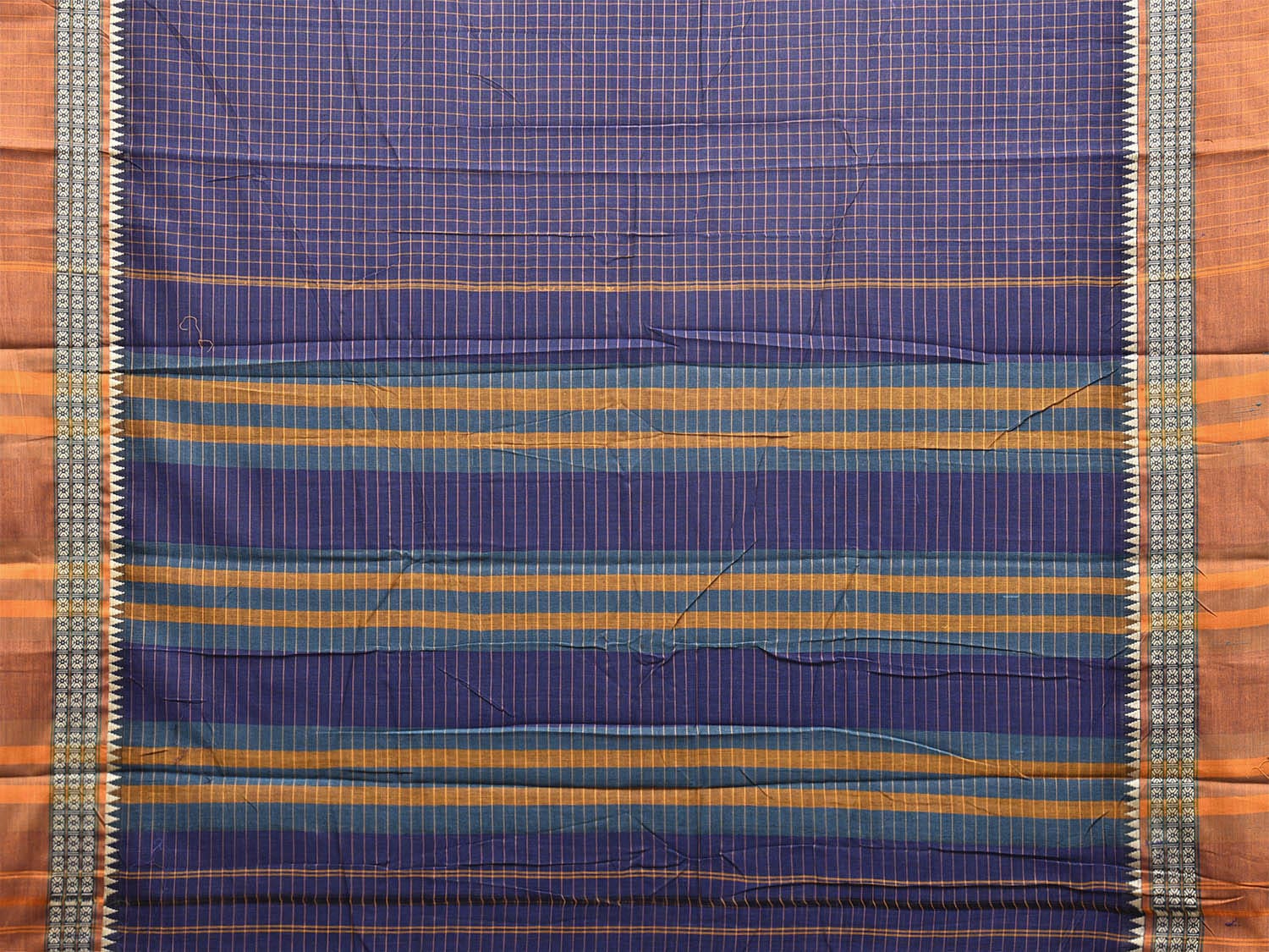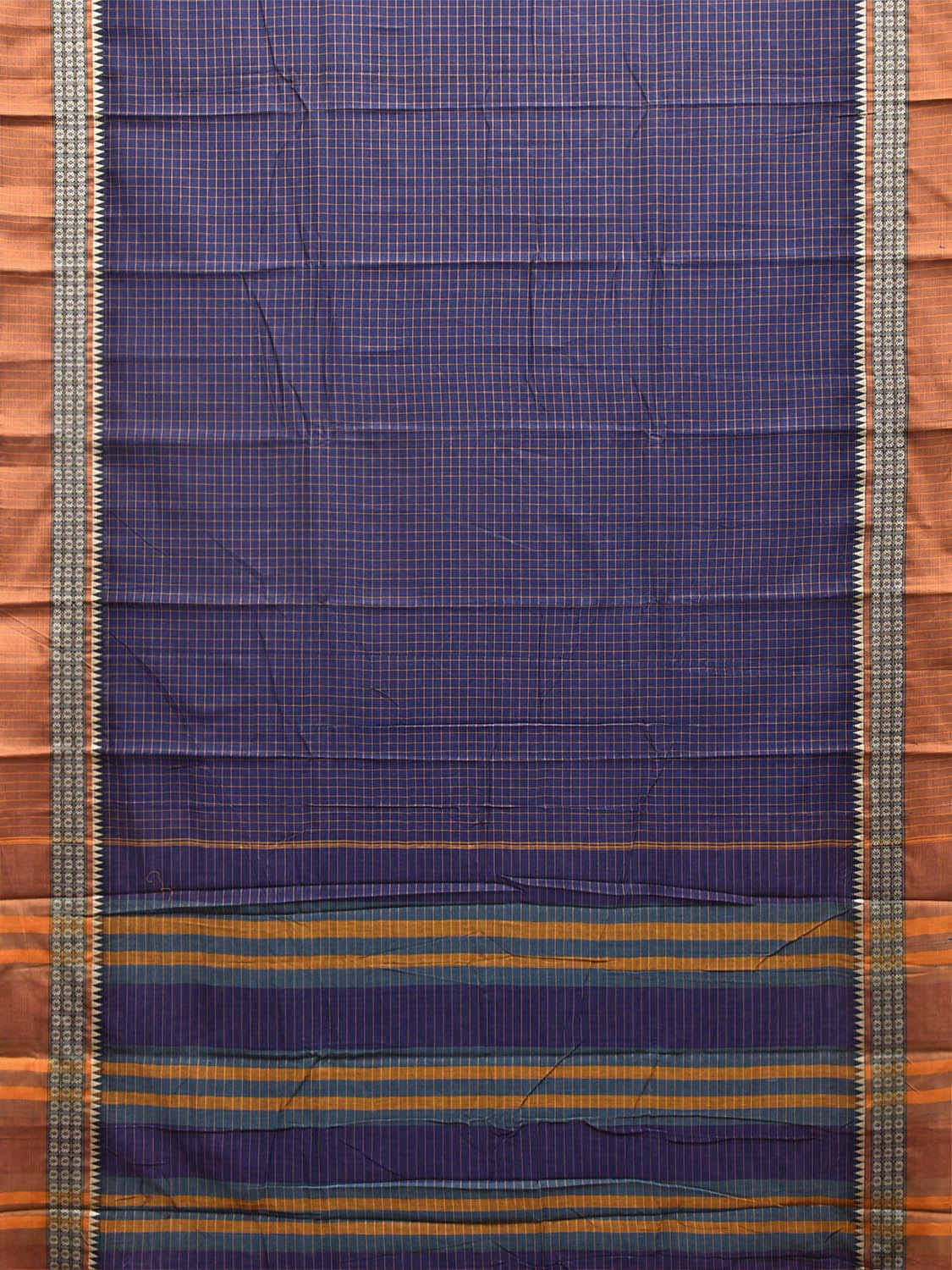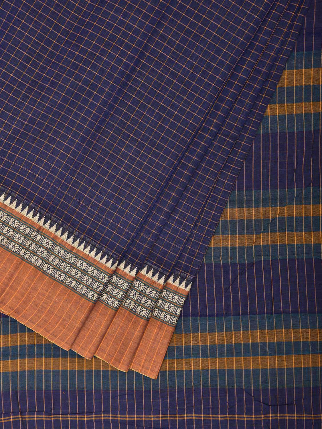 Navy and Mustard Narayanpet Cotton Saree with Checks Design No Blouse. This saree has no blouse.