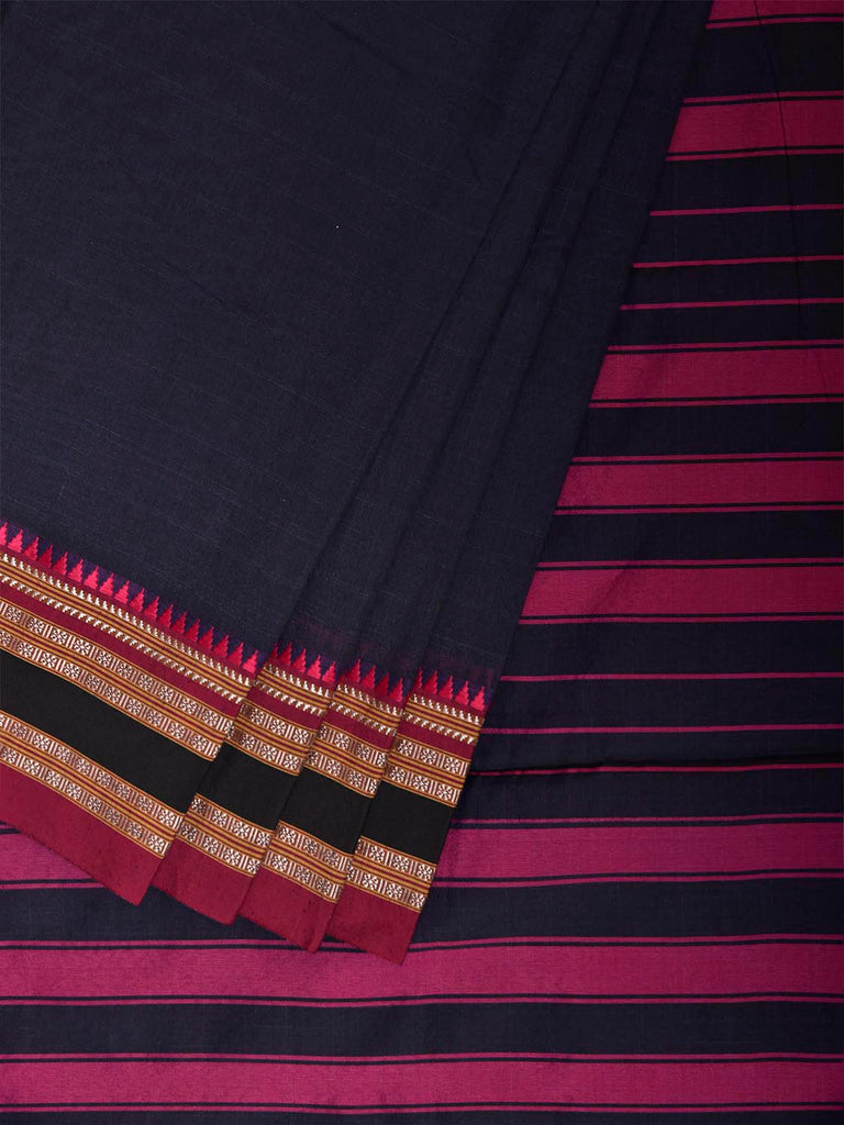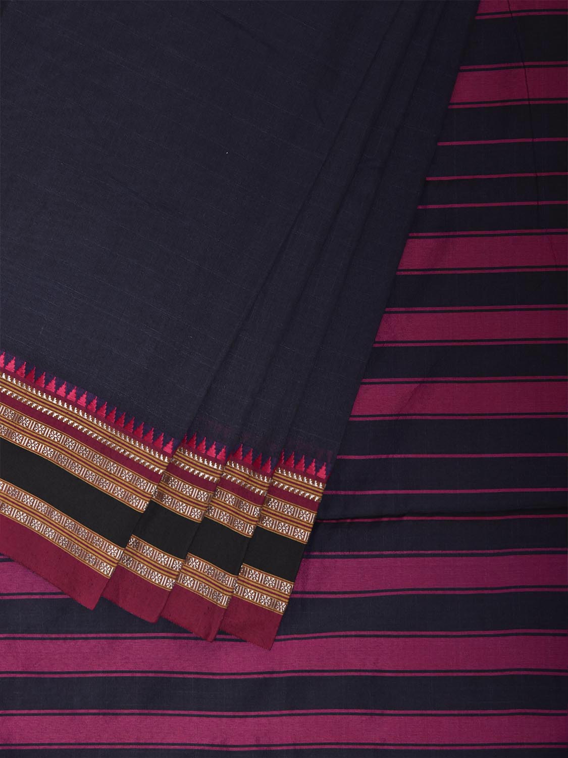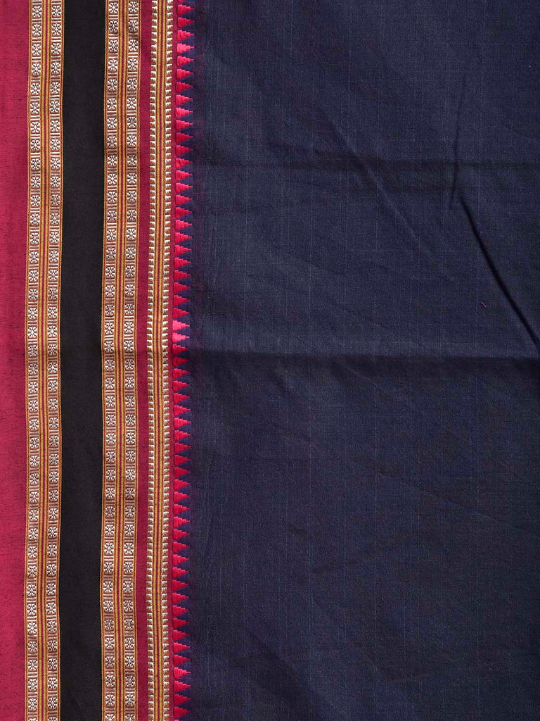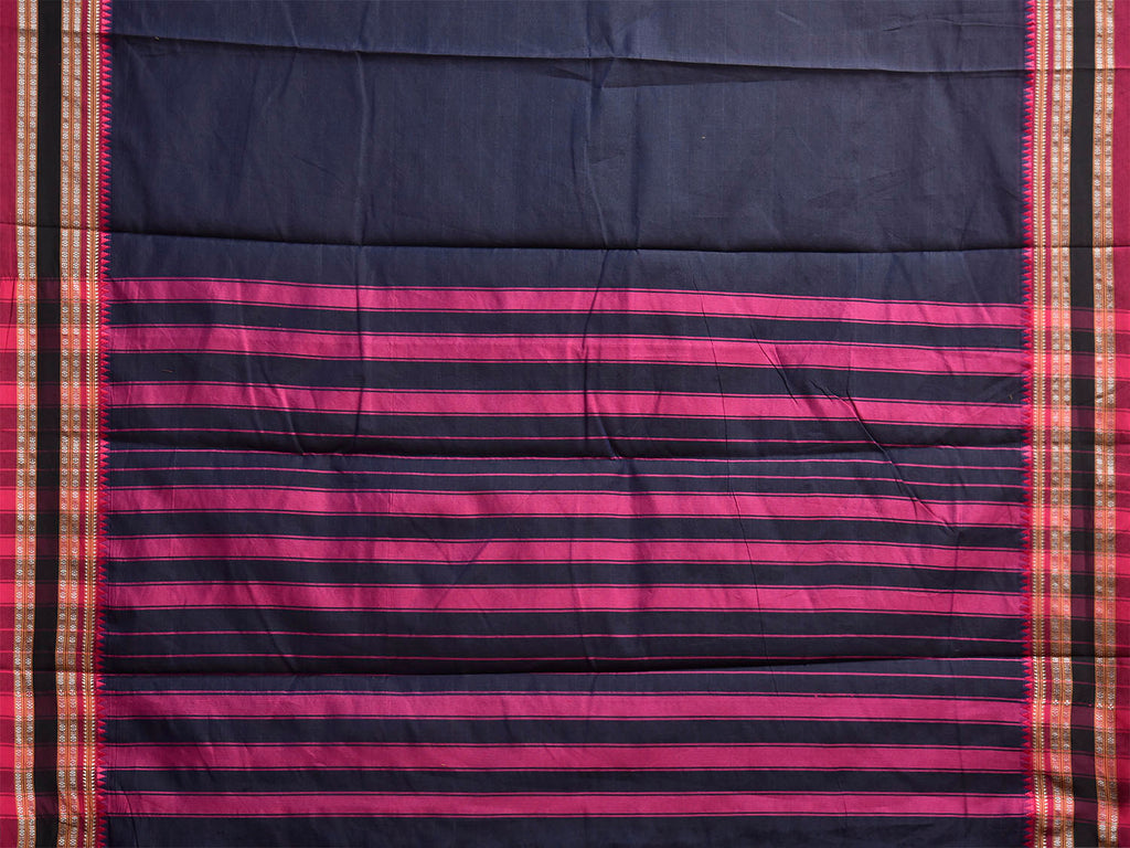 Navy and Pink Bamboo Cotton Plain Saree with Strips Pallu Design No Blouse. This is a blend of bamboo and cotton fibers, they have characteristics of both bamboo and cotton combined into one fabric. We Advise Gentle Handwash for Fabric Care. This saree has no blouse.