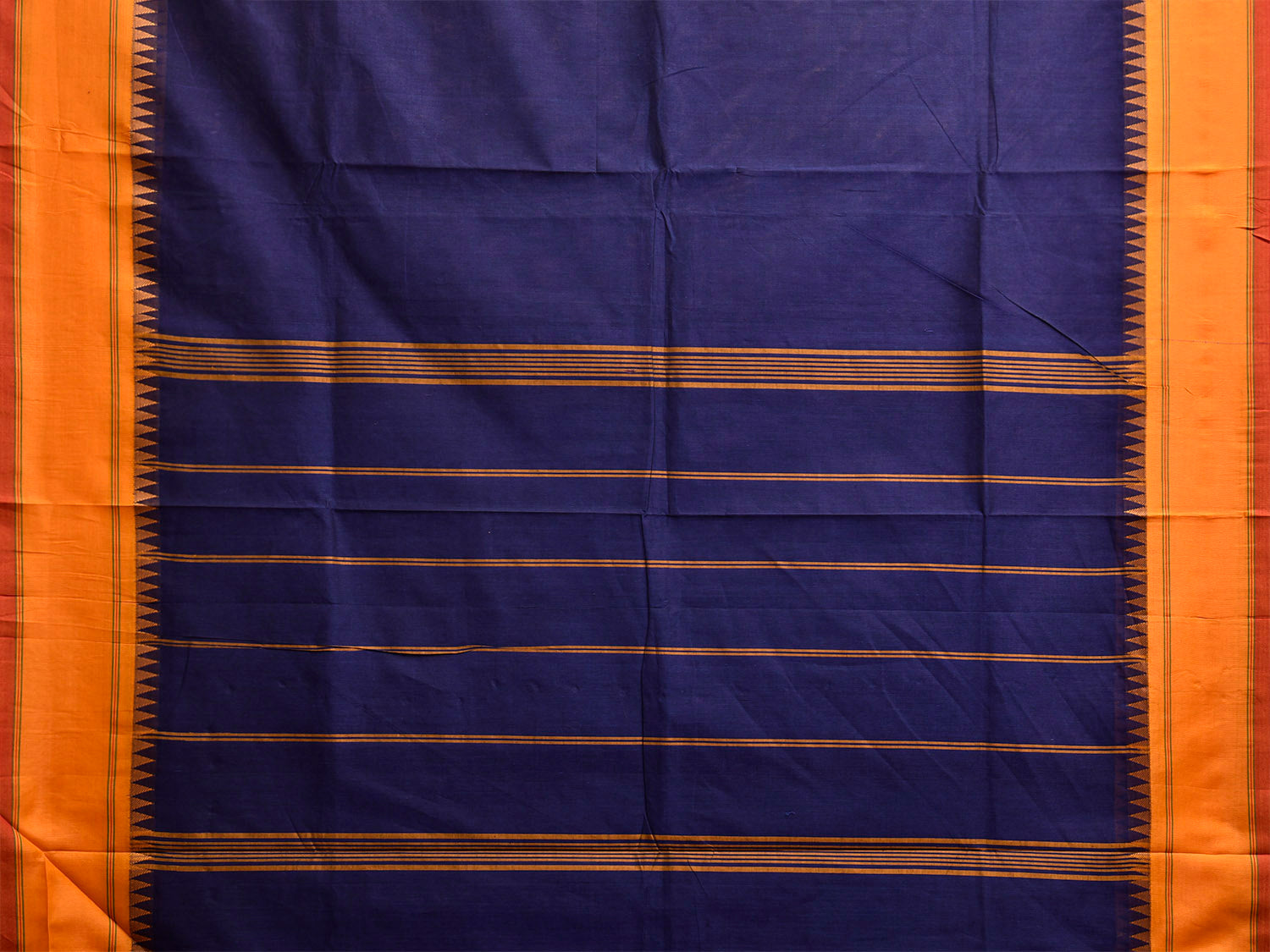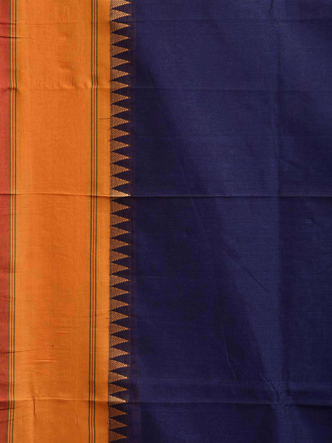 Navy and Yellow Kanchipuram Cotton Plain Saree with Strips Pallu Design. Traditional Simple South Indian Attire Saree for any Casual Occasions. As it’s a cotton saree we advice gentle handwash separately for fabric care.