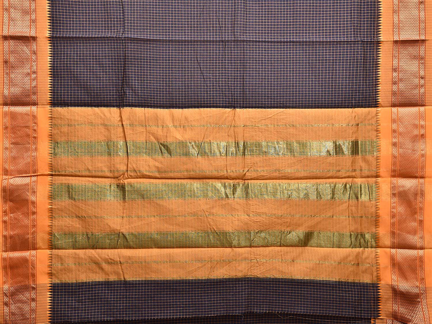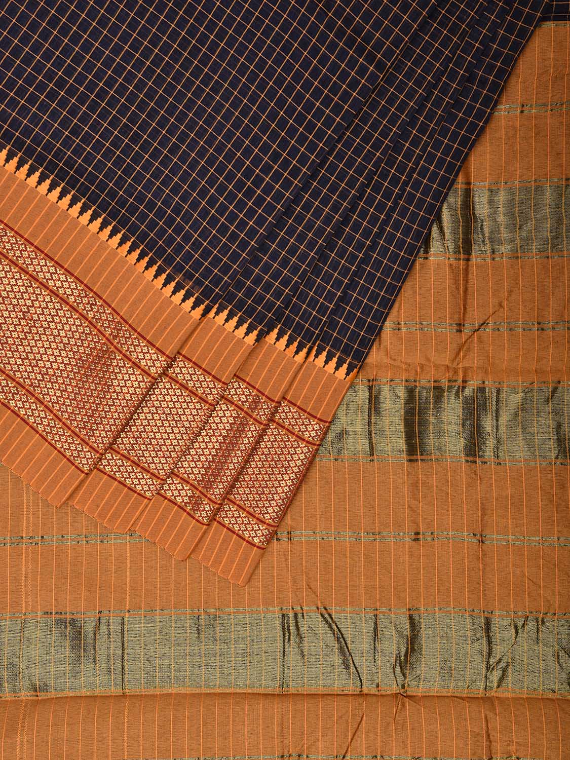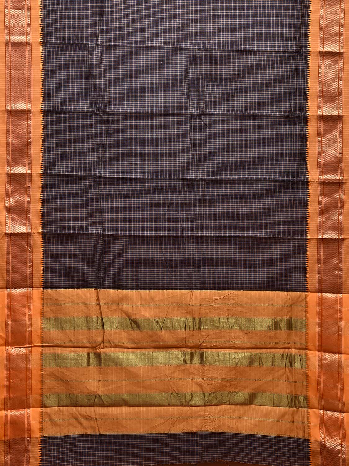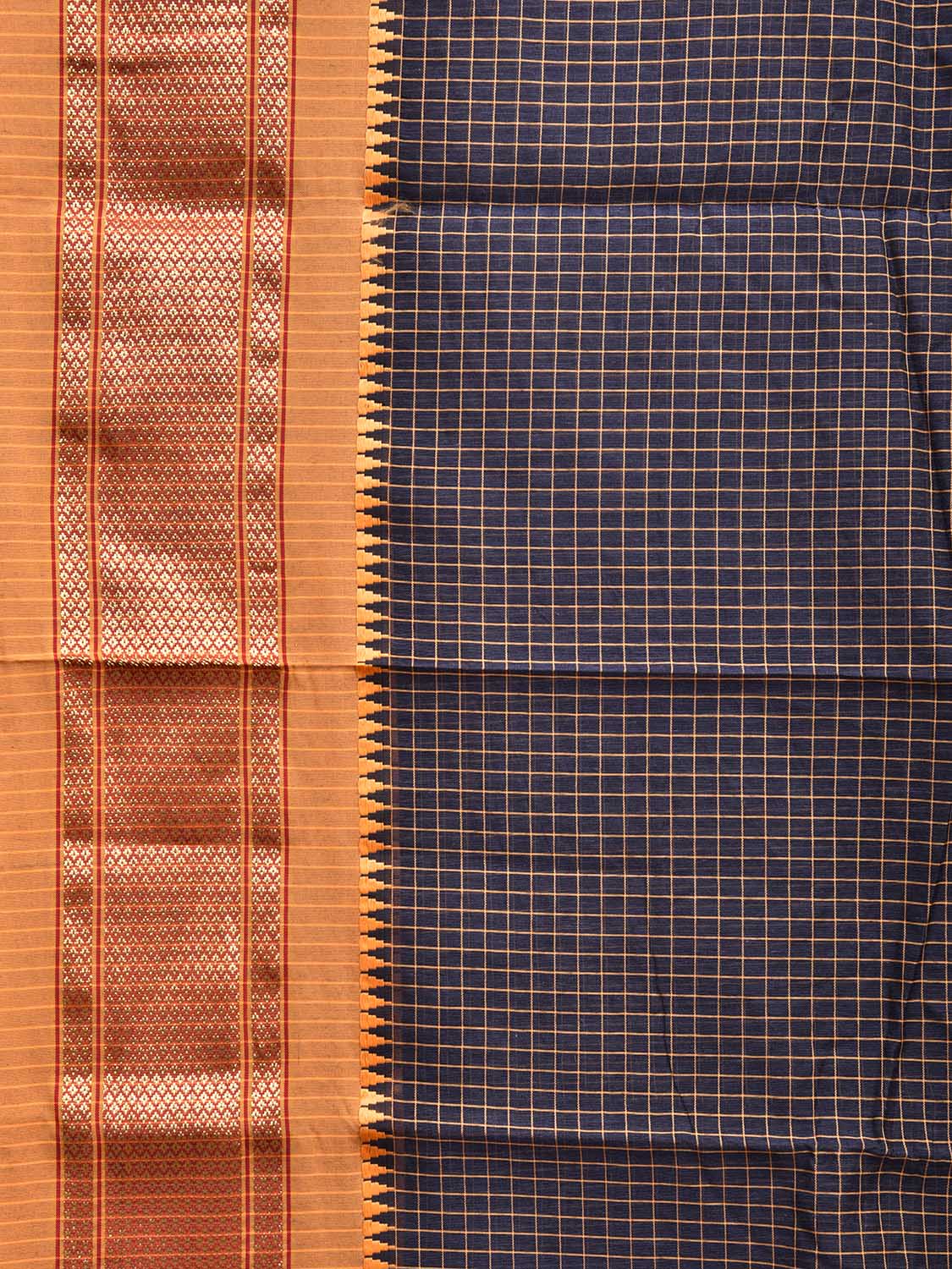 Navy Blue and Mustard Bamboo Cotton Saree with Checks Design and Narali Border No Blouse. This is a blend of bamboo and cotton fibers, they have characteristics of both bamboo and cotton combined into one fabric. We Advise Gentle Handwash for Fabric Care. This Saree has no Blouse.