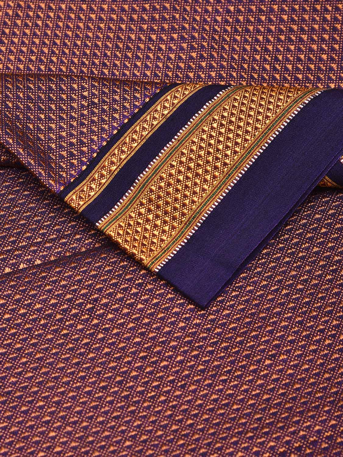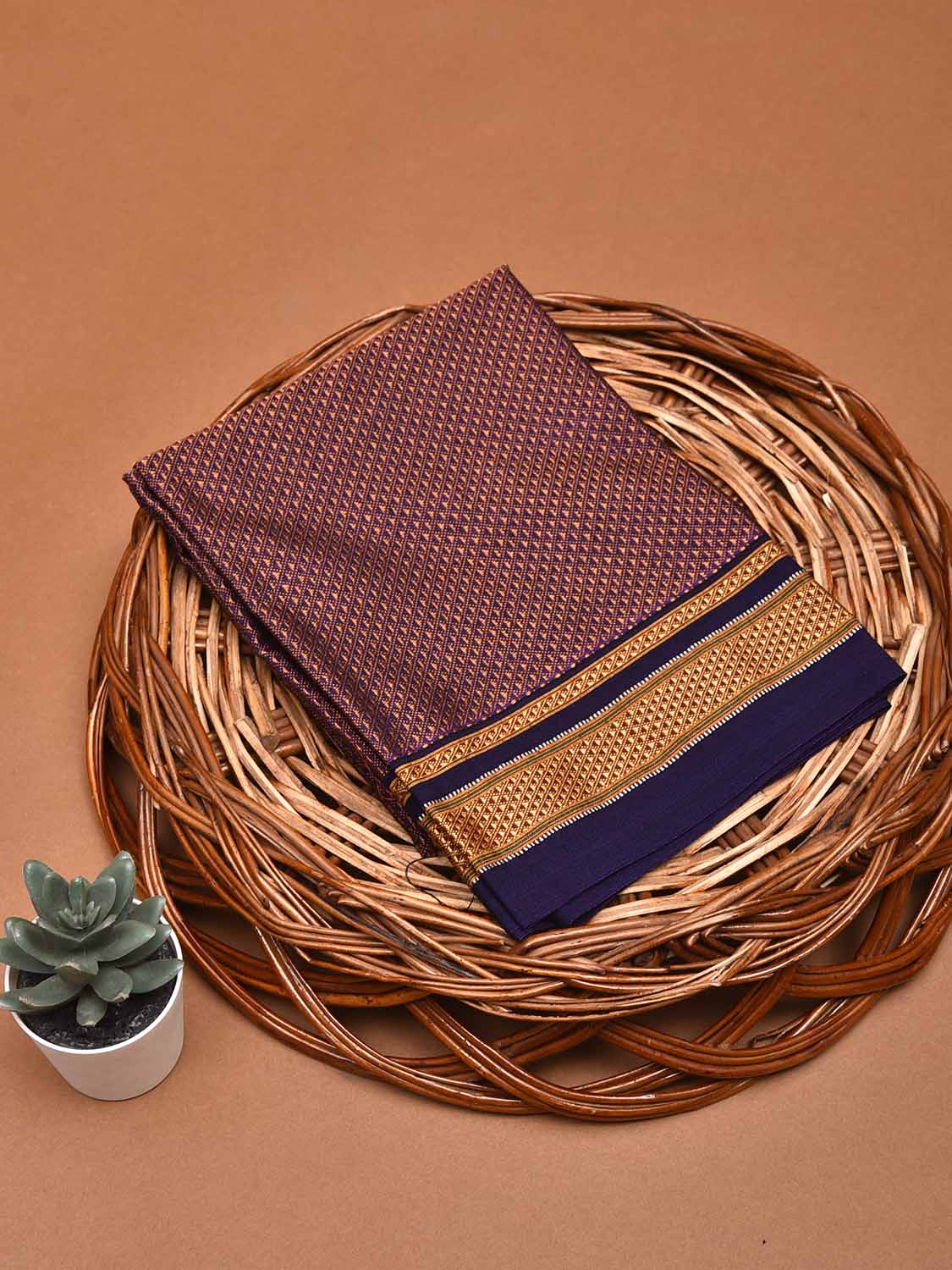 Navy Jacquard Viscose Blouse with Contrast Border Design Length 1mt Width 31 Inches. Beautiful Pattern Blouse Fabric and Easy to Match to Any Suitable Saree. We Advise Gentle Handwash for Fabric Care.