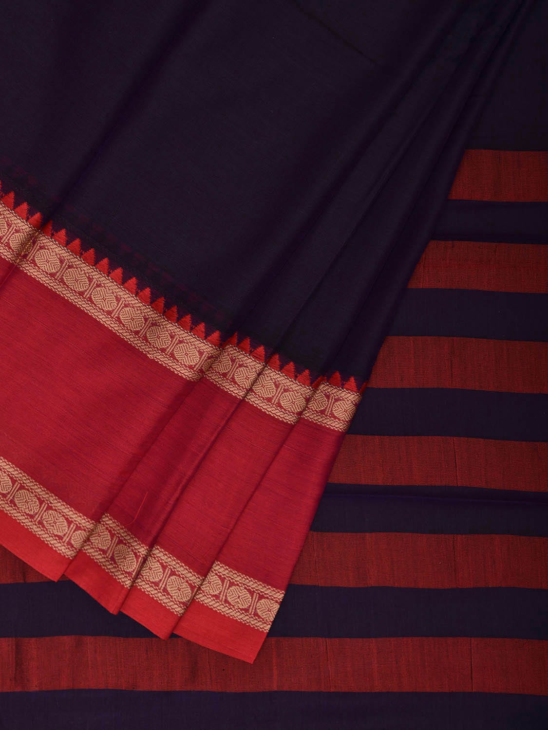 Navy Kanchipuram Cotton Saree with Ganga-Jamuna Border Design. Traditional Simple South Indian Attire Saree for any Casual Occasions. As it’s a cotton saree we advice gentle handwash separately for fabric care.