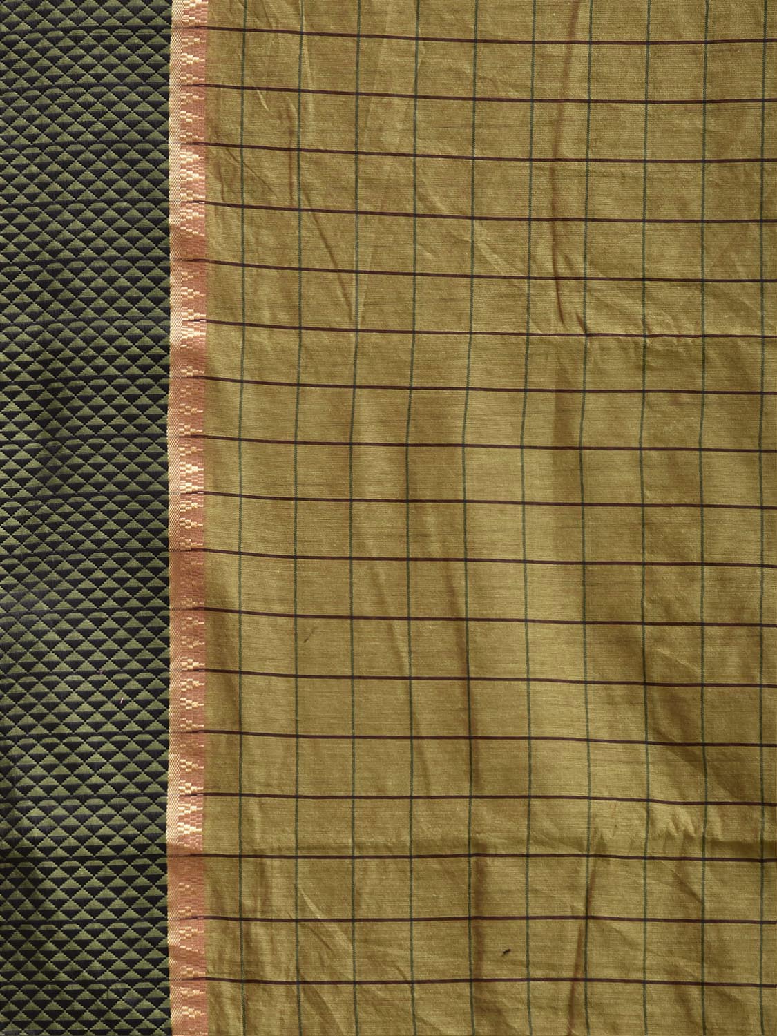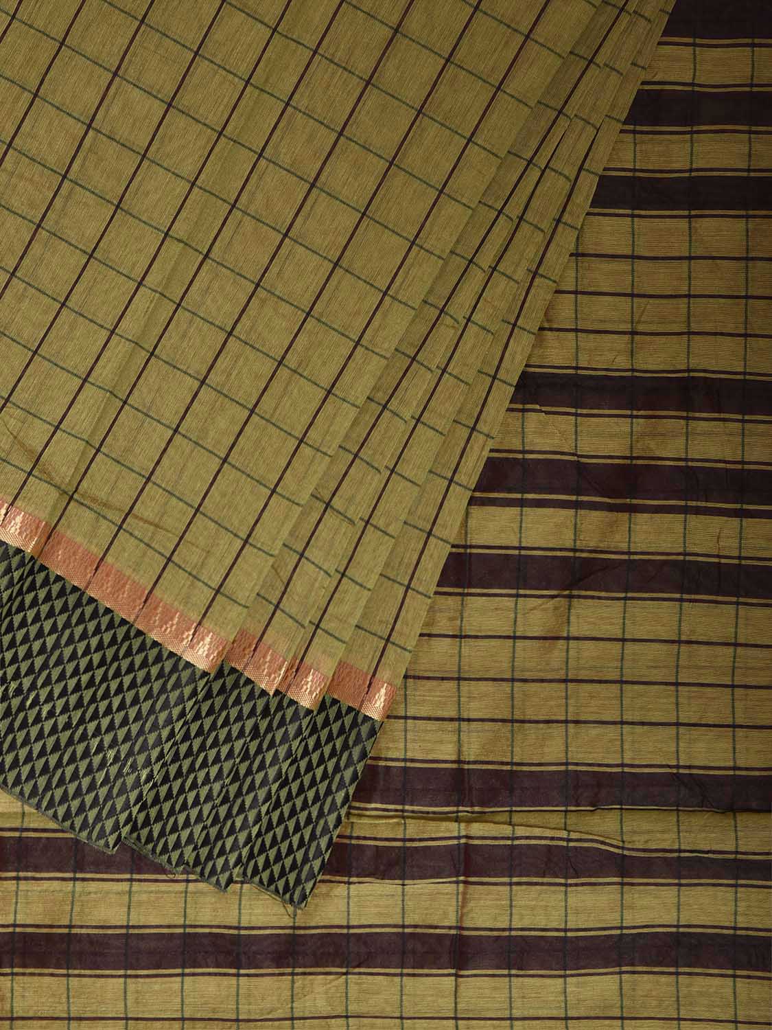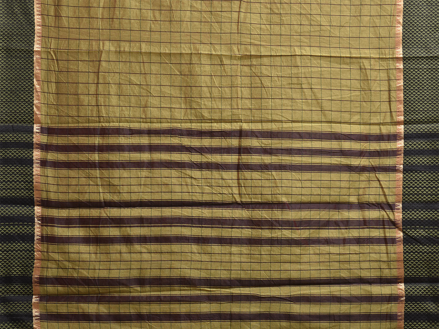 Olive and Brown Bamboo Cotton Saree with Big Checks Design No Blouse. This is a blend of bamboo and cotton fibers, they have characteristics of both bamboo and cotton combined into one fabric. We Advise Gentle Handwash for Fabric Care. This saree has no blouse.