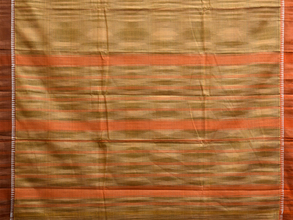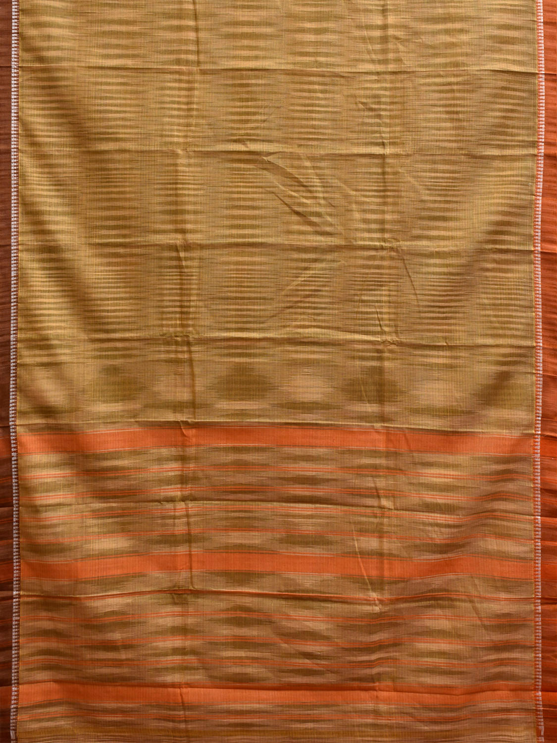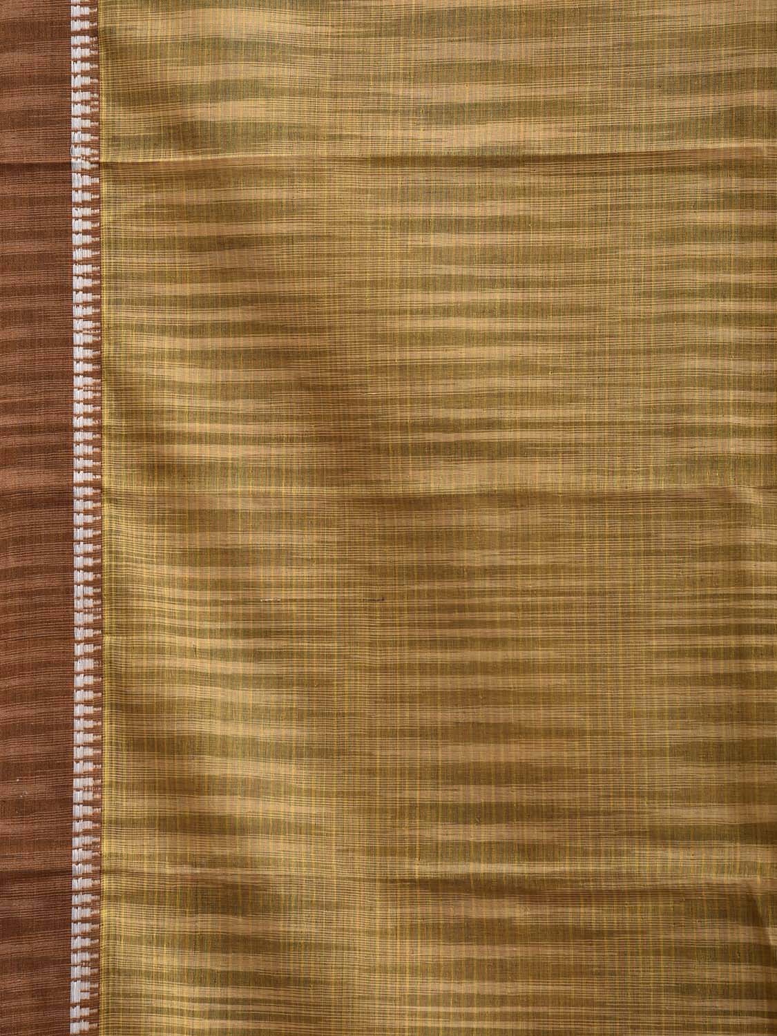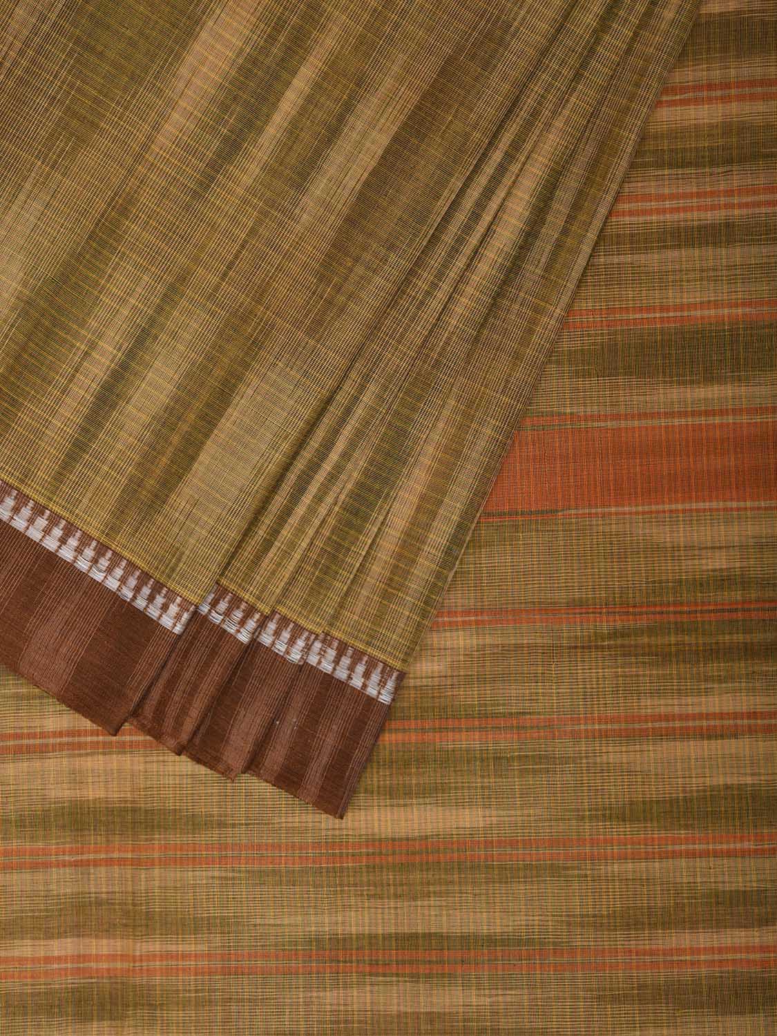 Olive and Cream Narayanpet Cotton Handloom Saree with Strips Pallu Design No Blouse. This saree has no blouse.