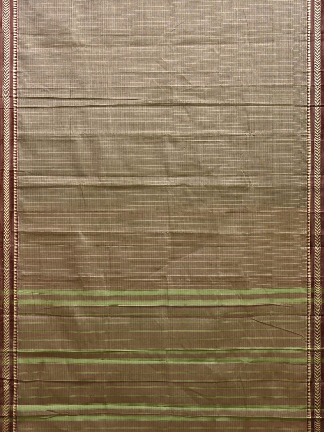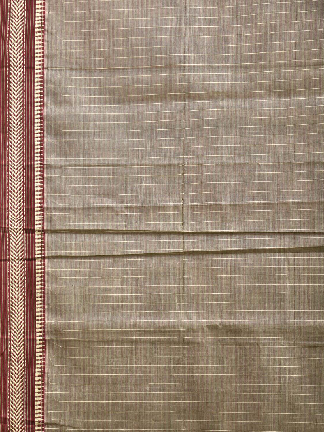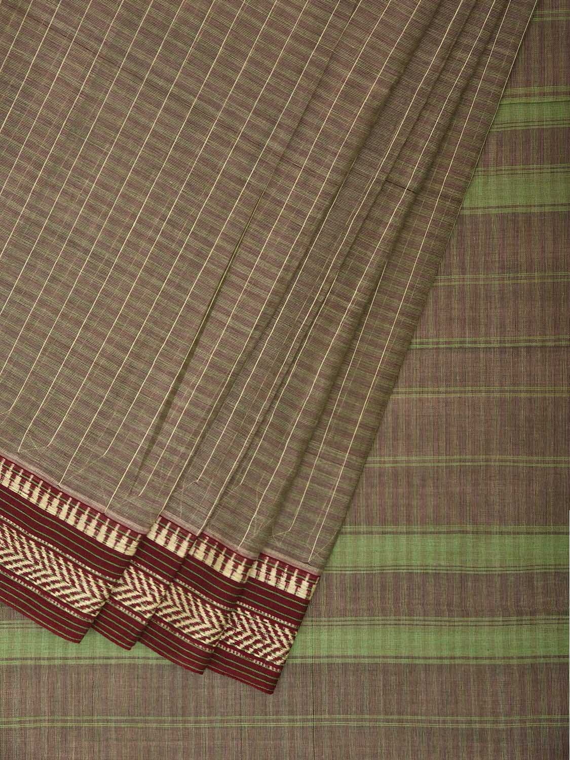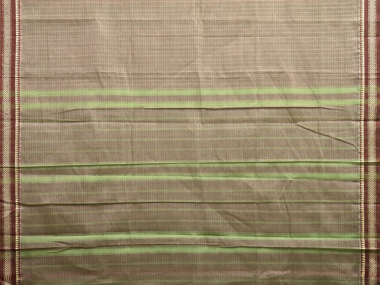 Olive and Green Narayanpet Cotton Handloom Saree with Strips Pallu Design No Blouse.