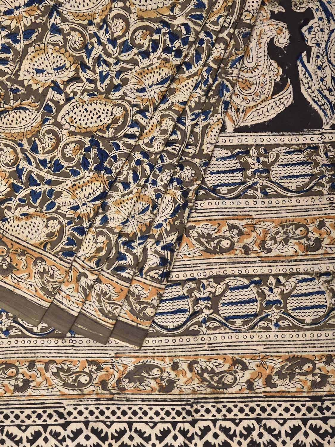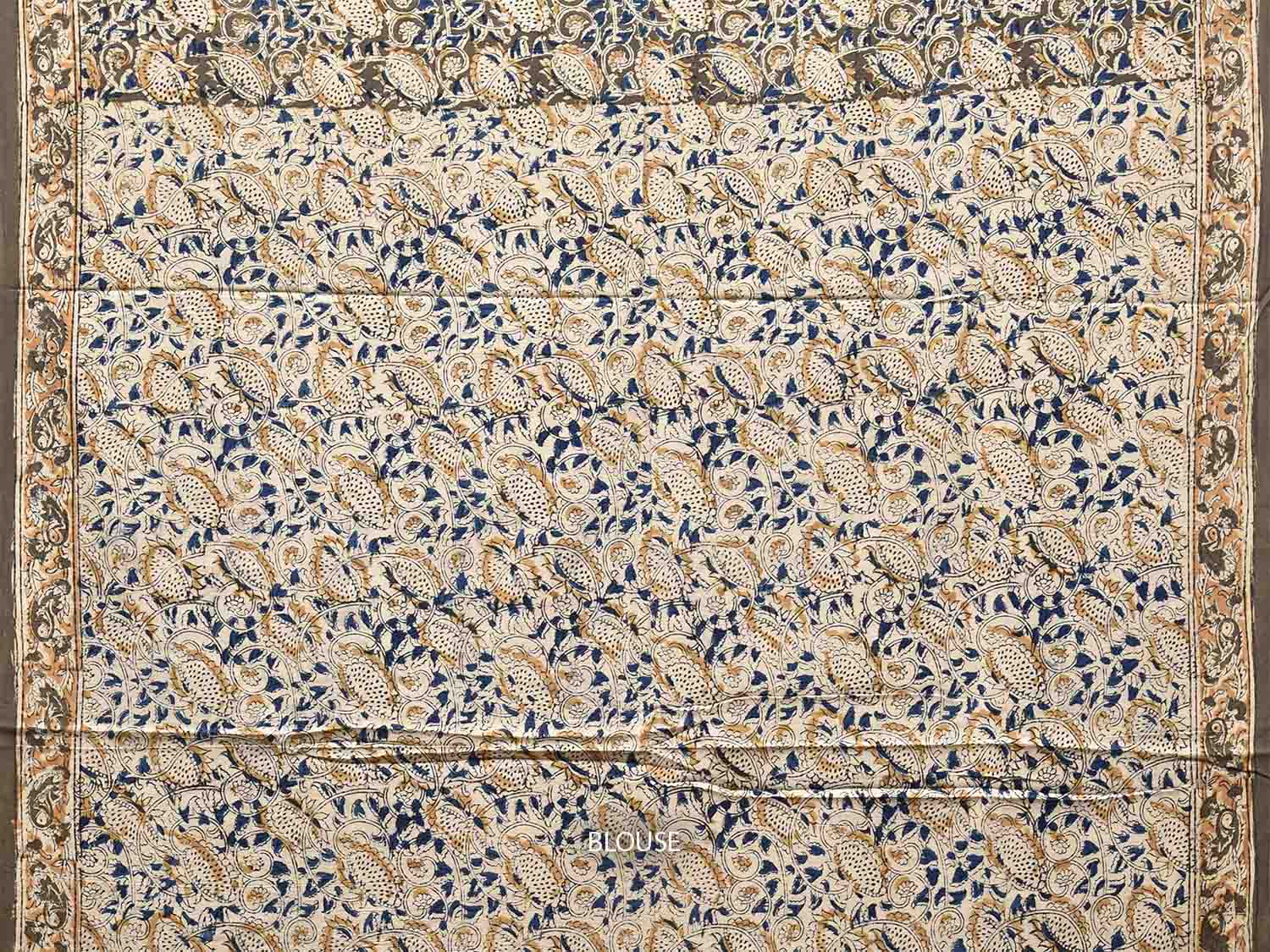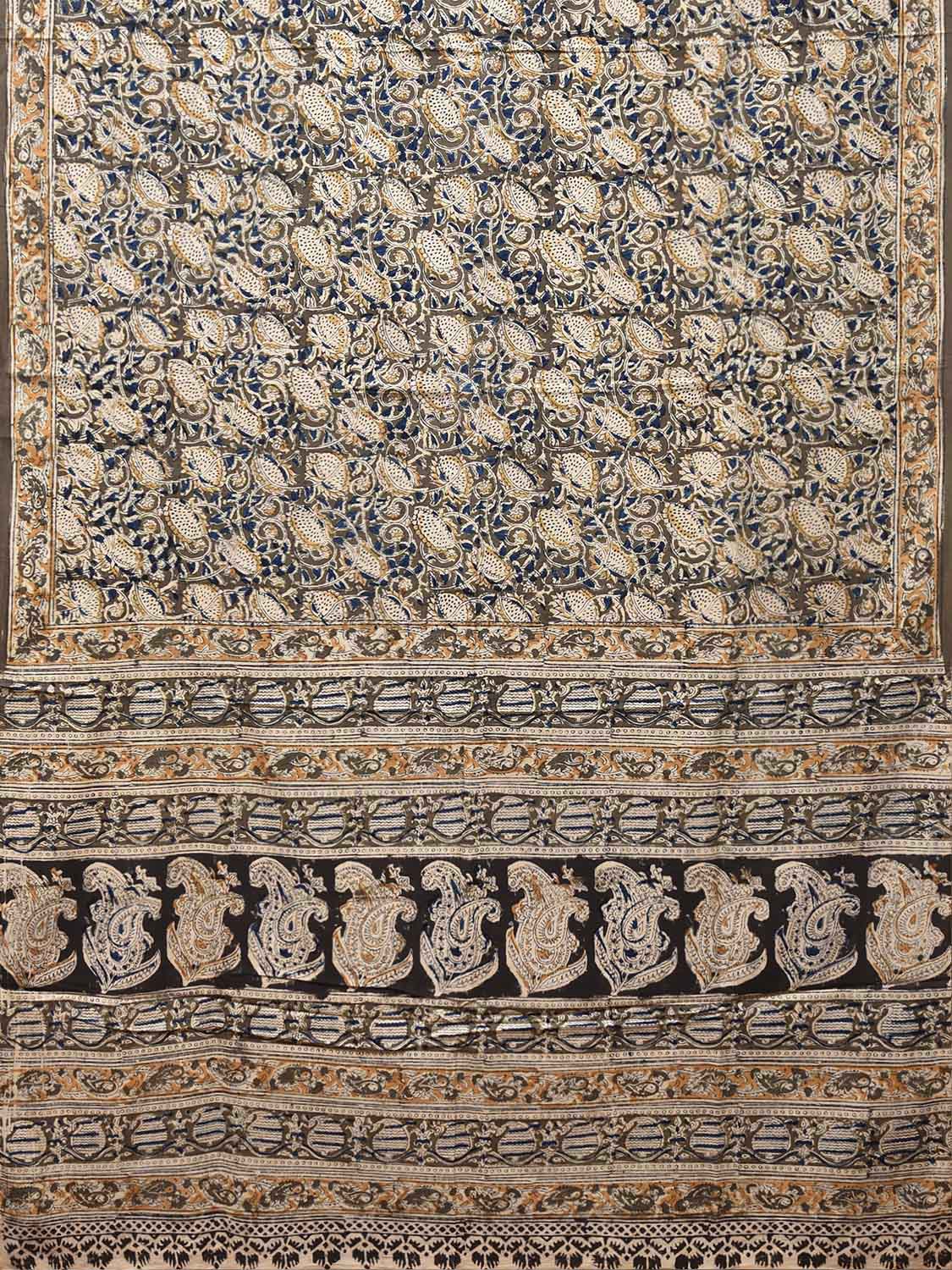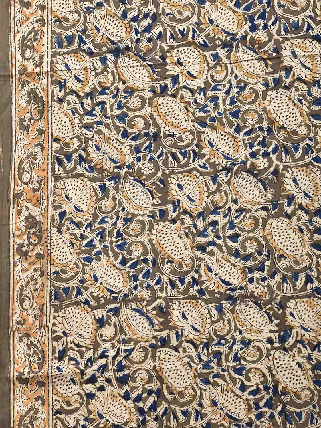 Olive Kalamkari Block Print Cotton Saree with All Over Floral and Pasley Pallu Design. This is block print kalamkari done using natural dyes. As they are natural colors they bleed with initial washes, so we suggest Dry clean.