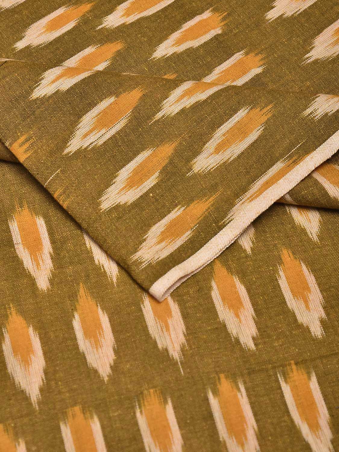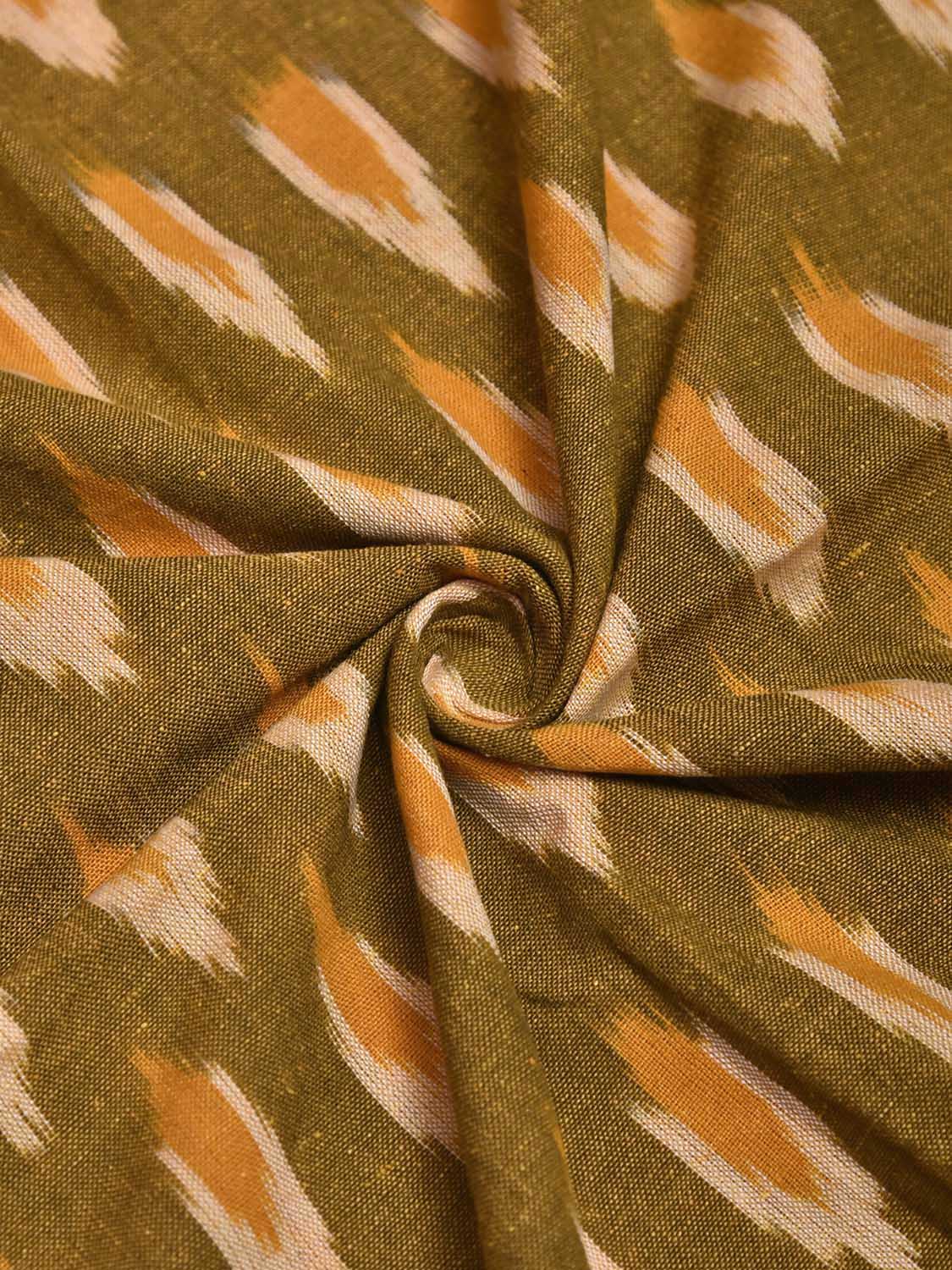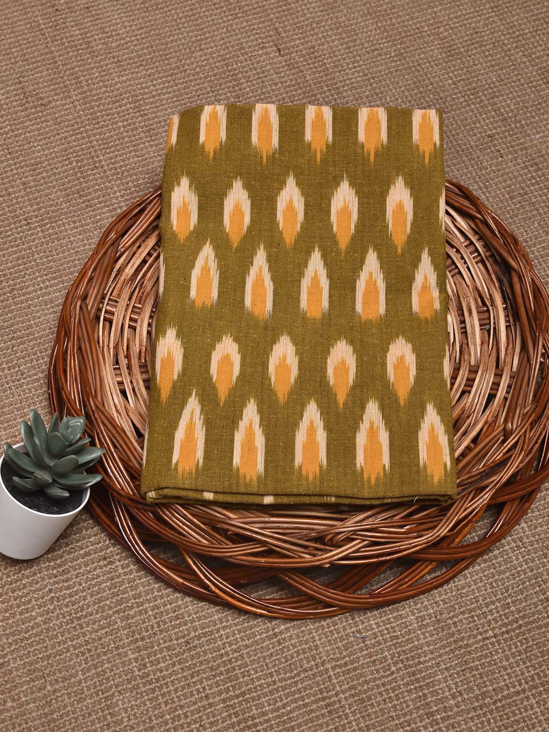Olive Pochampally Ikat Cotton Handloom Blouse with All Over Buta Design Length 1mt Width 44 Inches. This fabric is from Andhra Pradesh has been woven using the resist-dyeing, which produces the unique patterns adorning the fabric. We advise gentle handwash separately for fabric care.