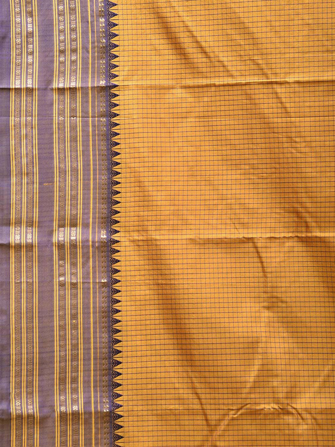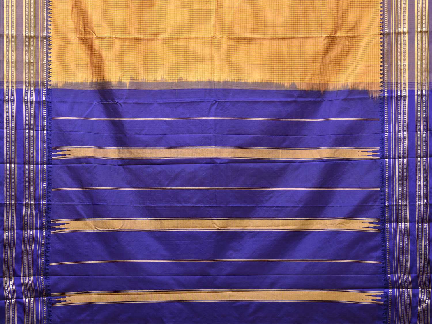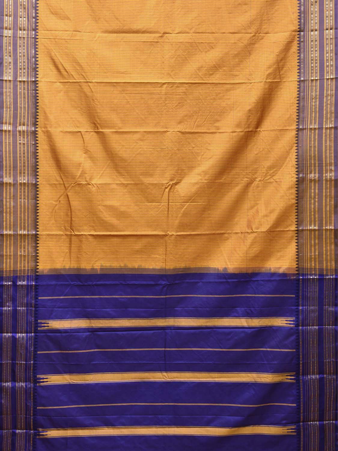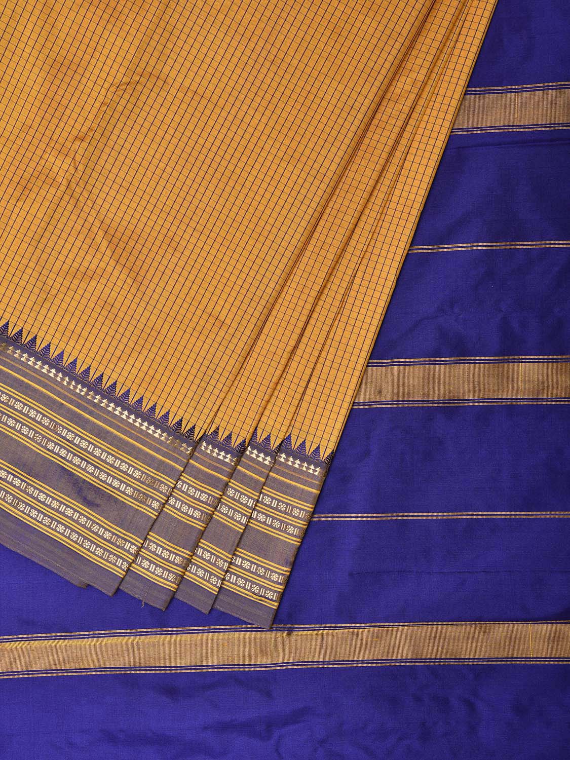 Orange and Dark Blue Narayanpet Pure Silk Saree with Buta and Pallu Design.