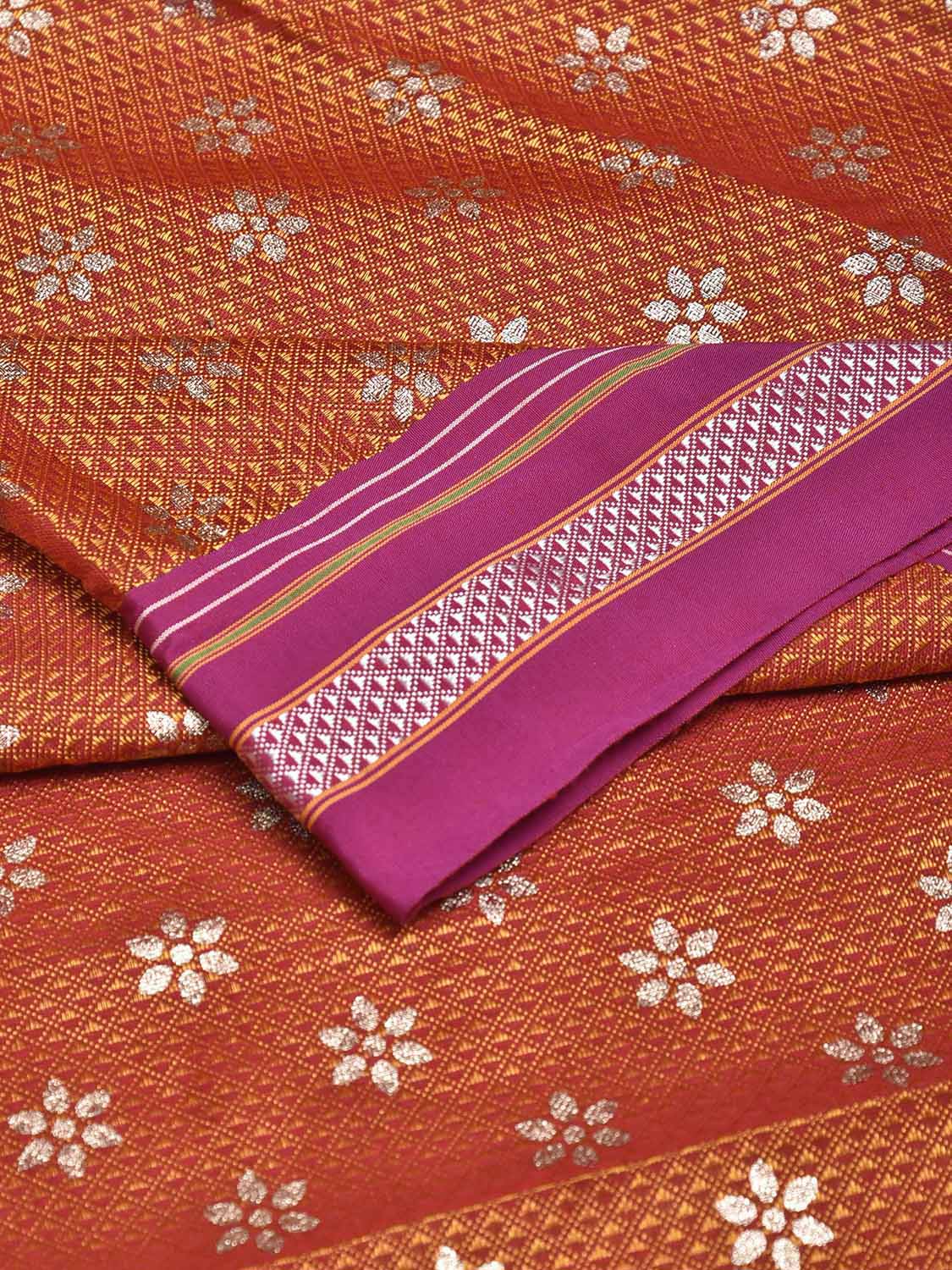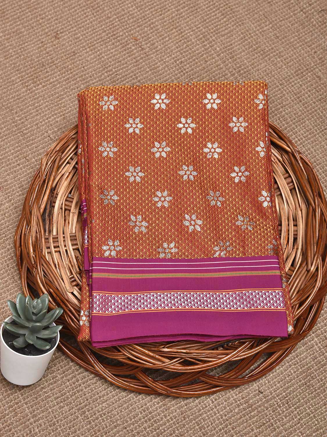 Orange and Pink Jacquard Viscose Blouse with Floral Print Design Length 1mt Width 31 Inches. Beautiful Pattern Blouse Fabric and Easy to Match to Any Suitable Saree. We Advise Gentle Handwash for Fabric Care.