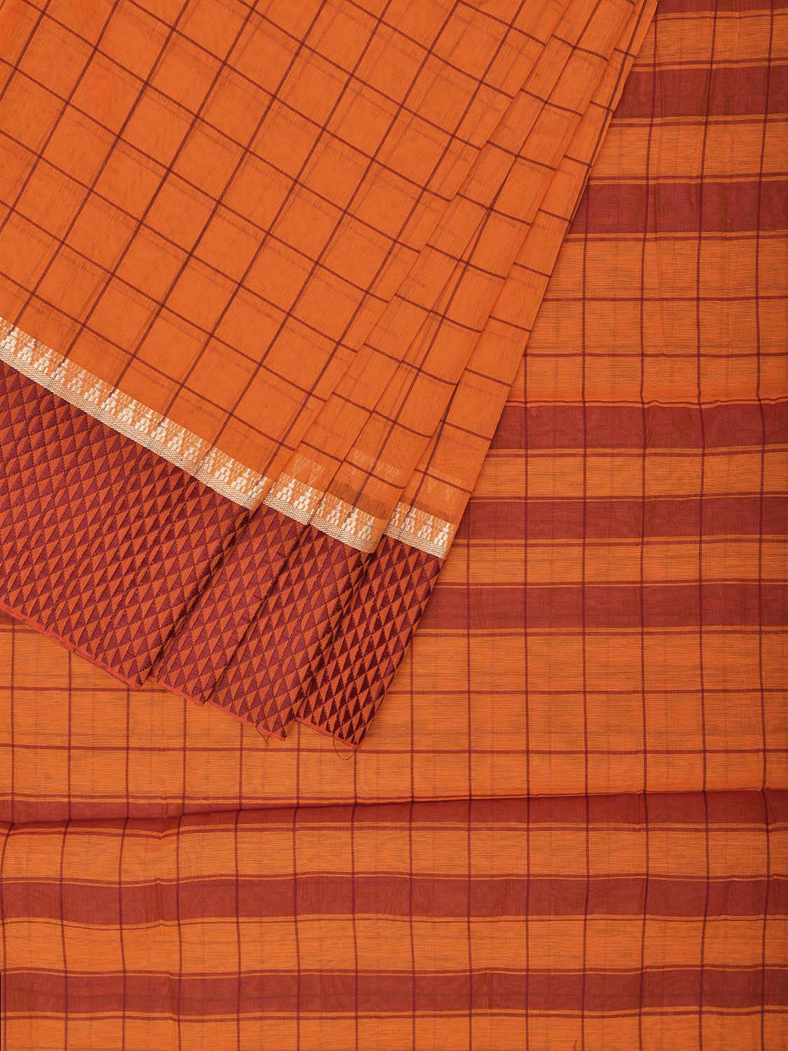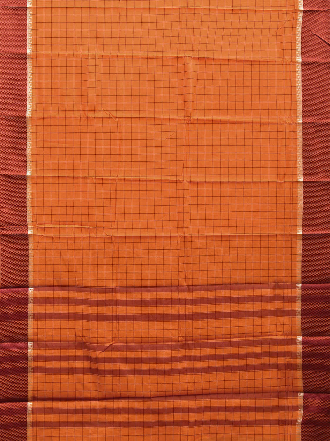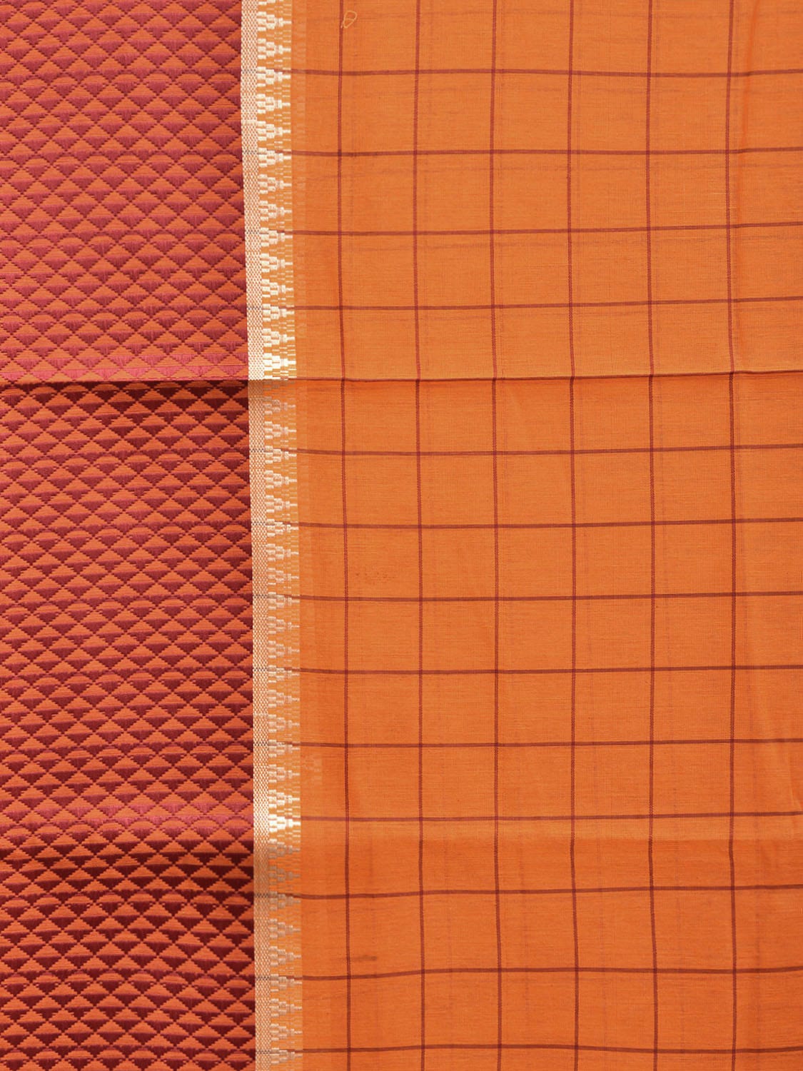 Orange and Red Bamboo Cotton Saree with Big Checks Design No Blouse. This is a blend of bamboo and cotton fibers, they have characteristics of both bamboo and cotton combined into one fabric. We Advise Gentle Handwash for Fabric Care. This Saree has no Blouse.