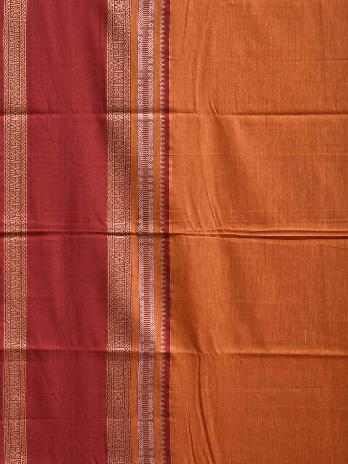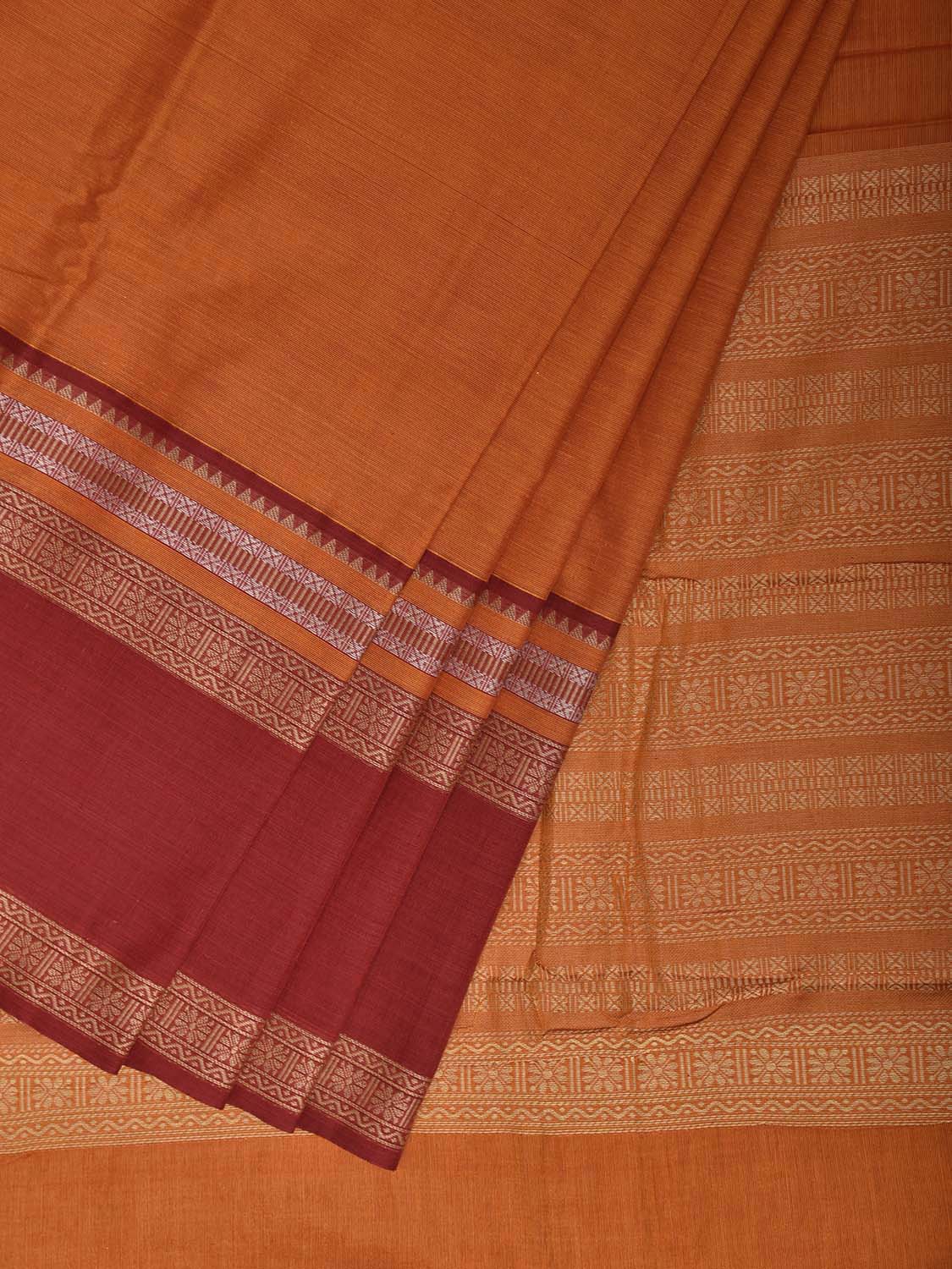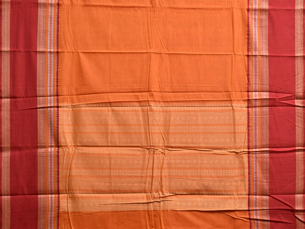Orange and Red Cotton Viscose Plain Saree with Pallu and Border Design. For fabric care we advise gentle handwash separately.