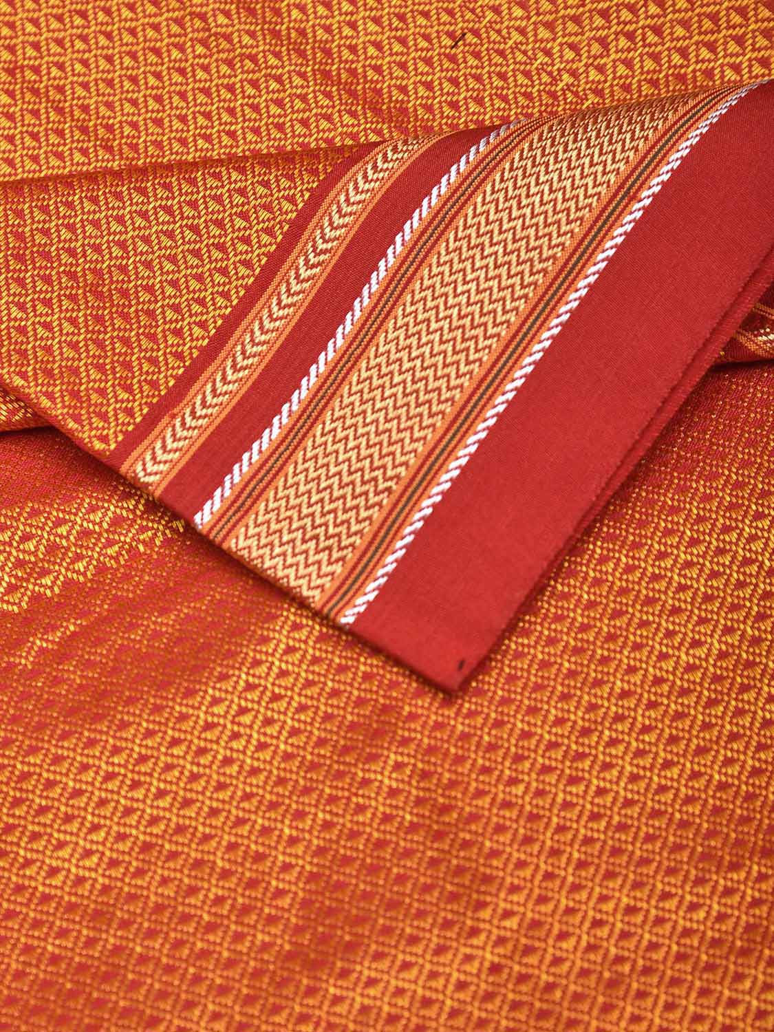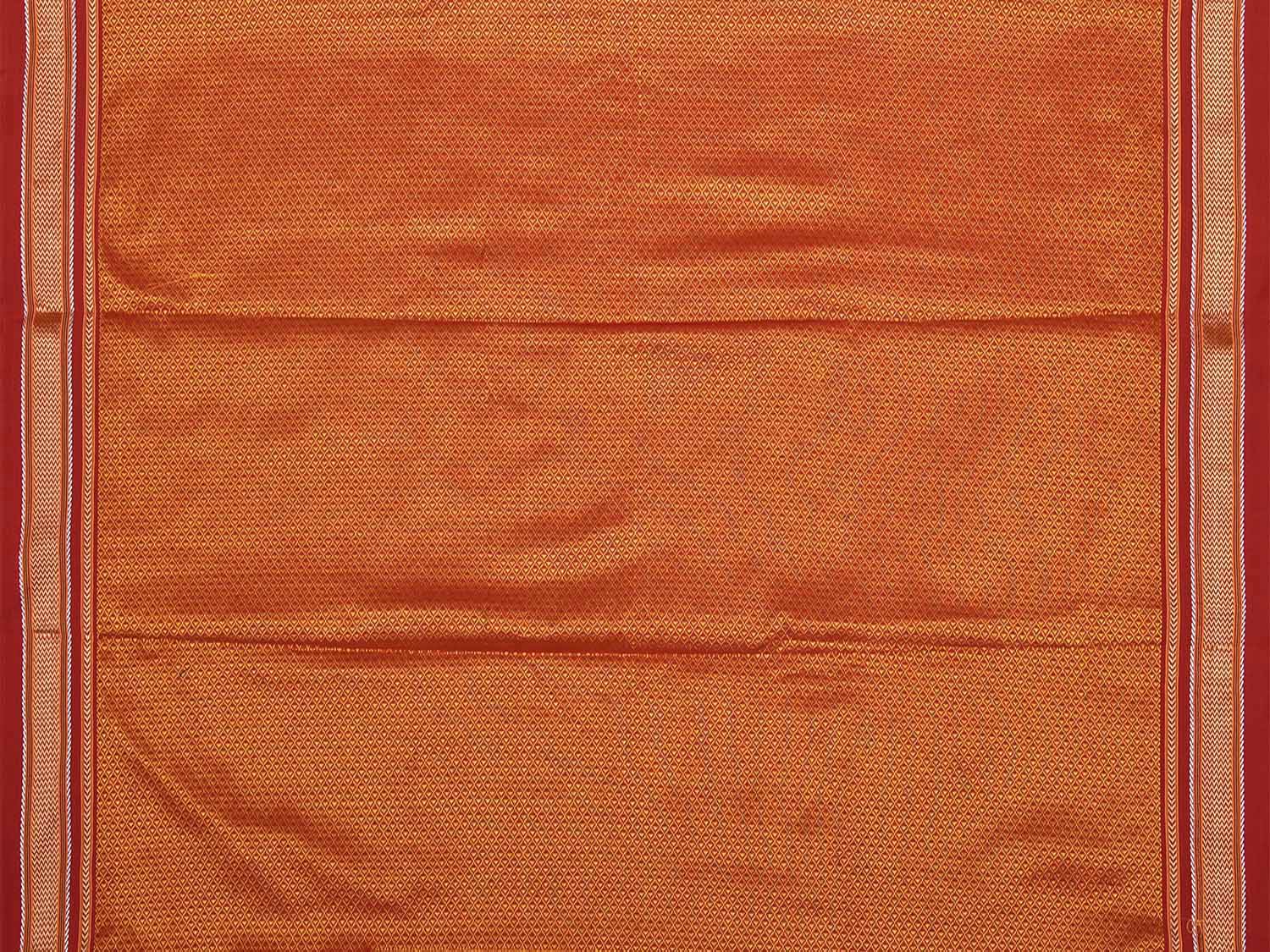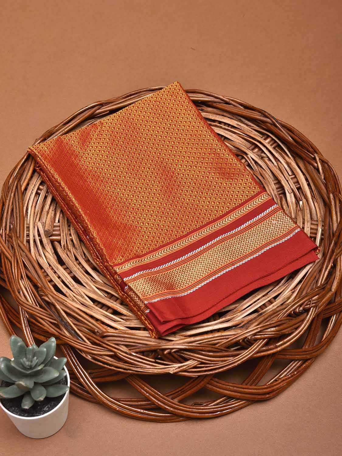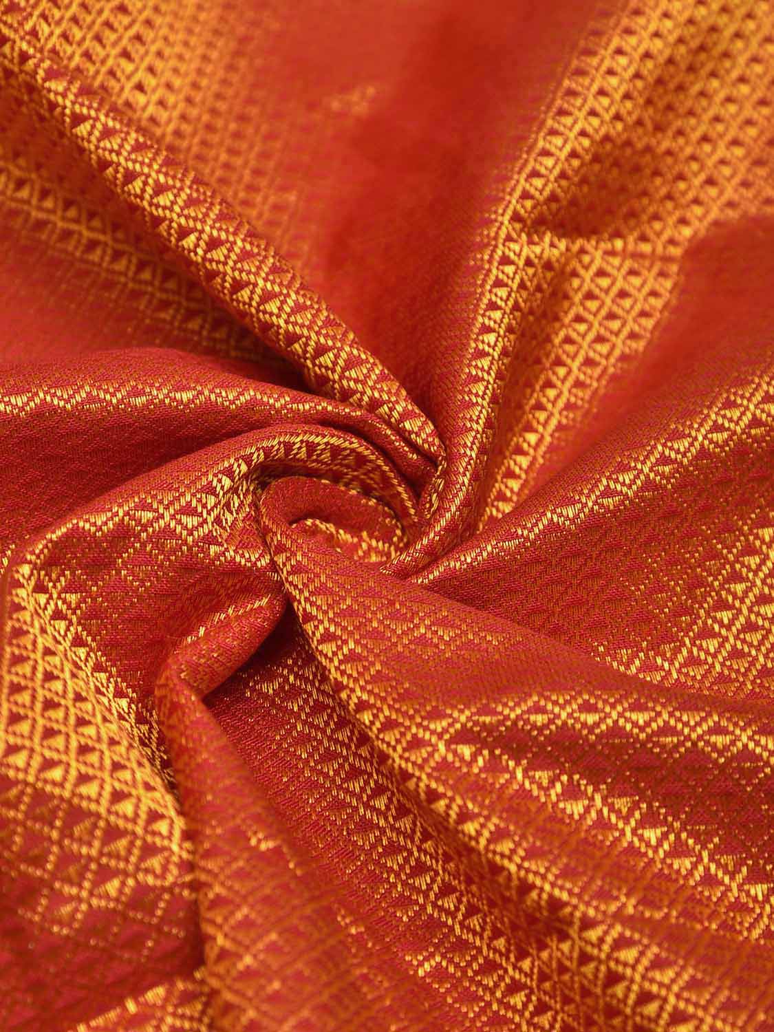 Orange and Red Jacquard Viscose Blouse with Contrast Border Design Length 1mt Width 31 Inches. Beautiful Pattern Blouse Fabric and Easy to Match to Any Suitable Saree. We Advise Gentle Handwash for Fabric Care.