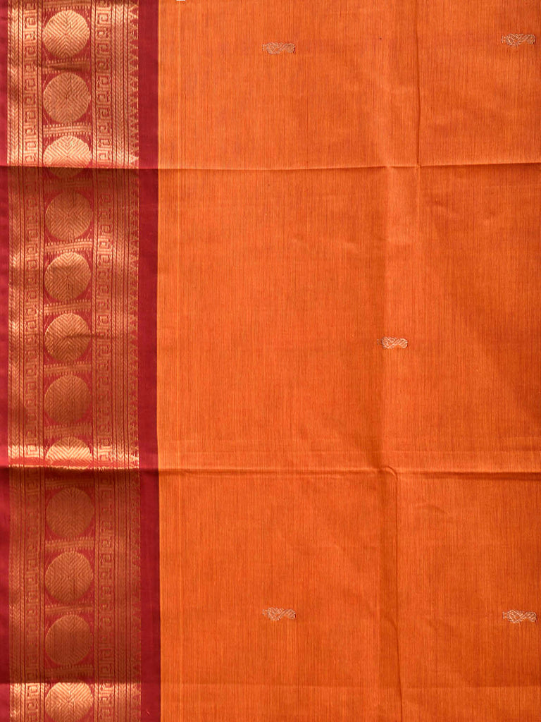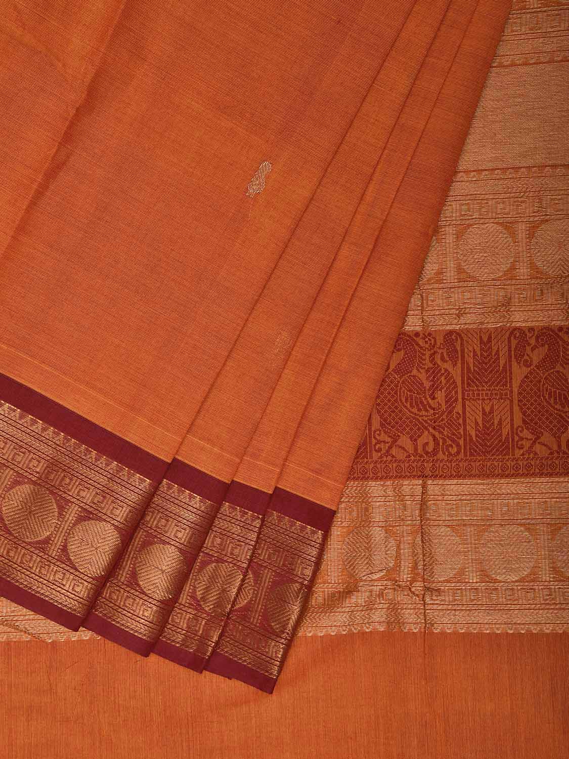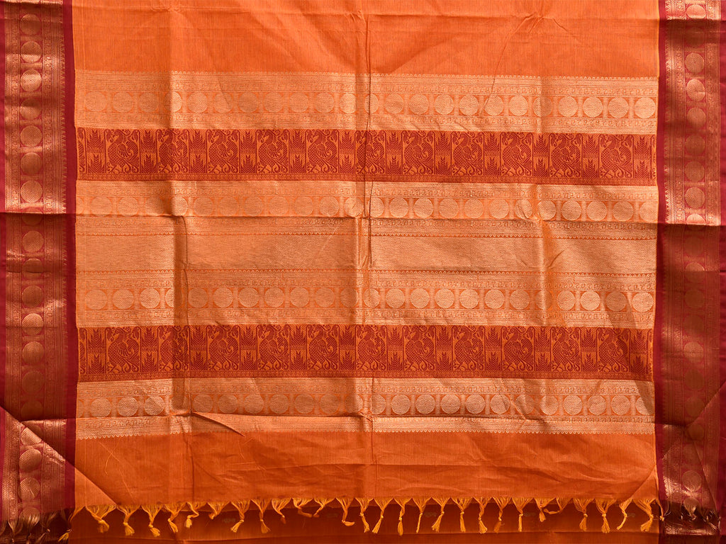 Orange and Red Kanchipuram Cotton Saree with Pallu and Border Design k0972