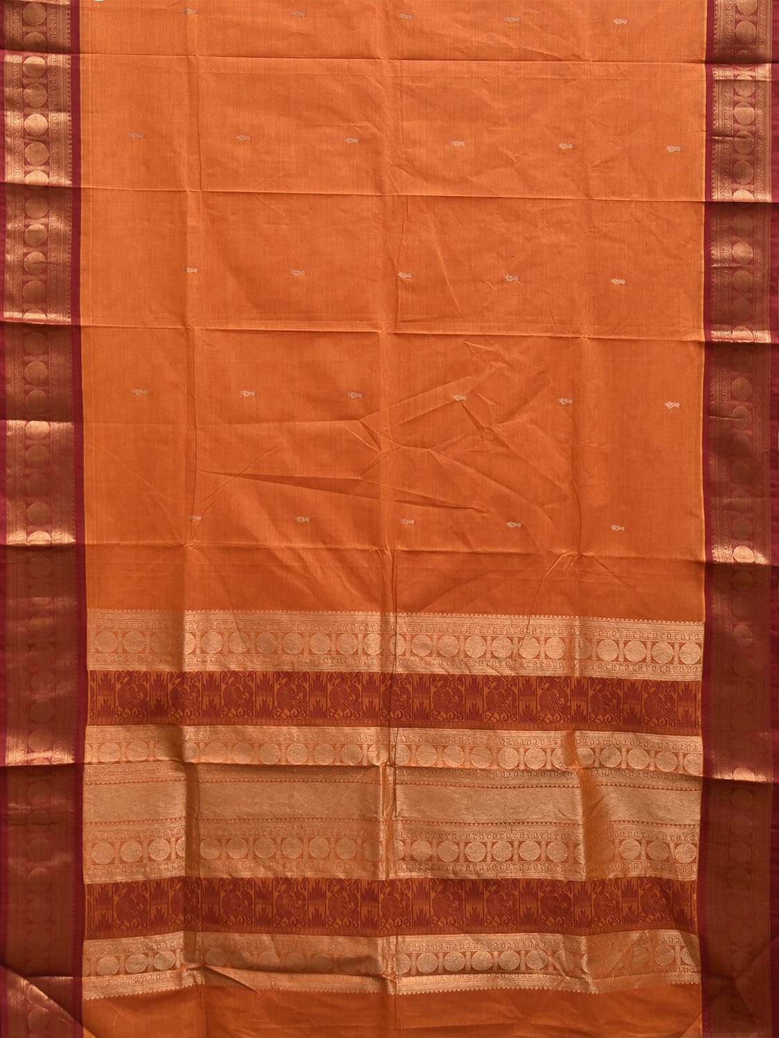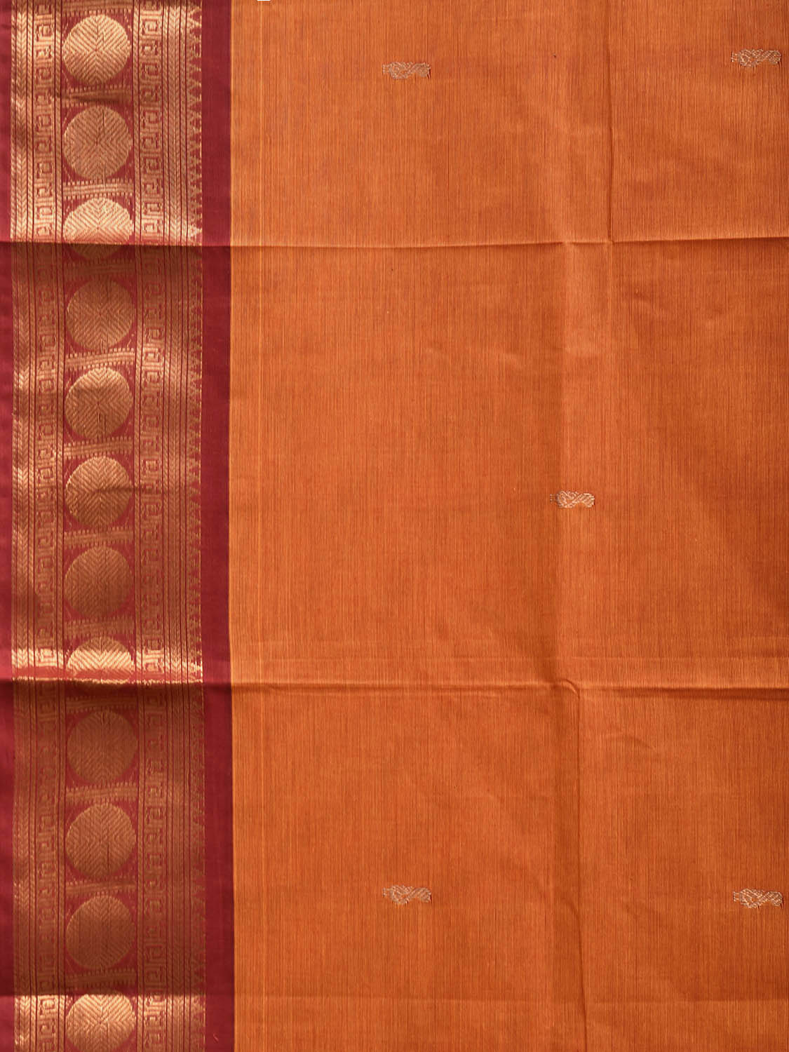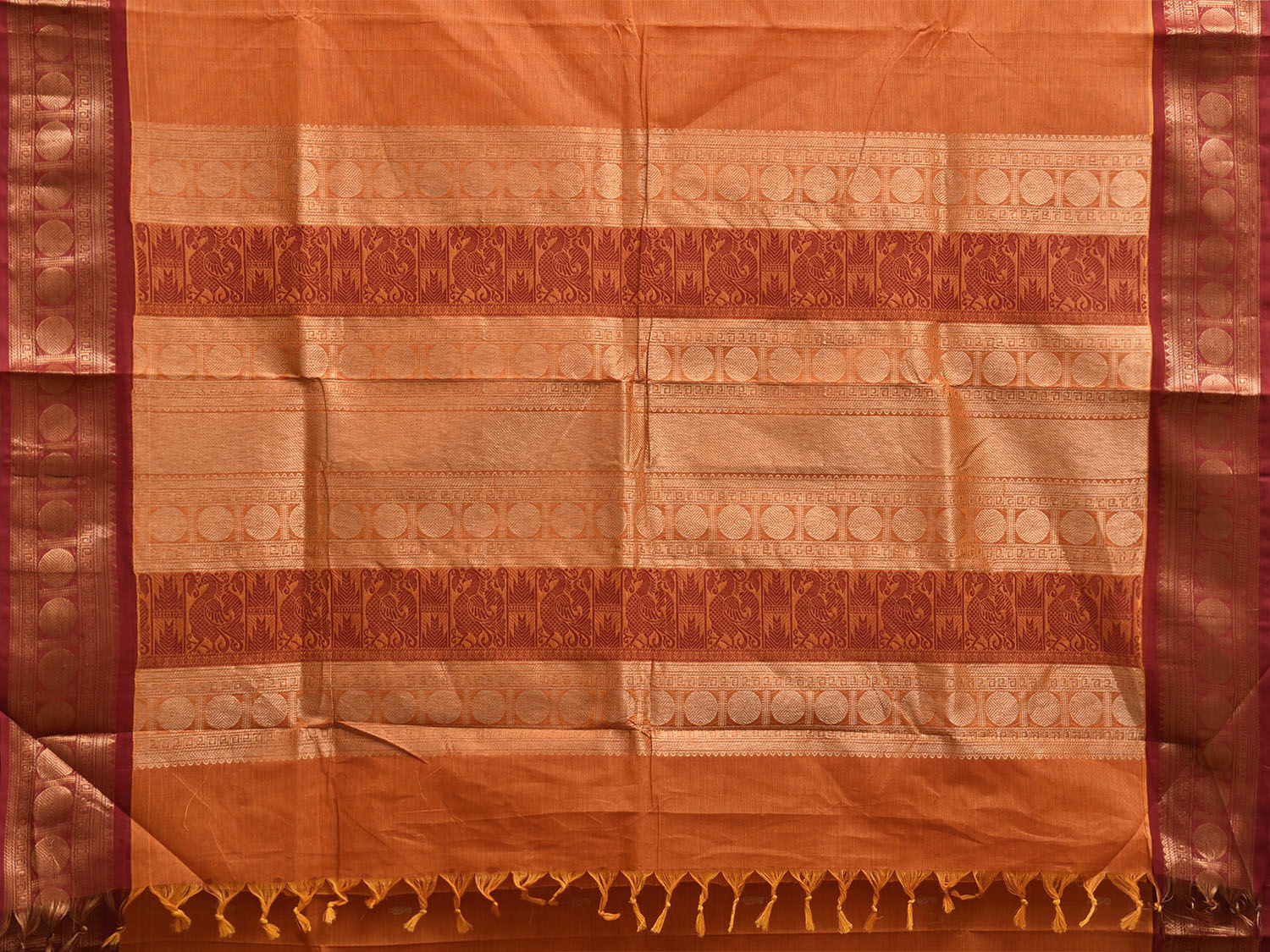 Orange and Red Kanchipuram Cotton Saree with Pallu and Border Design k0972