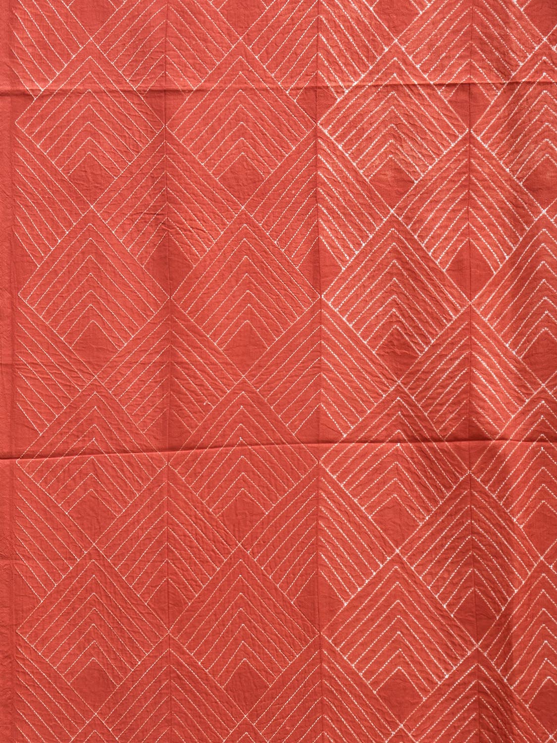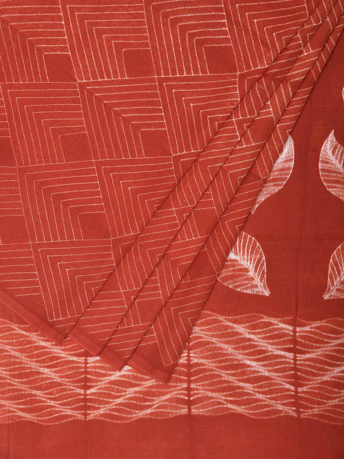 Orange Shibori Sico Saree with Grill and Leaves Pallu Design. Shibori is Japanese a Technique of tie and dye, and resist some parts by clamping or stitching the fabric. The result produced are unique geometric patterns & any other eloborate design. For fabric care we advise gentle handwash separately.